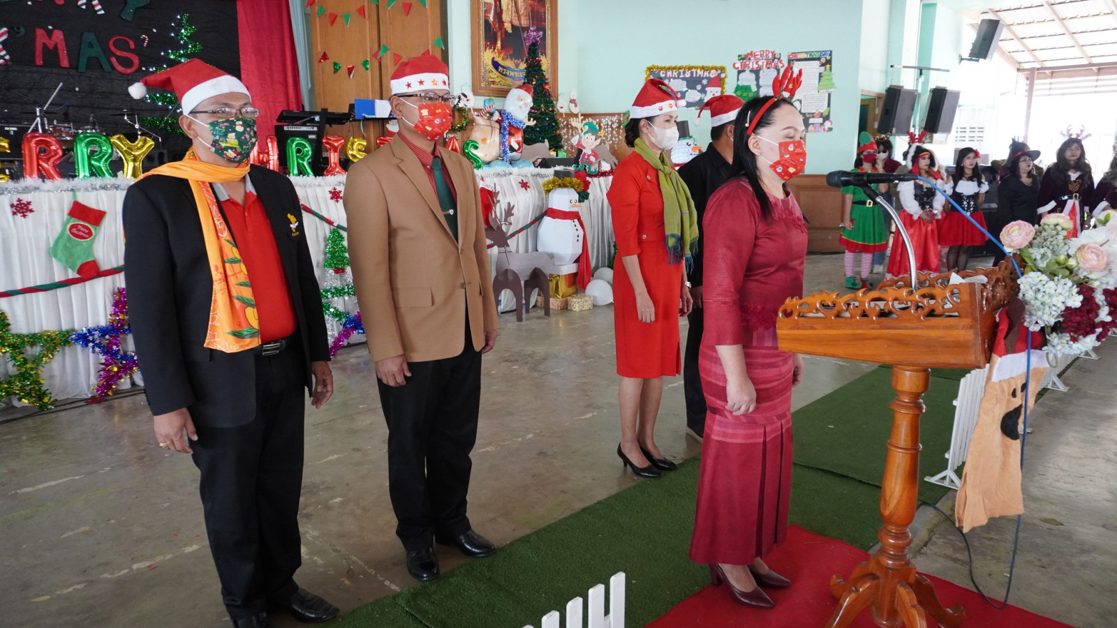 นางวิไลลักษ์ ศรีทากุล ผู้อำนวยการโรงเรียนขุนหาญวิทยาสรรค์ ได้เป็นประธานพิธีเปิดกิจกรรมวันคริสต์มาส ประจำปี 2565 ณ หอประชุมกันเกรา