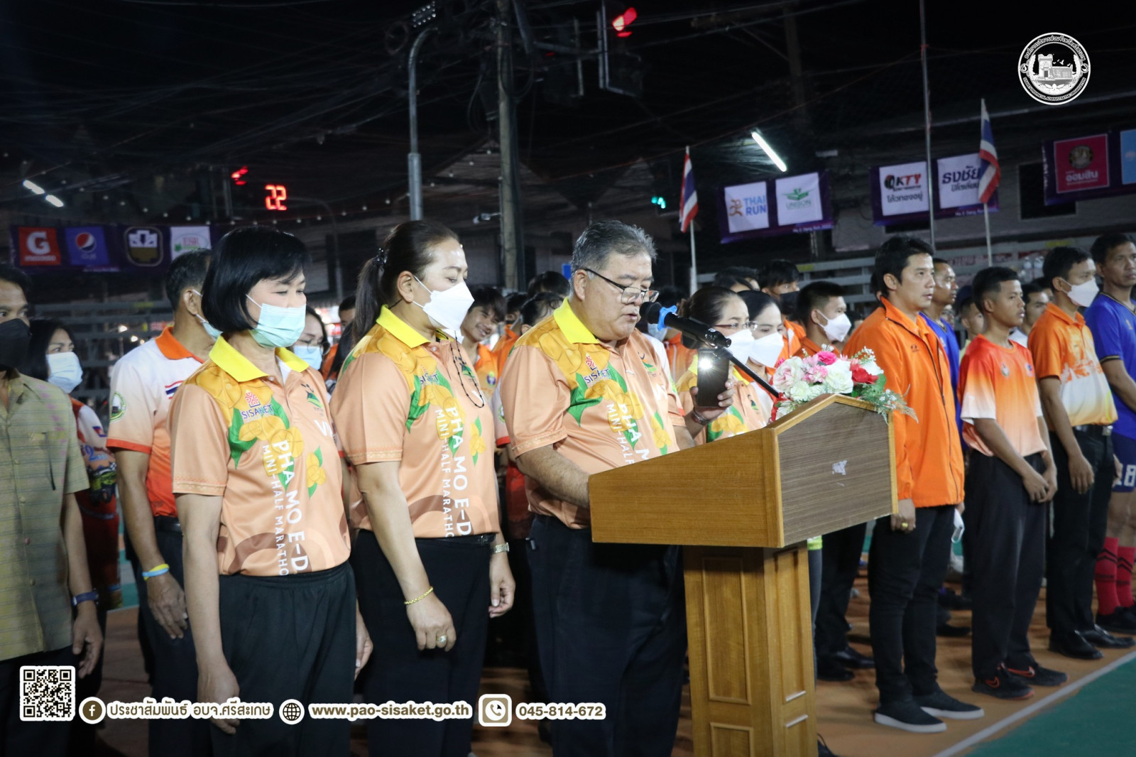 โดย นายมานะพันธ์ อังคสกุลเกียรติ รองนายกองค์การบริหารส่วนจังหวัดศรีสะเกษ นายอภิศักดิ์ แซ่จึง รองนายกองค์การบริหารส่วนจังหวัดศรีสะเกษ นายไกรศักดิ์ วรทัต ปลัดองค์การบริหารส่วนจังหวัดศรีสะเกษ นางสาวรภัทภร สายเย็น รองปลัดองค์การบริหารส่วนจังหวัด พร้อมด้วย หัวหน้าส่วนราชการ ข้าราชการ เจ้าหน้าที่ คณะกรรมการดำเนินงาน นักกีฬา และผู้ชมกีฬา เข้าร่วมงาน