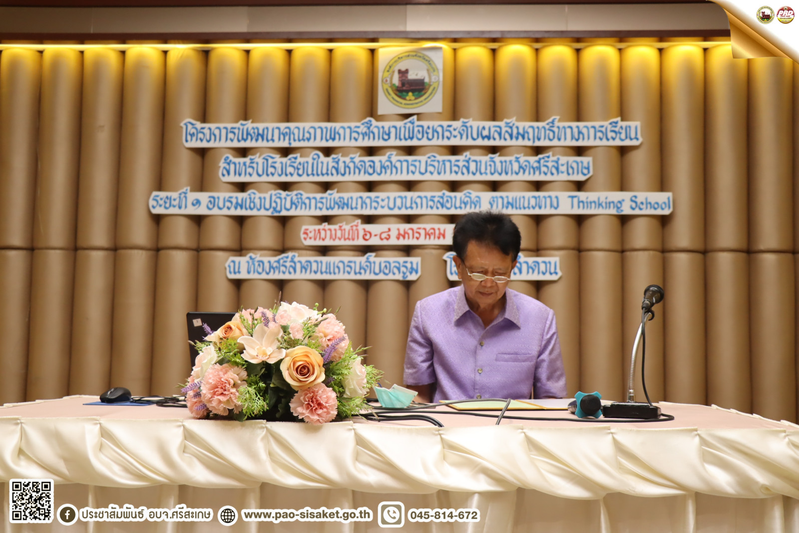 อบจ.ศรีสะเกษ เปิดโครงการพัฒนาคุณภาพกาศึกษาเพื่อยกระดับผลสัมฤทธิ์ทางการศึกษาสำหรับโรงเรียนในสังกัดองค์การบริหารส่วนจังหวัดศรีสะเกษ ระยะที่ ๑ อบรมเชิงปฏิบัติการพัฒนากระบวนการสอนคิด ตามแนวทาง Thinking School