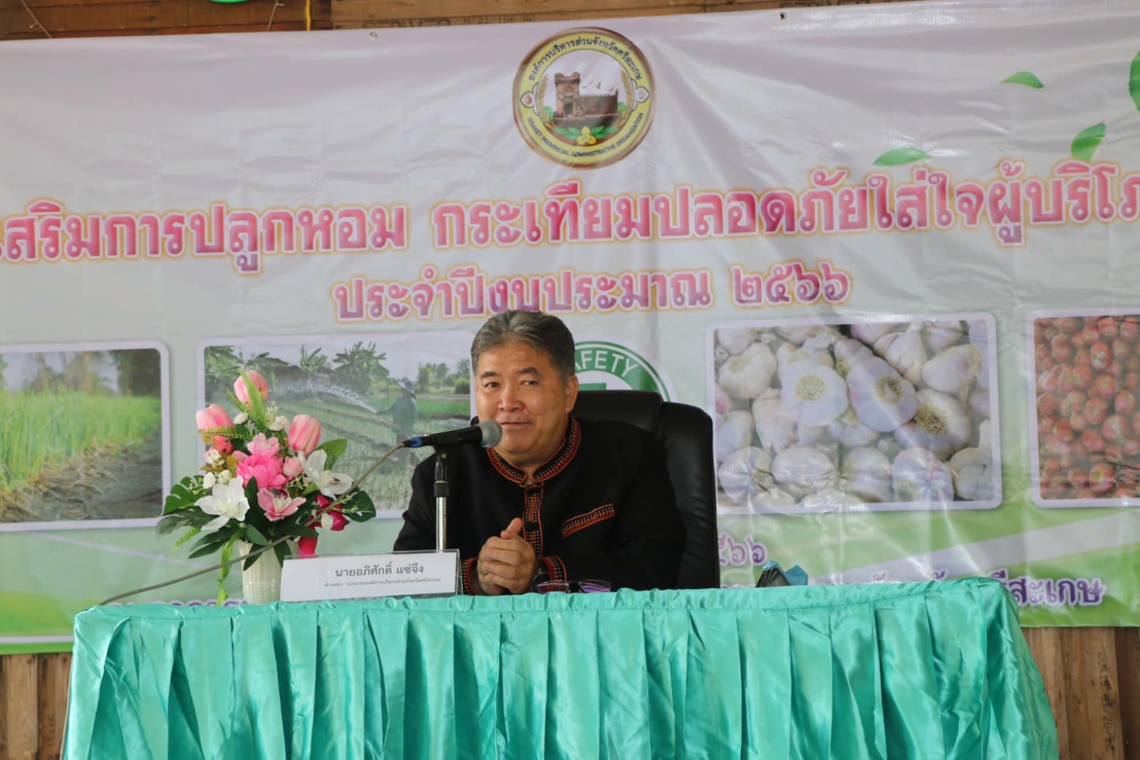 อบจ.ศรีสะเกษ จัดโครงการอบรมส่งเสริมการปลูกหอมกระเทียมปลอดภัยใส่ใจผู้บริโภค จังหวัดศรีสะเกษ ประจำปีงบประมาณ ๒๕๖๖