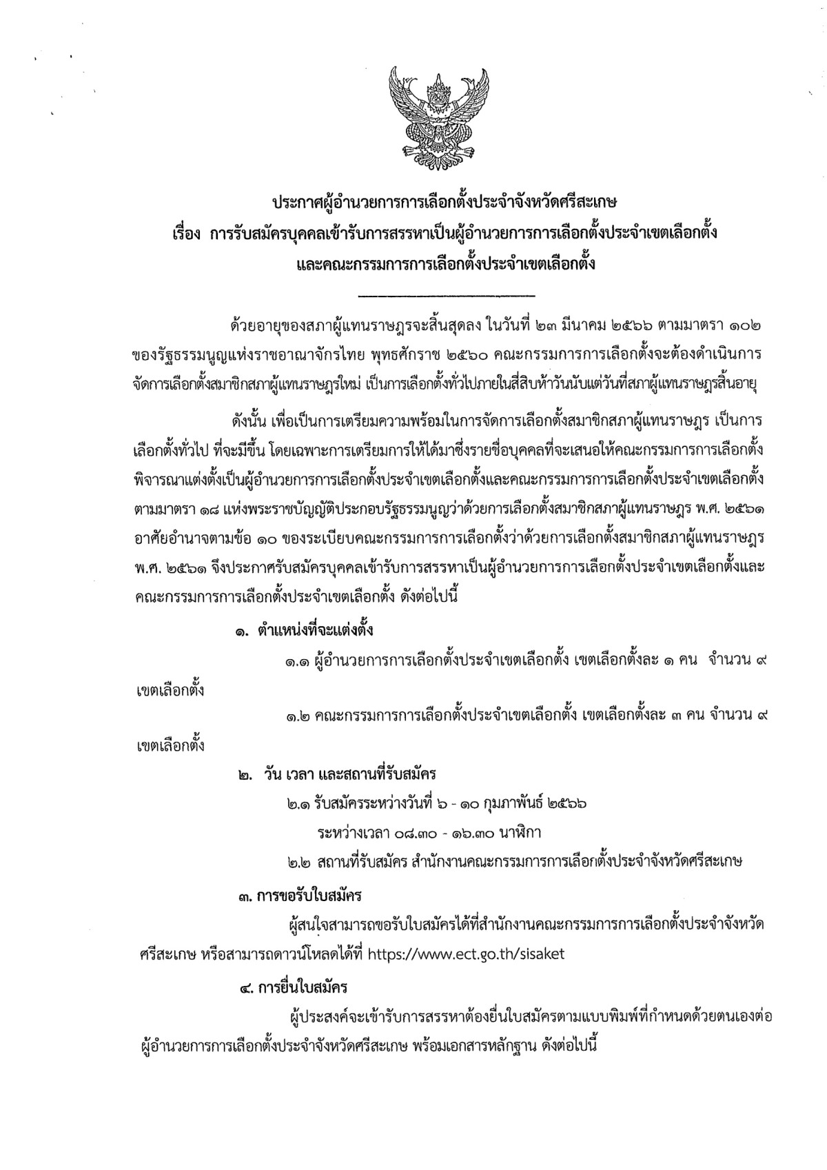 ประกาศรับสมัครบุคคลเข้ารับการสรรหาเป็นผู้อำนวยการการเลือกตั้งประจำเขตเลือกตั้งและคณะกรรมการการเลือกตั้งประจำเขตเลือกตั้ง