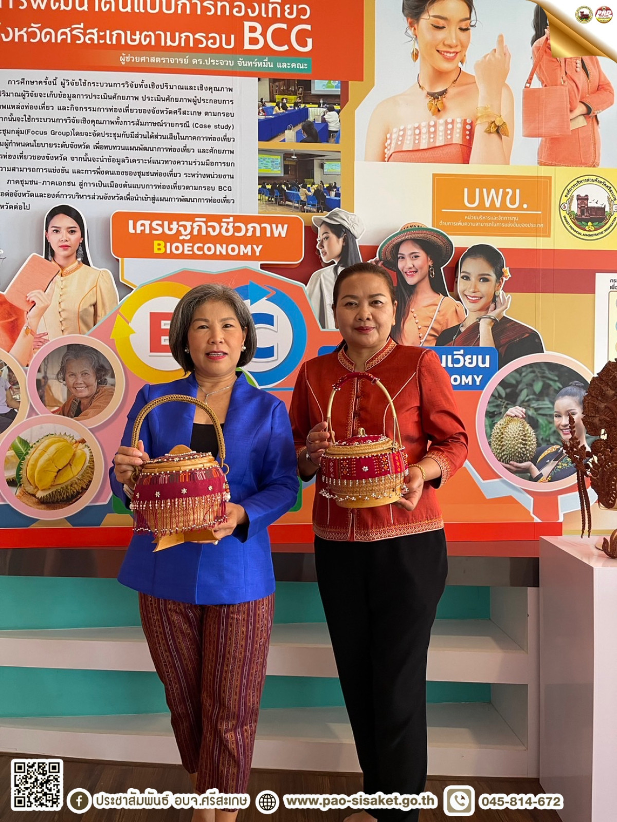 อบจ.ศรีสะเกษ ร่วมลงนามบันทึกความร่วมมือด้านการวิจัยและการดำเนินโครงการ เพื่อยกระดับการพัฒนาการท่องเที่ยวชุมชนตามกรอบ BCG และการพัฒนาผลิตภัณณ์การท่องเที่ยว จากผลและเปลือกทุเรียนภูเขาไฟศรีสะเกษ และร่วมเสวนาในหัวข้อ "การท่องเที่ยวชุมชน และผลิตภัณฑ์ BCG จังหวัดศรีสะเกษ"