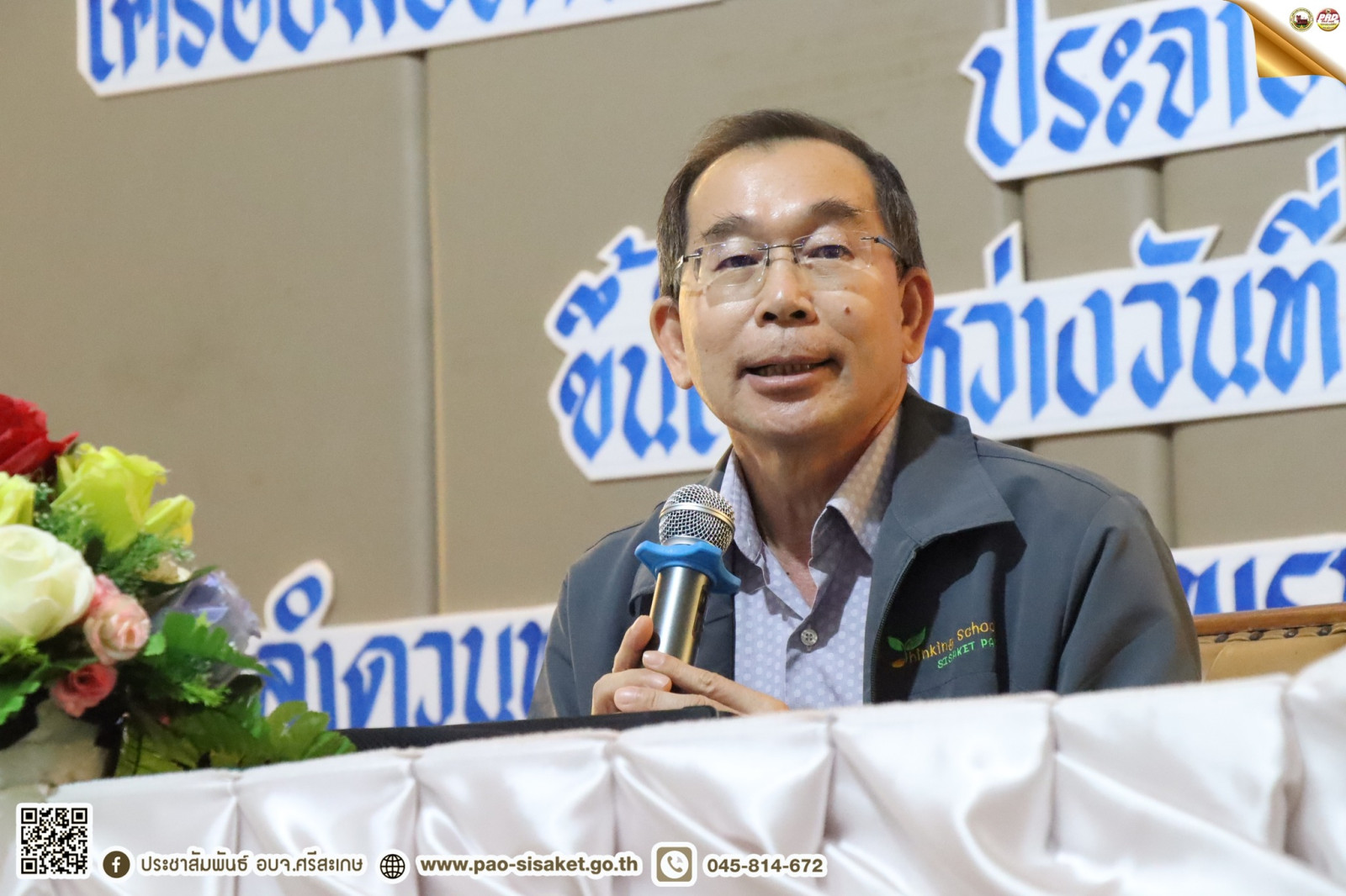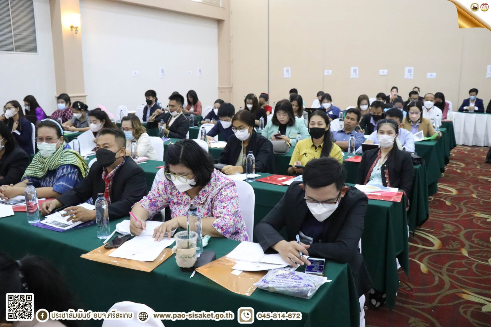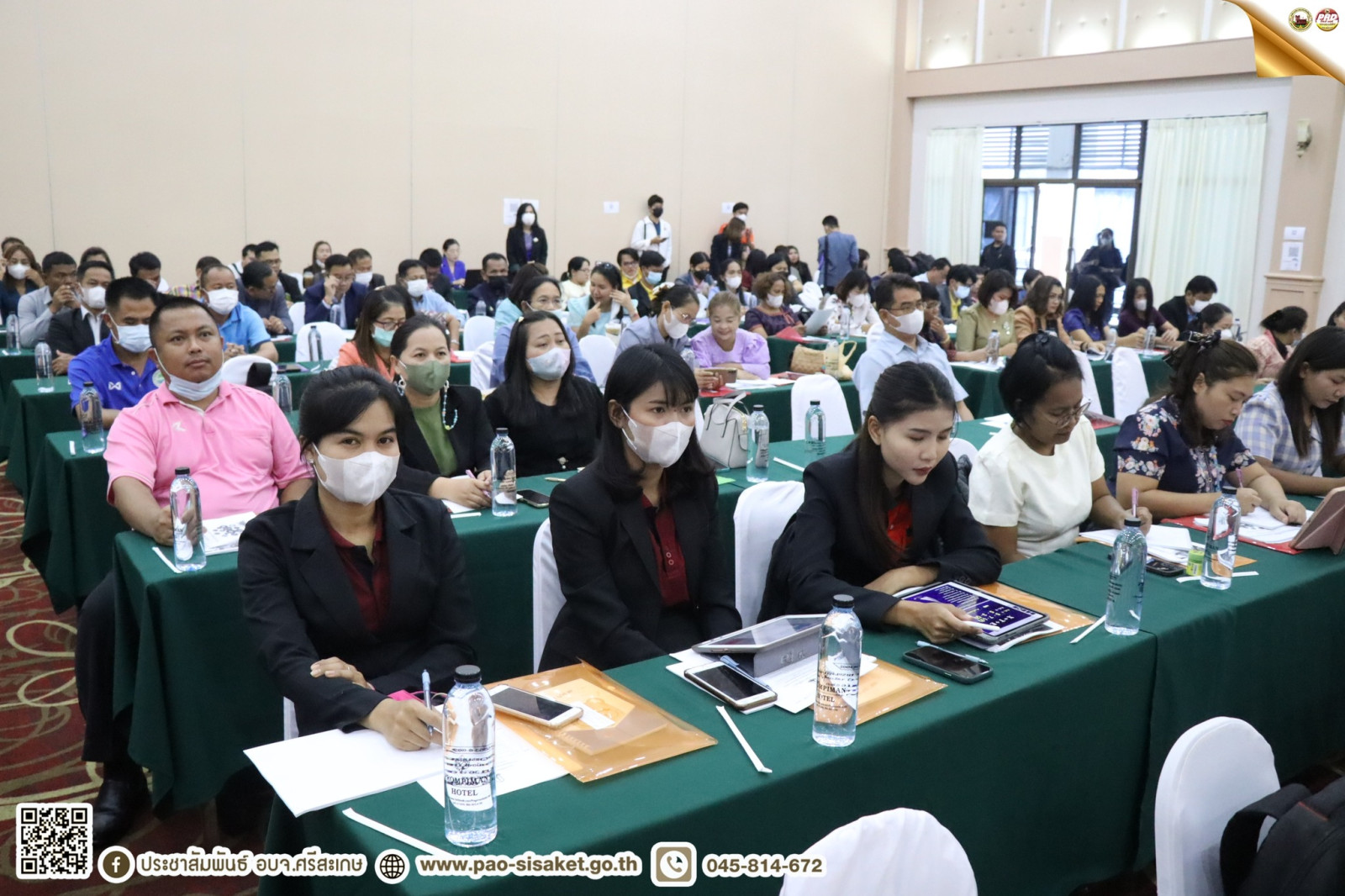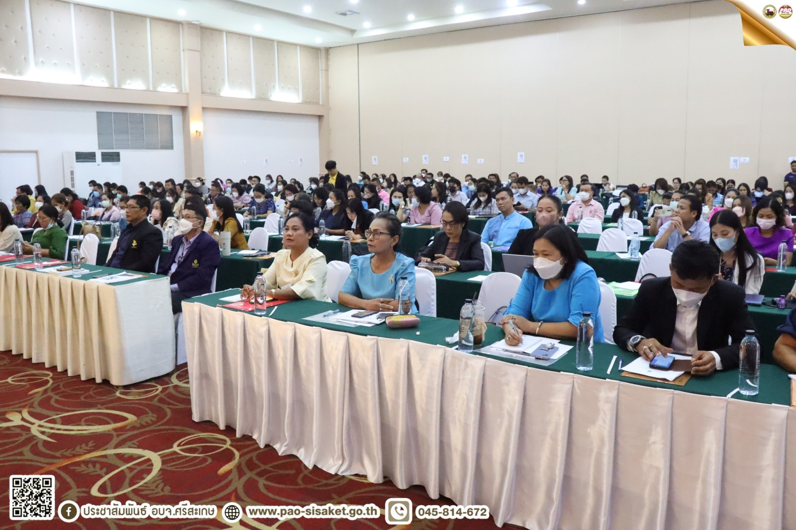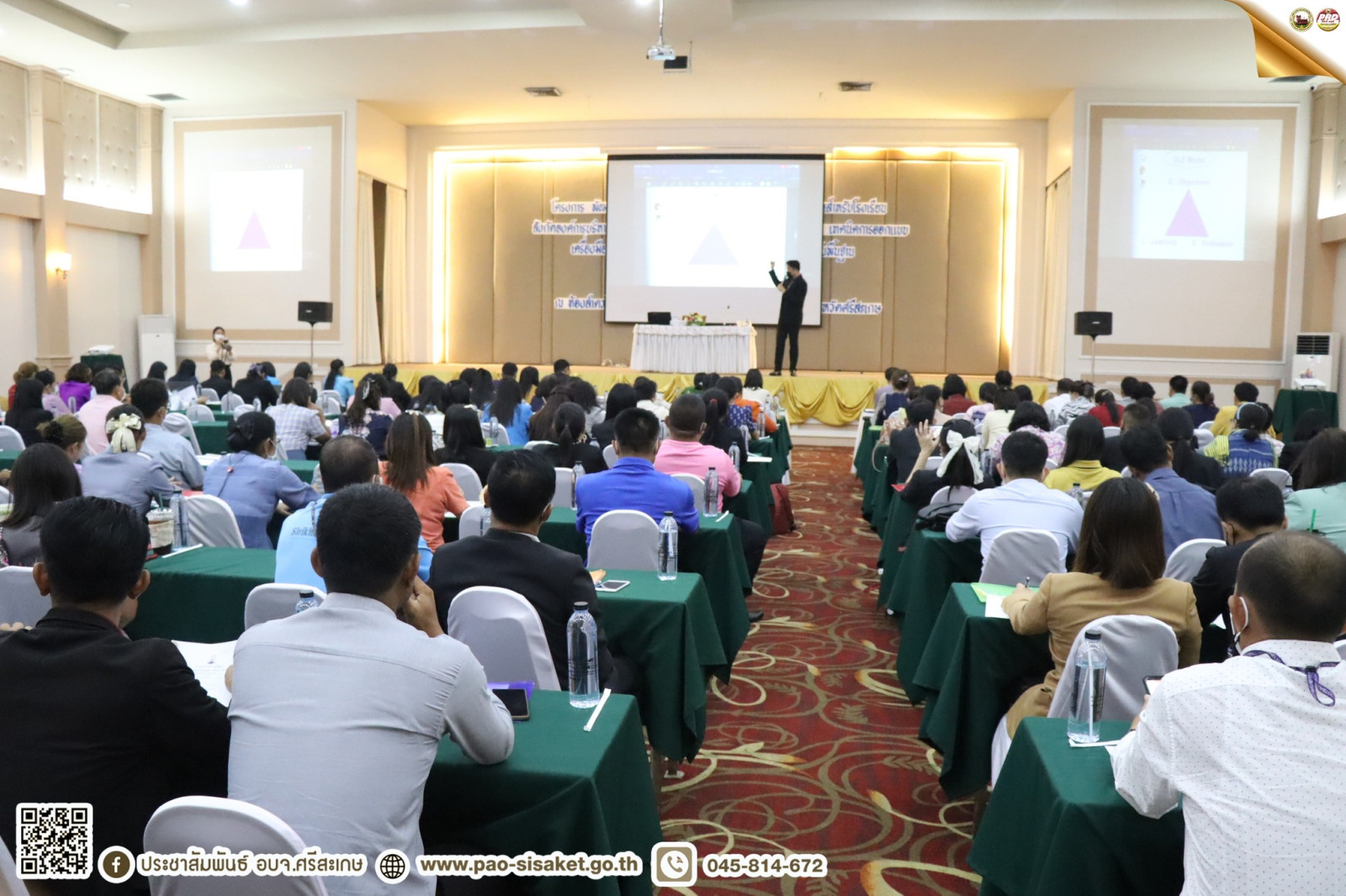 เมื่อวันที่ ๑๙ พฤษภาคม ๒๕๖๖ เวลา ๑๐.๐๐ น. ณ ห้องลำดวนทอง โรงแมพรหมพิมาน อำเภอเมือง จังหวัดศรีสะเกษ #นายวิชิต_ไตรสรณกุล นายกองค์การบริหารส่วนจังหวัดศรีสะเกษ มอบหมายให้ นายไกรศักดิ์ วรทัต ปลัดองค์การบริหารส่วนจังหวัดศรีสะเกษ เป็นประธานในพิธีเปิดการอบรมเชิงปฏิบัติการเทคนิคการออกแบบเครื่องมือวัดผลและประเมินผลตามหลักสูตรแกนกลางการศึกษาขั้นพื้นฐาน ประจำปีงบประมาณ พ.ศ. ๒๕๖๖ โดยมีนางสาวอินทุ์อร บุญเนตร ผู้อำนวยการกองการศึกษา ศาสนาและวัฒนธรรม องค์การบริหารส่วนจังหวัดศรีสะเกษ พร้อมด้วย ผู้บริหารสถานศึกษา ข้าราชการ บุคลากรทางการศึกษาโรงเรียนสังกัดองค์การบริหารส่วนจังหวัดศรีสะเกษ และคณะวิทยากร เข้าร่วมพิธีเปิดในครั้งนี้