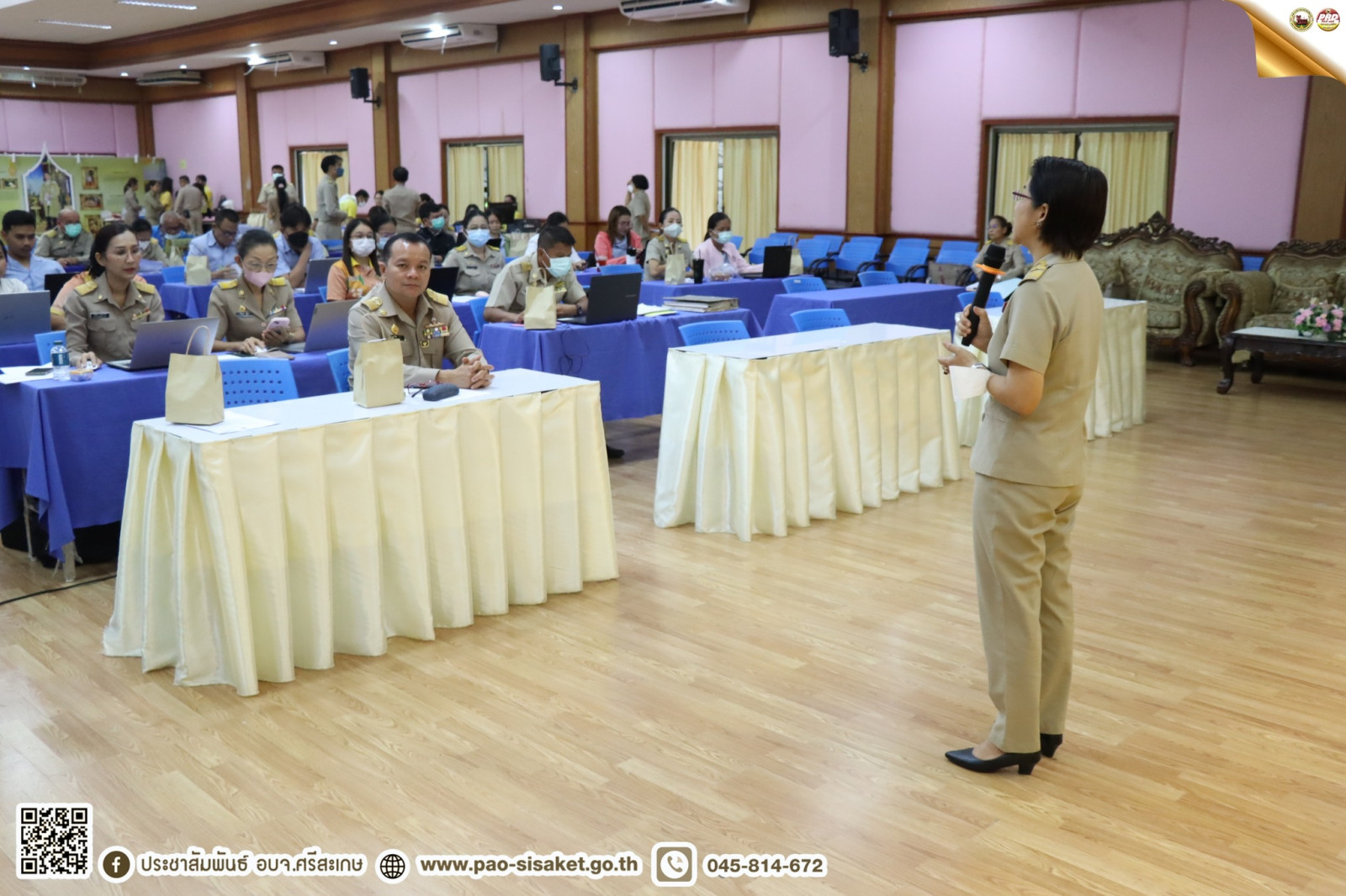 เมื่อวันที่ ๒๙ พฤษภาคม ๒๕๖๖ เวลา ๐๙.๓๐ น. ณ ห้องประชุมศูนย์ OTOP องค์การบริหารส่วนจังหวัดศรีสะเกษ นายวิชิต ไตรสรณกุล นายกองค์การบริหารส่วนจังหวัดศรีสะเกษ มอบหมายให้ นางสาวรภัทภร สายเย็น รองปลัดองค์การบริหารส่วนจังหวัดศรีสะเกษ เป็นประธานเปิดการอบรมซักซ้อมความเข้าใจหลักเกณฑ์การคำนวณค่าเสื่อมราคาทรัพย์สินถาวรสำนักงานปลัดกระทรวง โดยมีข้าราชการ ผู้อำนวยการ รพ.สต. บุคลากร เจ้าหน้าที่ รพ.สต.สังกัดองค์การบริหารส่วนจังหวัดศรีสะเกษ และคณะวิทยากรจากสำนักคลังองค์การบริหารส่วนจังหวัดศรีสะเกษ ร่วมพิธีเปิดในครั้งนี้