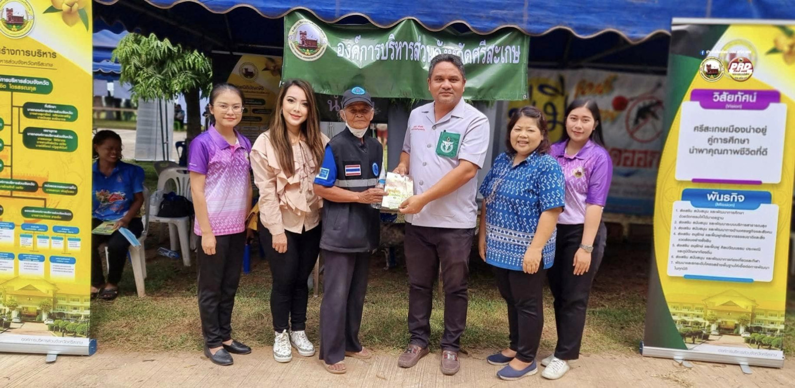 โดยองค์การบริหารส่วนจังหวัดศรีสะเกษ ได้รับฟังปัญหาความเดือดร้อนและความต้องการของประชาชนในพื้นที่ เพื่อบำบัดทุกข์ บำรุงสุข สร้างรอยยิ้มให้กับประชาชน โดยได้บูรณาการส่วนราชการและหน่วยงานภาครัฐ ระดับจังหวัด นำงานบริการหรือกิจกรรม ประชาสัมพันธ์การขุดเจาะน้ำบาดาล แจกพันธ์ไม้ ต้นยางนา ต้นขนุน ขนมและน้ำดื่ม ไปบริการด้วย