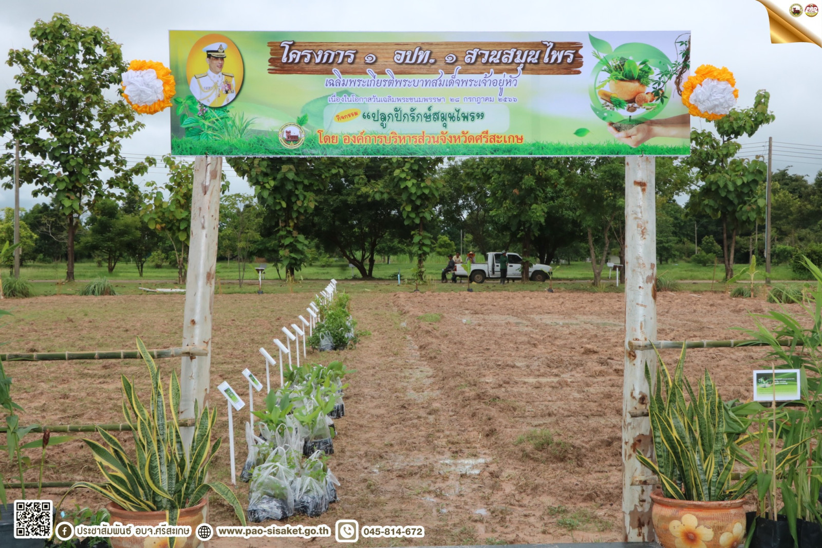 ทั้งนี้เพื่อพัฒนาต่อยอดศูนย์ส่งเสริมการเรียนรู้ศาสตร์ พระราชา จังหวัดศรีสะเกษ ให้เป็นแหล่งเรียนรู้ตามศาสตร์พระราชา ด้านเทคโนโลยีนวัตกรรมการเกษตร สมุน ไพร และเกษตรทฤษฎีใหม่ รวมถึงการน้อมนำหลักปรัชญาของเศรษฐกิจพอเพียงปรับใช้ในองค์กร และเพื่อจัดกิจกรรมเฉลิมพระเกียรติ พระบาทสมเด็จพระเจ้าอยู่หัว เนื่องในโอกาสวันเฉลิมพระชนมพรรษา 28 กรกฎาคม ภายใต้กิจกรรม 1 อปท. 1 สวนสมุนไพร "ปลูกปักรักษ์สมุนไพร"