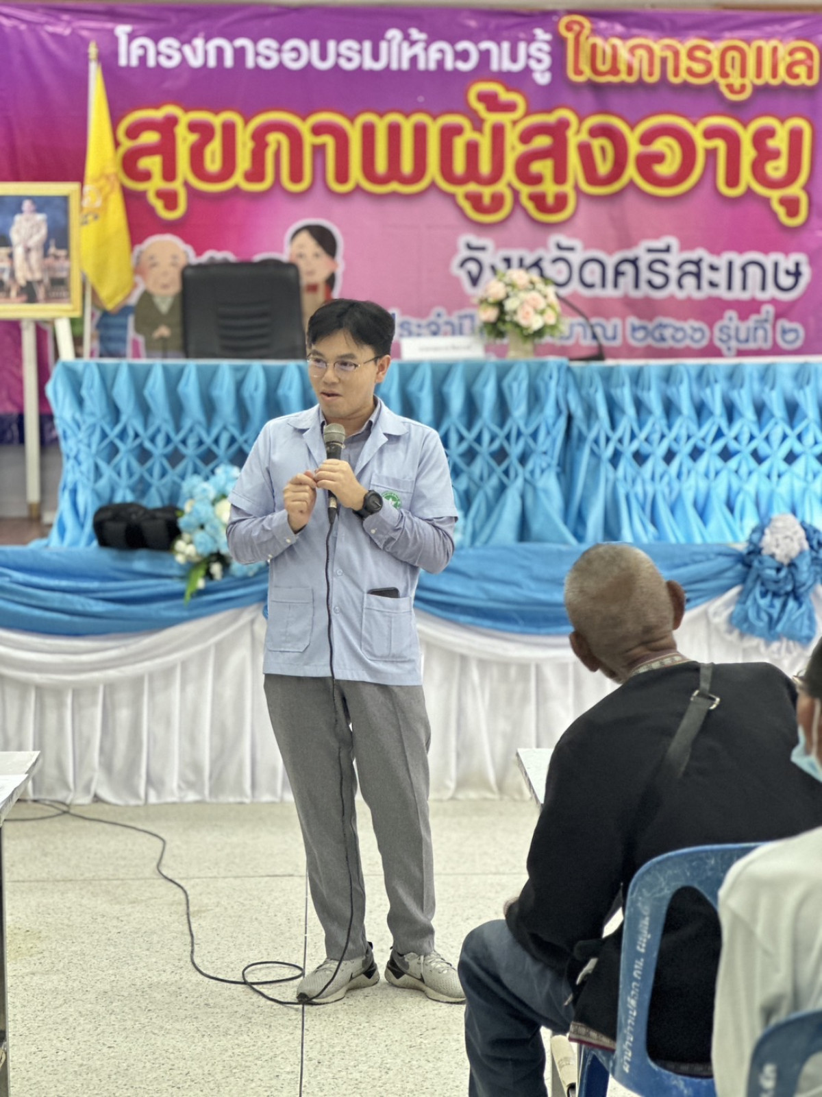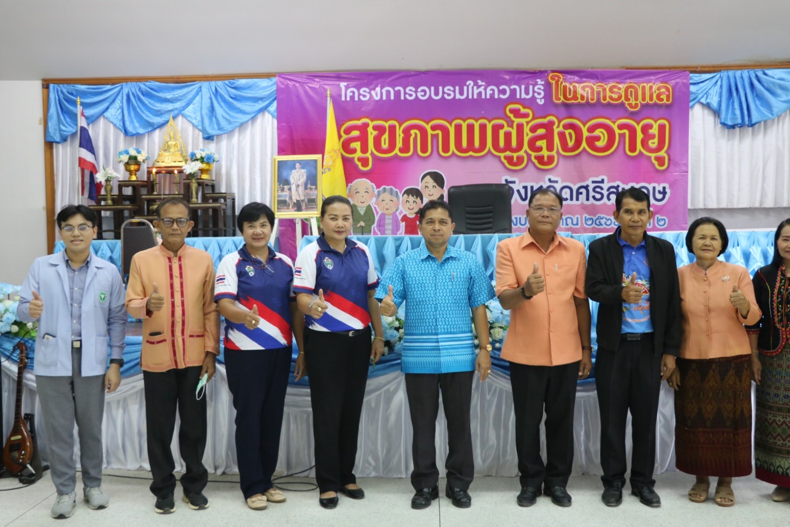 นายวิชิต ไตรสรณกุล นายกองค์การบริการส่วนจังหวัดศรีสะเกษ มอบหมายให้ นายชาญวิโรจน์ ขันทอง ส. อบจ อำเภอเมืองจันทร์ พร้อมด้วย นางสาวทัศนันท์ สุโพณะ หัวหน้าสำนักปลัดองค์การบริหารส่วนจังหวัด หัวหน้าส่วนราชการ ข้าราชการ เจ้าหน้าที่ที่เกี่ยวข้อง ร่วมพิธีเปิด โครงการอบรมให้ความรู้ในการดูแลสุขภาพผู้สูงอายุจังหวัดศรีสะเกษประจำปีงบประมาณ 2566 รุ่นที่ 2 ทั้งนี้เพื่อให้ผู้สูงอายุมีความรู้ความเข้าใจ ปรับเปลี่ยน พฤติกรรมในการดูแลสุขภาพอนามัยของตนเอง ทั้งด้านโภชนาการ การฟื้นฟูสมรรถภาพร่างกายและจิตใจ เสริมสร้างสุขภาพทางด้านจิตใจของผู้สูงอายุให้มีความเข้มแข็ง มองเห็น คุณค่าของตนเอง สนับสนุนให้ผู้สูงอายุได้มีกิจกรรมร่วมกัน เป็นการสร้างสัมพันธภาพที่ดีแลกเปลี่ยนเรียนรู้ซึ่งกันและกัน วันพฤหัสบดี ที่ 18 สิงหาคม 2566