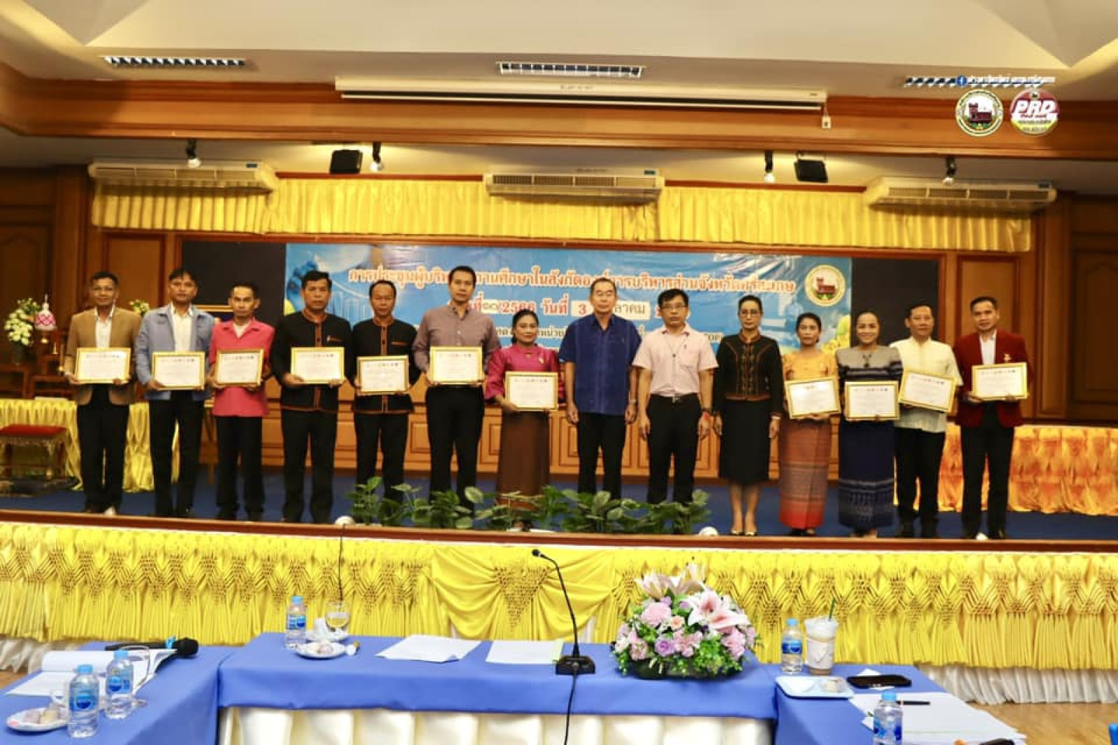 ทั้งนี้ ก่อนการประชุม นายมานะพันธ์ อังคสกุลเกียรติ รองนายกองค์การบริหารส่วนจังหวัดศรีสะเกษ ได้ให้เกียรติมอบโล่รางวัลการประมวลผล โรงเรียน/ ชุมชนต้นแบบ โครงการโรงเรียนหมู่บ้านศีล ๕ ตามรอยพ่ออย่างพอเพียง ระดับเขตพื้นที่การศึกษา ปีการศึกษา ๒๕๖๖ ดังนี้