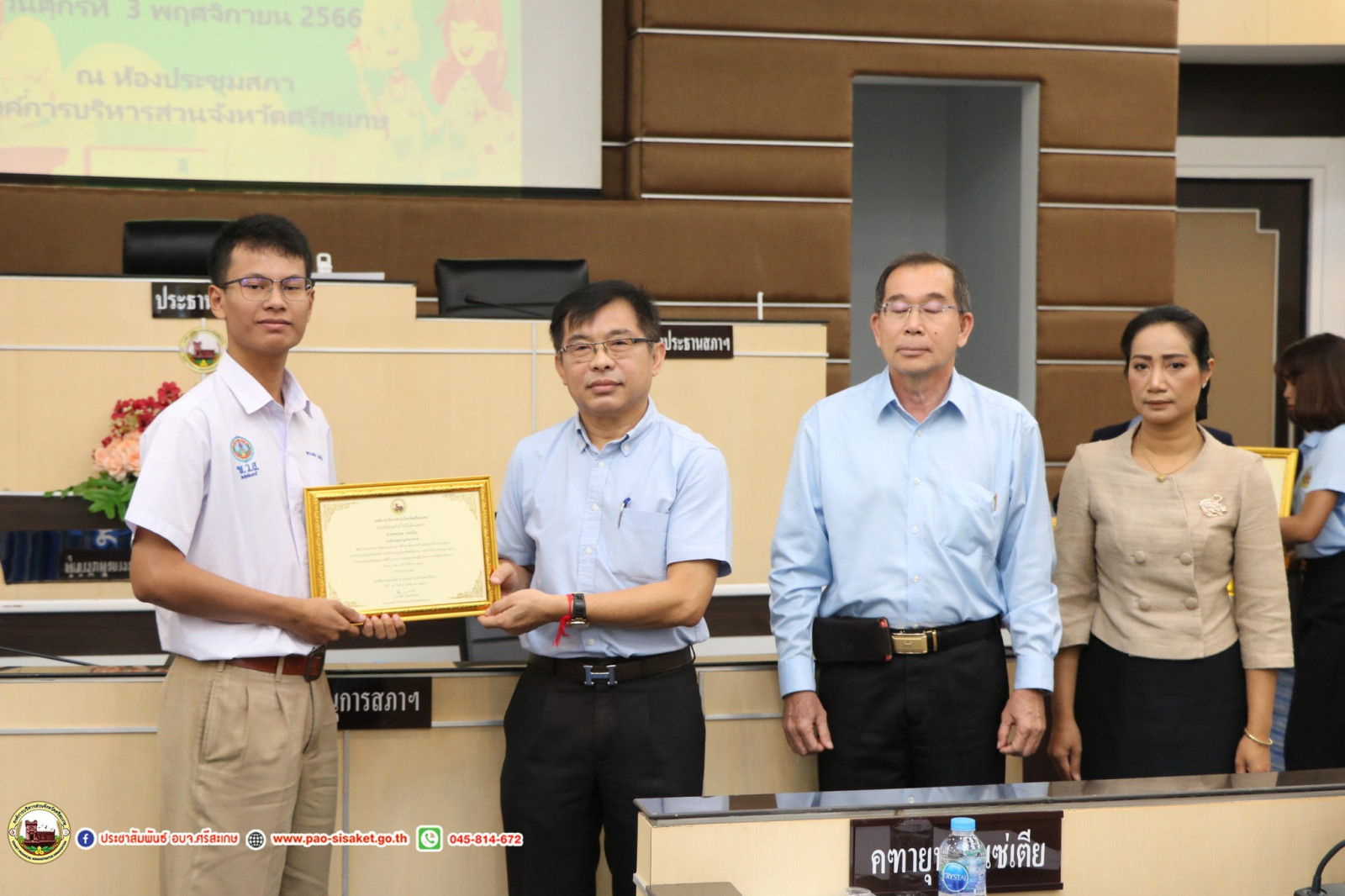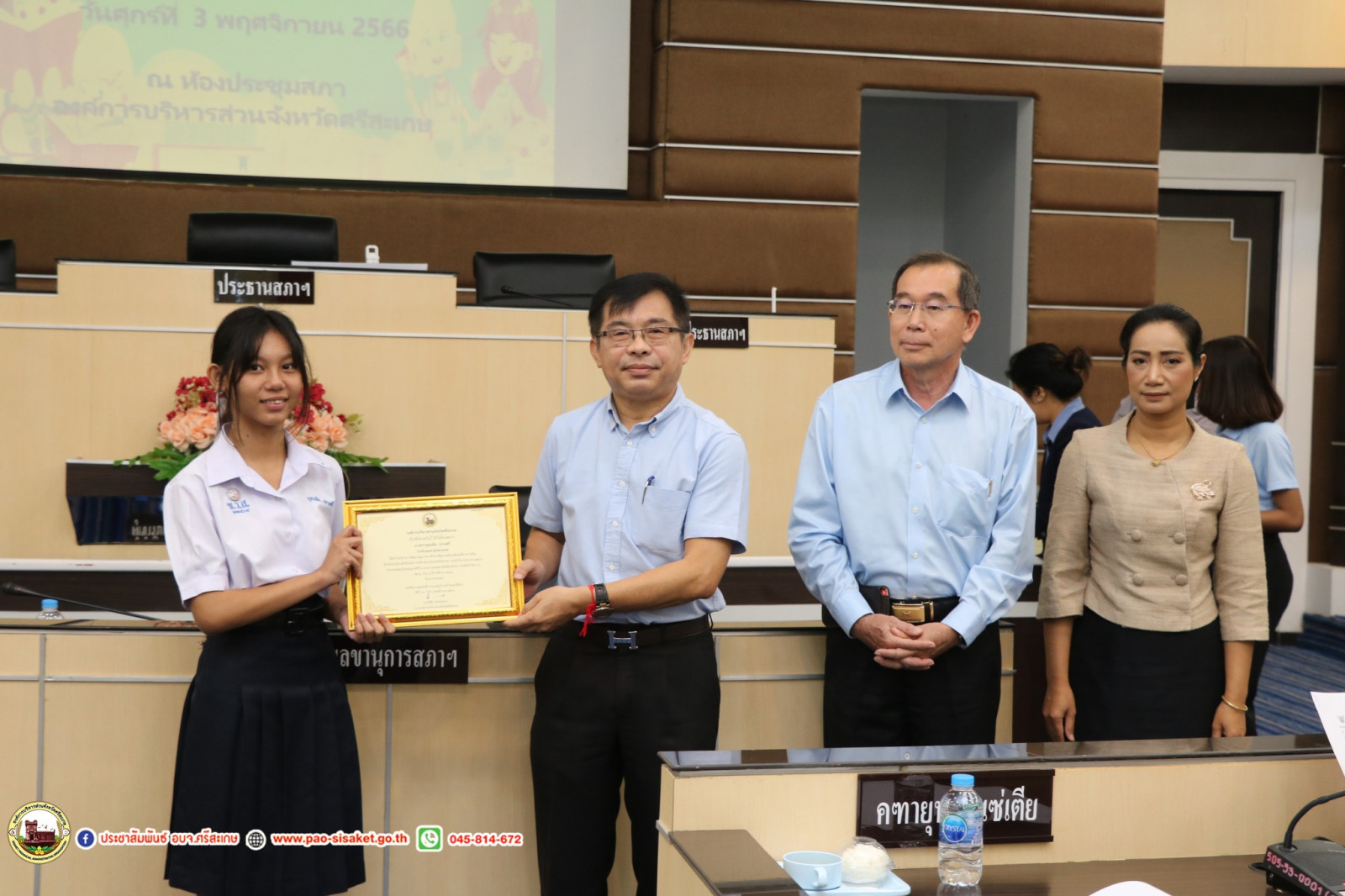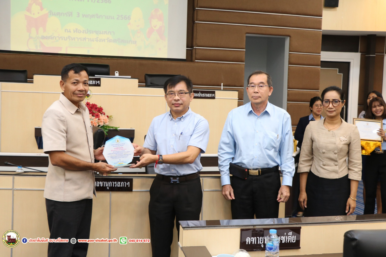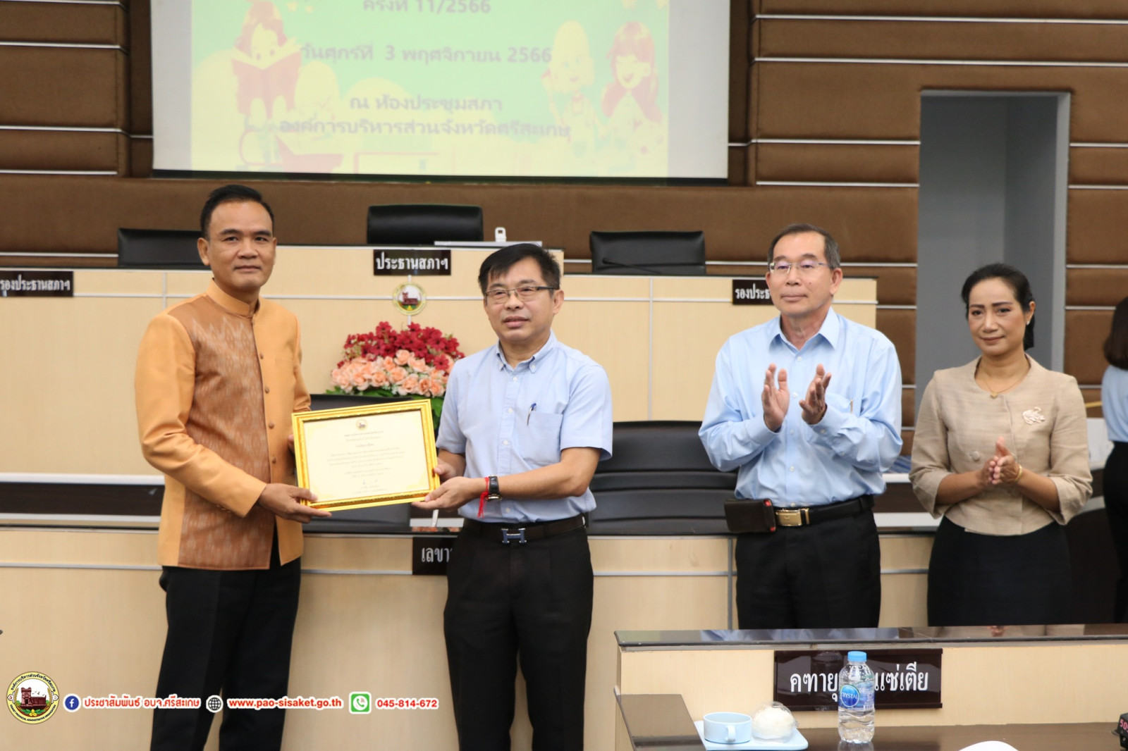 วันที่ 3 พฤศจิกายน พ.ศ. 2566 เวลา 09.30 น. ณ ณ ห้องประชุมสภาองค์การบริหารส่วนจังหวัดศรีสะเกษ องค์การบริหารส่วนจังหวัดศรีสะเกษ #นายวิชิต_ไตรสรณกุล นายกองค์การบริหารส่วนจังหวัดศรีสะเกษ มอบหมายให้ นายมานะพันธ์ อังสกุลเกียรติ รองนายกองค์การบริหารส่วนจังหวัดศรีสะเกษ เป็นประธานการประชุมผู้บริหารสถานศึกษา สังกัดองค์การบริหารส่วนจังหวัดศรีสะเกษ ครั้งที่ 11/2566 โดยมีนายไกรศักดิ์ วรทัต ปลัดองค์การบริหารส่วนจังหวัดศรีสะเกษ หัวหน้าส่วนราชการ ข้าราชการ ผู้บริหารสถานศึกษาสังกัดองค์การบริหารส่วนจังหวัดศรีสะเกษ เข้าร่วมการประชุมโดยพร้อมพรียง
