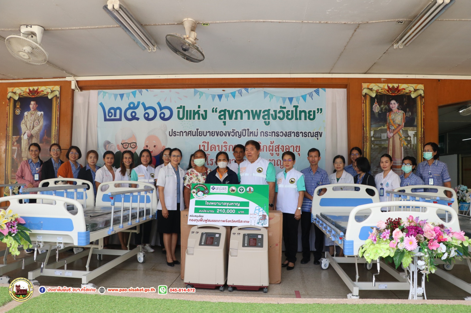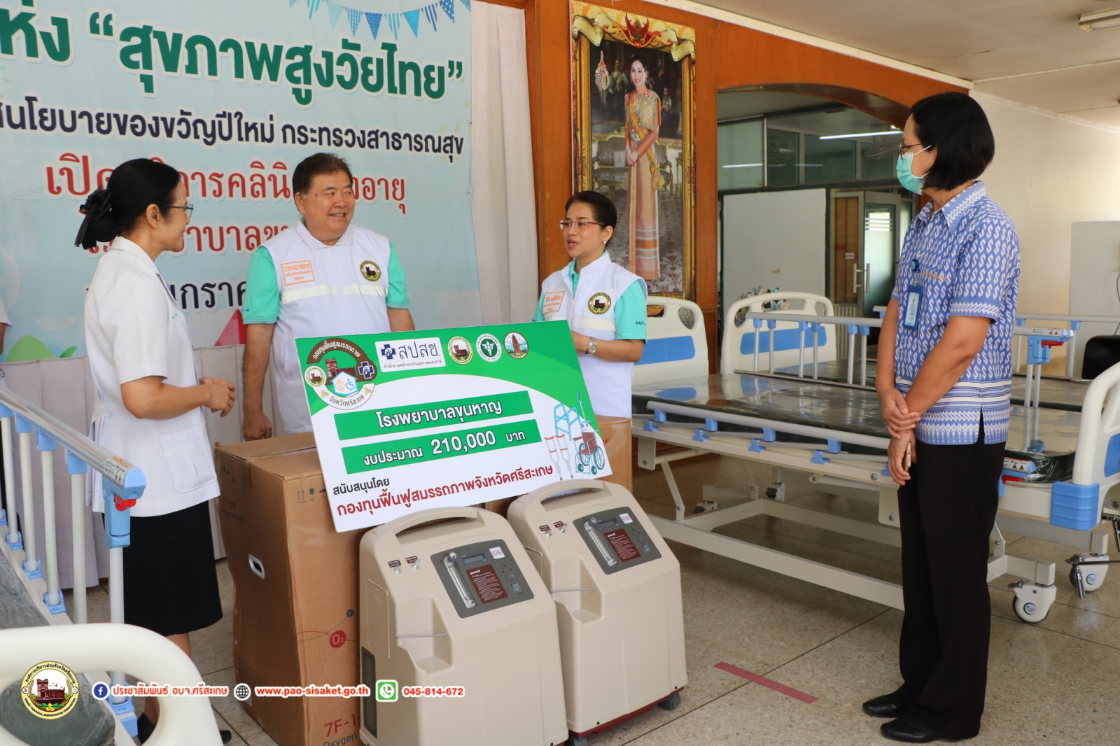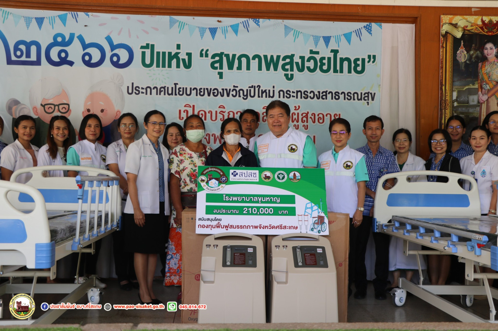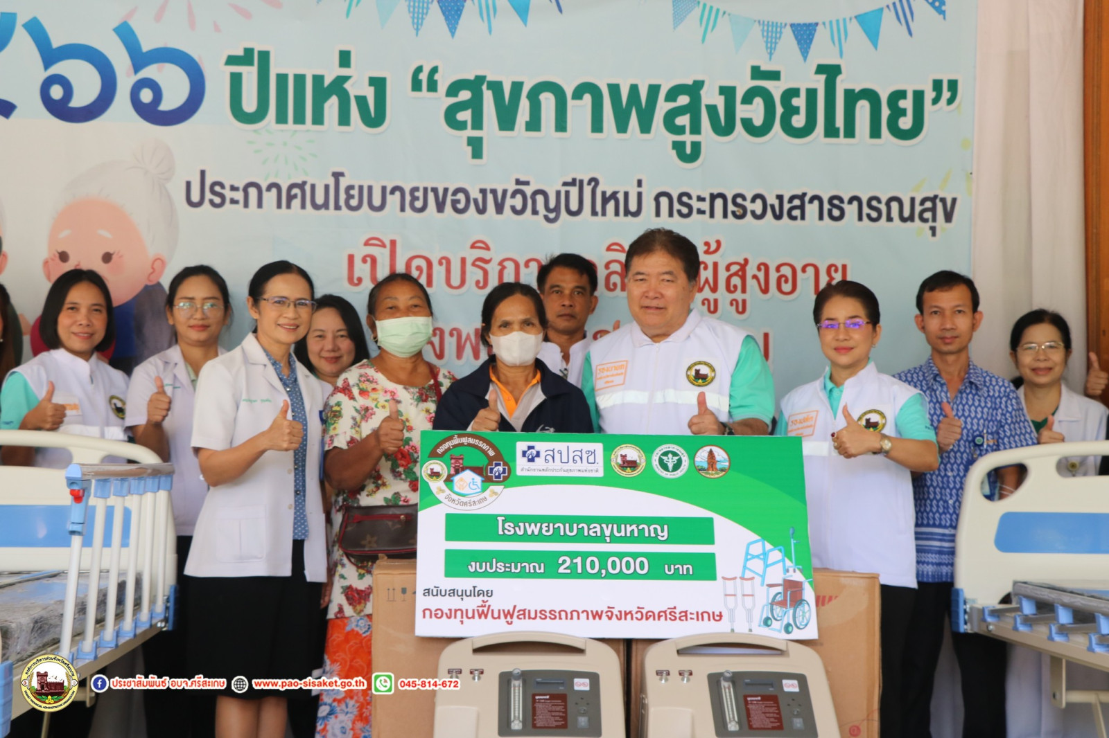 เมื่อวันที่ 23 พฤศจิกายน 2566 นายวิชิต ไตรสรณกุล นายกองค์การบริหารส่วนจังหวัดศรีสะเกษ นายกองค์การบริหารส่วนจังหวัดศรีสะเกษ ประธานกองทุนฟื้นฟูสมรรถภาพจังหวัดศรีสะเกษ มอบหมายให้ นายอภิศักดิ์ แซ่จึง รองนายกองค์การบริหารส่วนจังหวัดศรีสะเกษ พร้อมด้วย นายสมหวัง พุ่มไม้ สมาชิกสภาองค์การบริหารส่วนจังหวัดอำเภอพยุห์ นางสาวรภัทภร สายเย็น รองปลัดองค์การบริหารส่วนจังหวัดศรีสะเกษ รักษาราชการแทน ผู้อำนวยการสาธารณสุขและเจ้าหน้าที่ที่เกี่ยวข้อง ส่งมอบอุปกรณ์เครื่องช่วยความพิการเพื่อฟื้นฟูสมรรถภาพที่บ้าน ให้กับผู้พิการ ผู้สูงอายุ ผู้ป่วยที่อยู่ในระยะวิกฤตกึ่งเฉียบพลัน และผู้ที่มีภาวะพึ่งพิง ตามโครงการศูนย์สาธิตและยืมอุปกรณ์เครื่องช่วยความพิการฟื้นฟูสมรรถภาพที่บ้าน ประจำปี 2566 ณ โรงพยาบาลขุนหาญ อำเภอขุนหาญ จังหวัดศรีสะเกษ และโรงพยาบาลพยุห์ อำเภอพยุห์ จังหวัดศรีสะเกษ