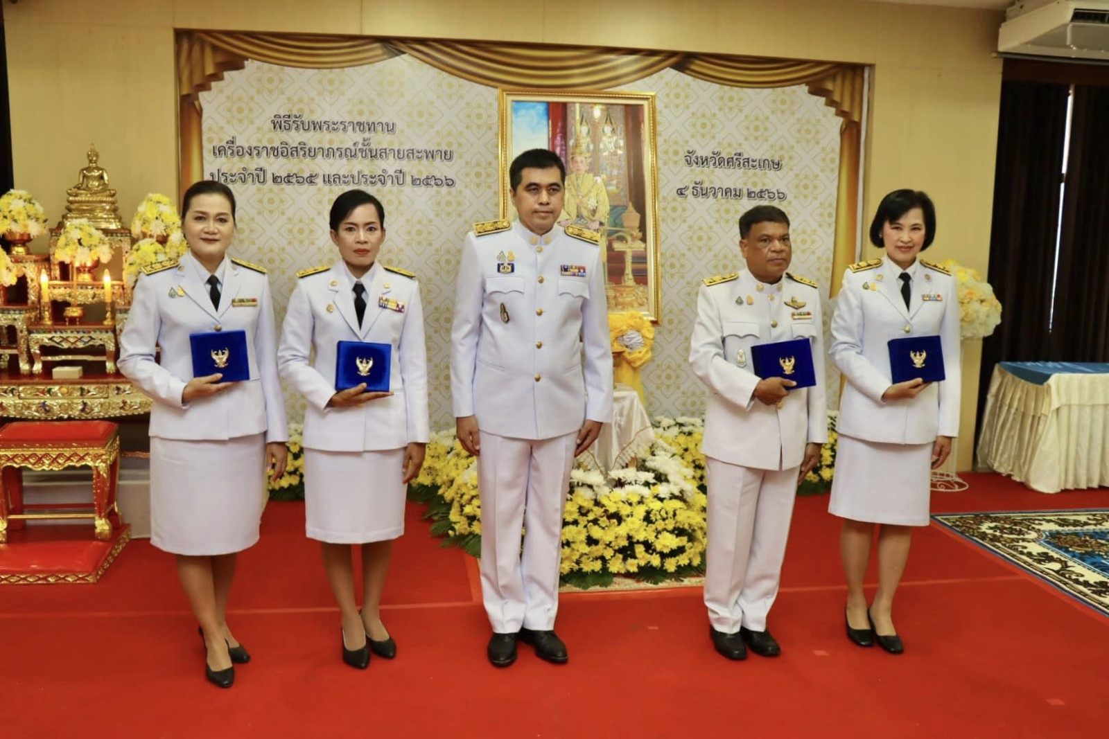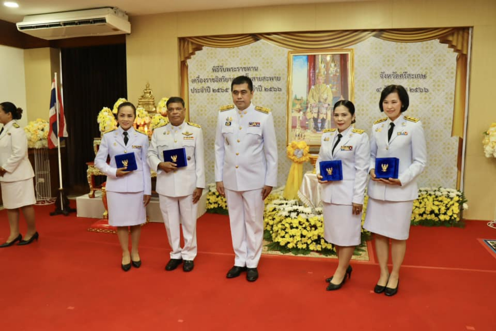 จังหวัดศรีสะเกษจึงได้กำหนดจัดพิธีรับพระราชทานเครื่องราชอิสริยาภรณ์ ชั้นสายสะพาย ประจำปี ๒๕๖๕ และประจำปี ๒๕๖๖ในวันที่ ๔ ธันวาคม ๒๕๖๖ให้แก่ข้าราชการในจังหวัดศรีสะเกษ โดยในปี ๒๕๖๕ และปี ๒๕๖๖ มีข้าราชการสังกัดกระทรวงมหาดไทยในส่วนภูมิภาคและส่วนท้องถิ่นที่ได้รับพระราชทานเครื่องราชอิสริยาภรณ์ชั้นสายสะพาย รวมทั้งสิ้น ๕๘ ราย ประกอบด้วย