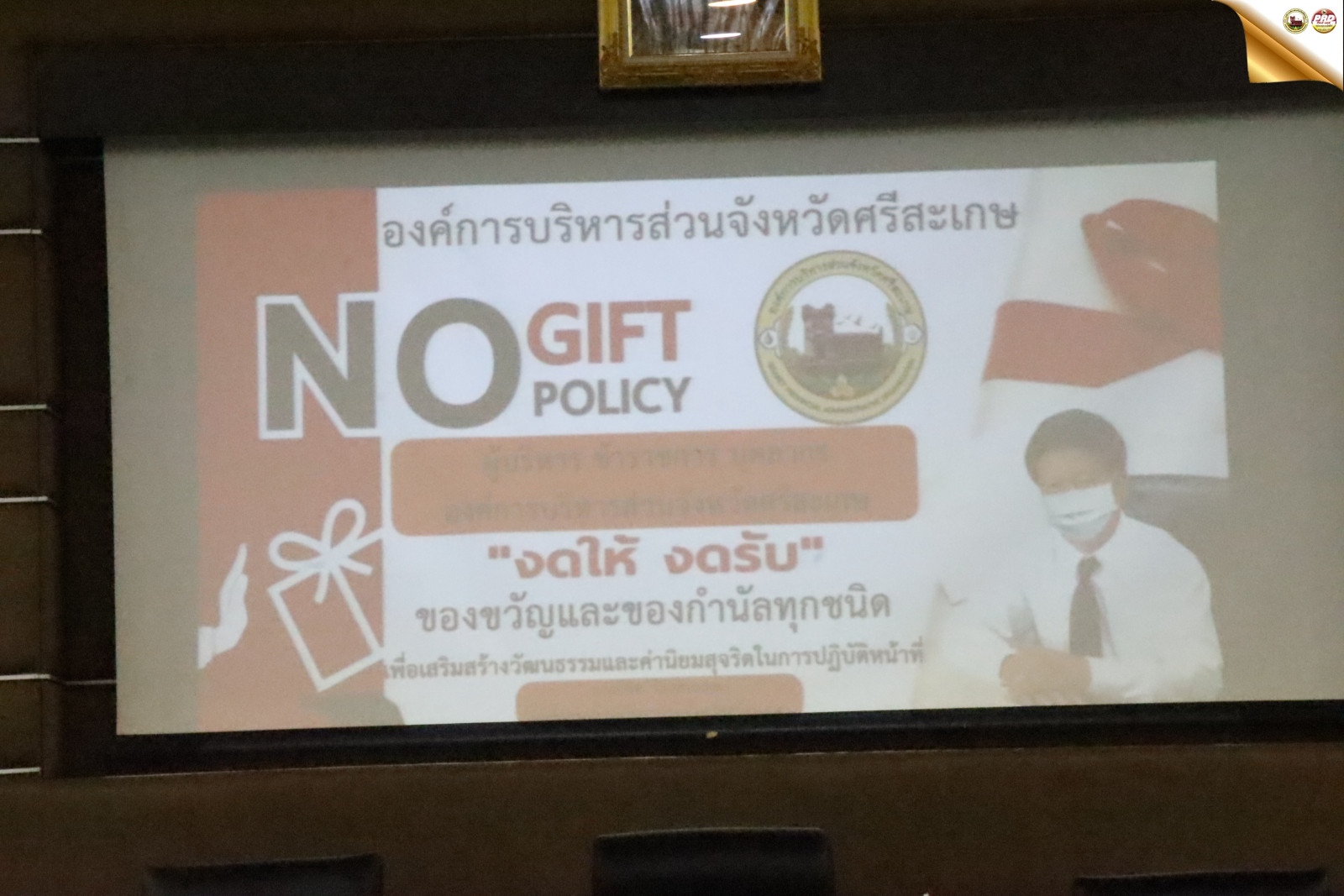 ในการนี้ได้มีการให้นโยบายและความรู้ในเรื่อง “นโยบาย No Gift Policy จากการปฏิบัติหน้าที่ เพื่อให้บุคลากรองค์การบริหารส่วนจังหวัดศรีสะเกษ รับทราบแนวทาง Dos & Don’ts ซึ่งเป็นส่วนหนึ่งที่ทำให้บุคลากรในองค์การบริหารส่วนจังหวัดศรีสะเกษมีคุณธรรม ซื่อสัตย์สุจริต บุคลากรทุกคนงดรับของขวัญและของกำนัลในการปฏิบัติหน้าที่ทุกกรณี เป็นการปลูกฝังจิตสำนึกการทำงานด้วยใจบริการ การสร้างวัฒนธรรมความซื่อสัตย์สุจริตให้เกิดขึ้นอย่างเป็นรูปธรรมในองค์กร ซึ่งสอดคล้องกับมาตรฐานทางจริยธรรมในหัวข้อซื่อสัตย์สุจริต มีจิตสำนึกที่ดี และรับผิดชอบต่อหน้าที่