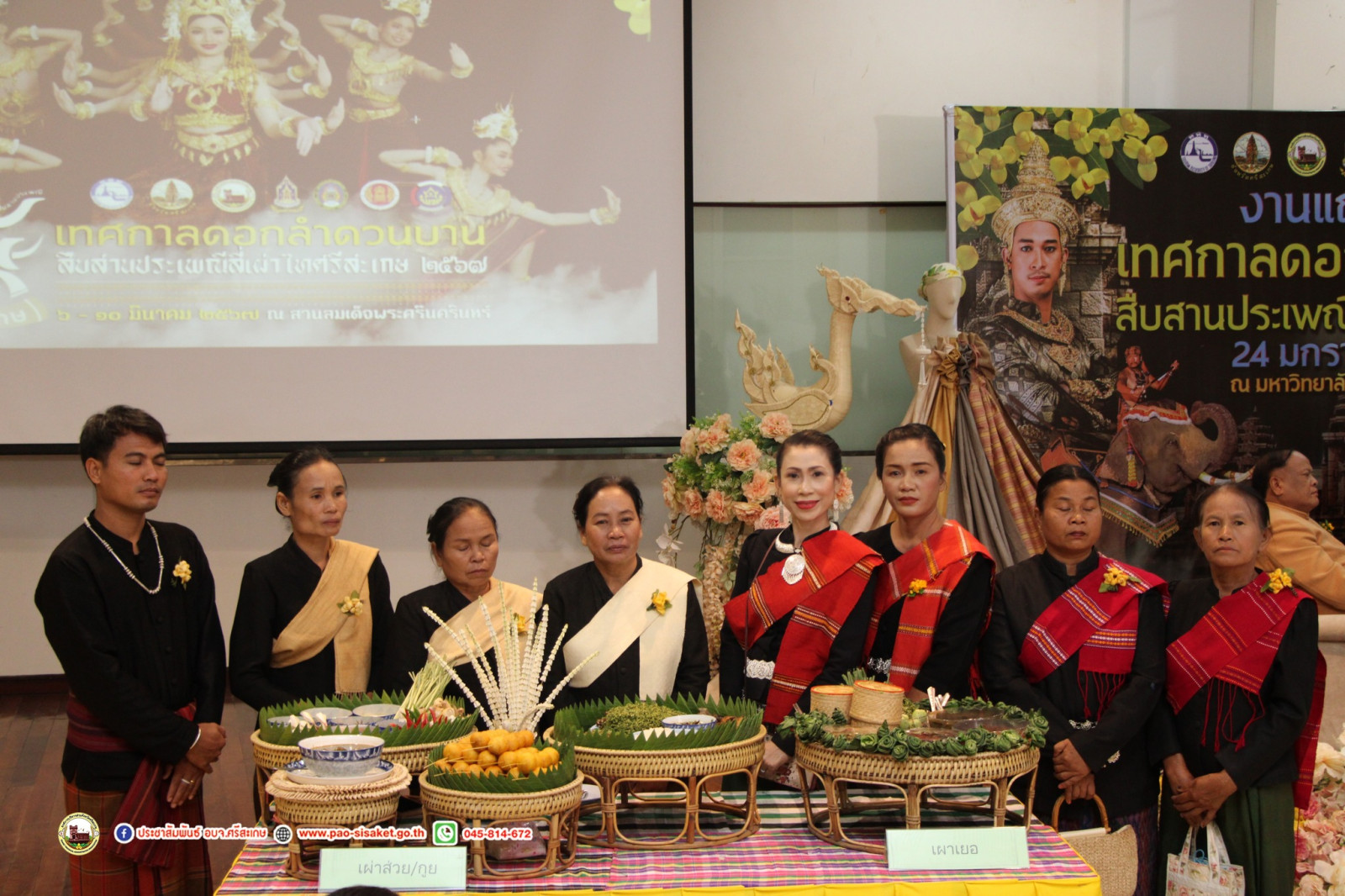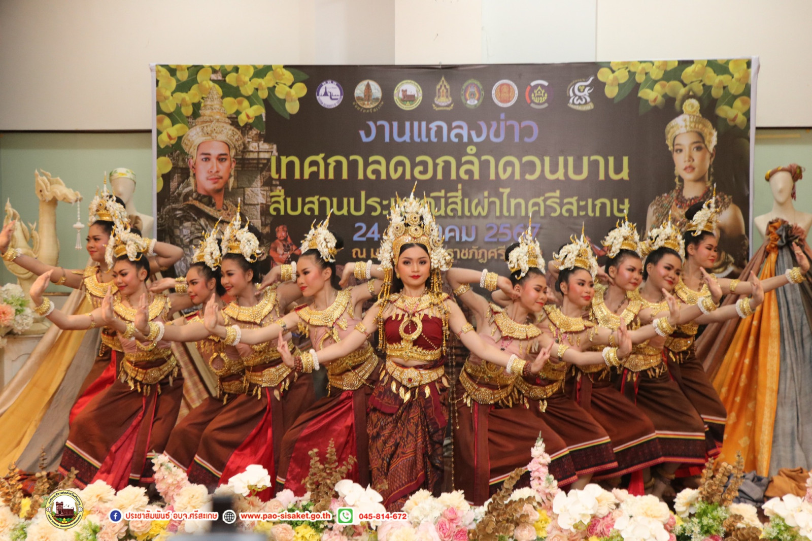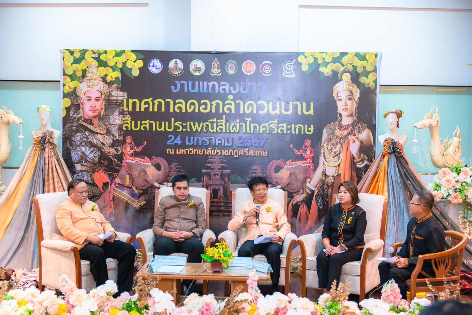 วันที่ 24 มกราคม 2567 ที่ ห้องประชุมศรีวรรณ เกียรติสุรนนท์ อาคารเฉลิมพระเกียรติ 80 พรรษา 5 ธันวาคม 2550 มหาวิทยาลัยราชภัฎศรีสะเกษ นายอนุพงษ์ สุขสมนิตย์ ผู้ว่าราชการจังหวัดศรีสะเกษ นายวิชิต ไตรสรณกุล นายกองค์การบริหารส่วนจังหวัดศรีสะเกษ รองศาตราจารย์ ดร.ประกาศิต อานุภาพแสนยากร รักษาราชการแทนอธิการบดี มหาวิทยาลัยราชภัฎศรีสะเกษ พร้อมด้วยนางศรีสุภรณ์ ชมศรีหาราชพรผู้อำนวยการการท่องเที่ยวแห่งประเทศไทย สำนักงานสุรินทร์ ได้ร่วมแถลงข่าวเตรียมจัดงานเทสกาลดอกลำดวนบาน สืบสานประเพณี 4 เผ่าไทศรีสะเกษ ประจำปี 2567 ซึ่งปีนี้ได้เตรียมการแสดงชุดใหม่ สุดอลังการอารยธรรมแห่งศรัทธา มนตราศรีพฤทเธศวร ตอนรอยบรรพชน ตำนานสร้างเมืองศรีสะเกษ