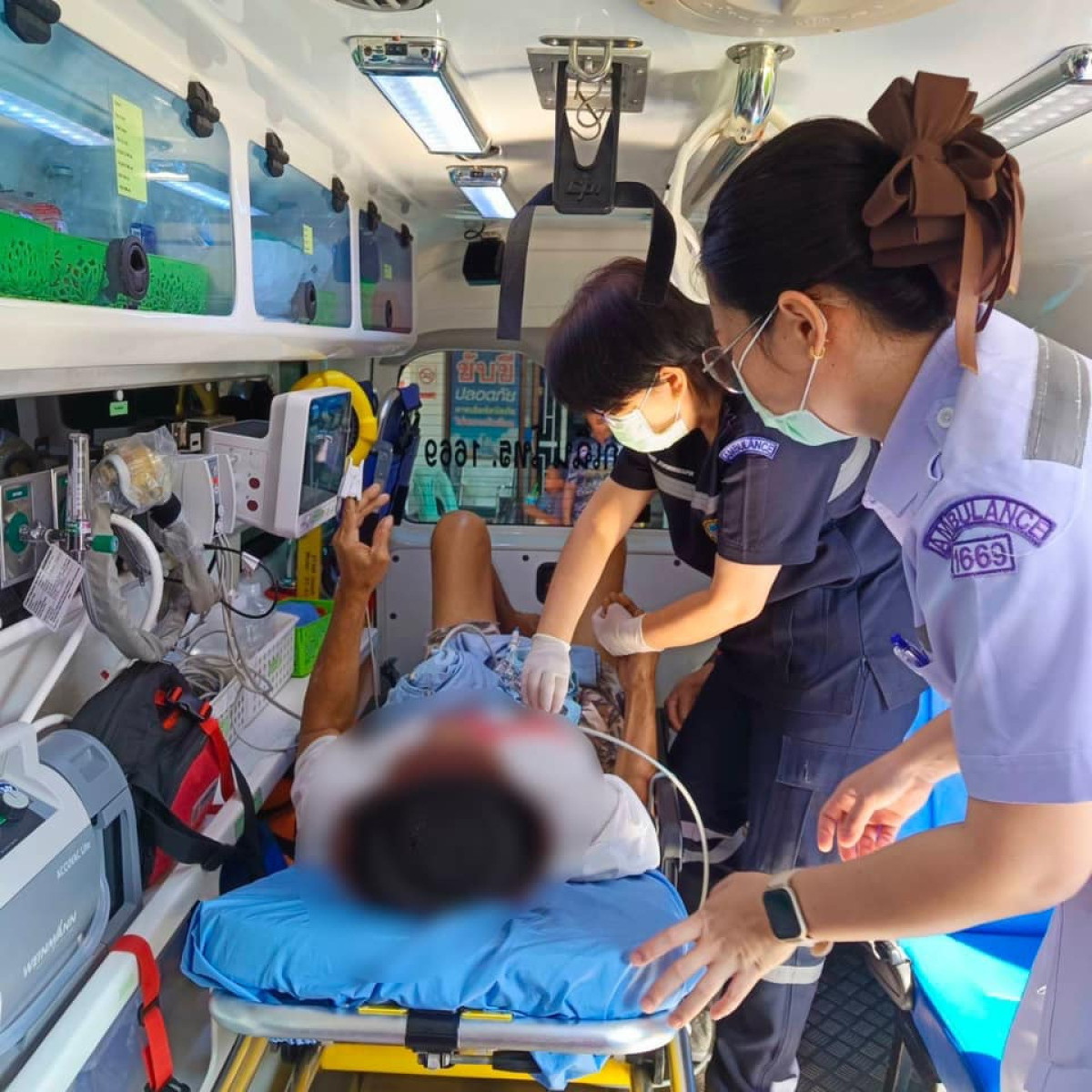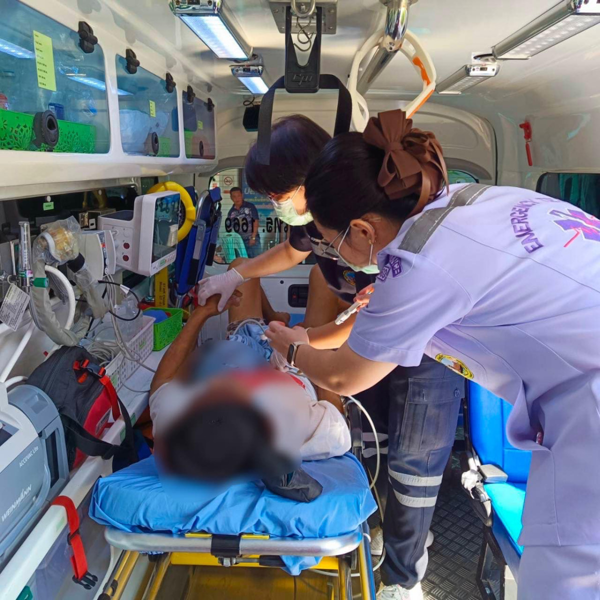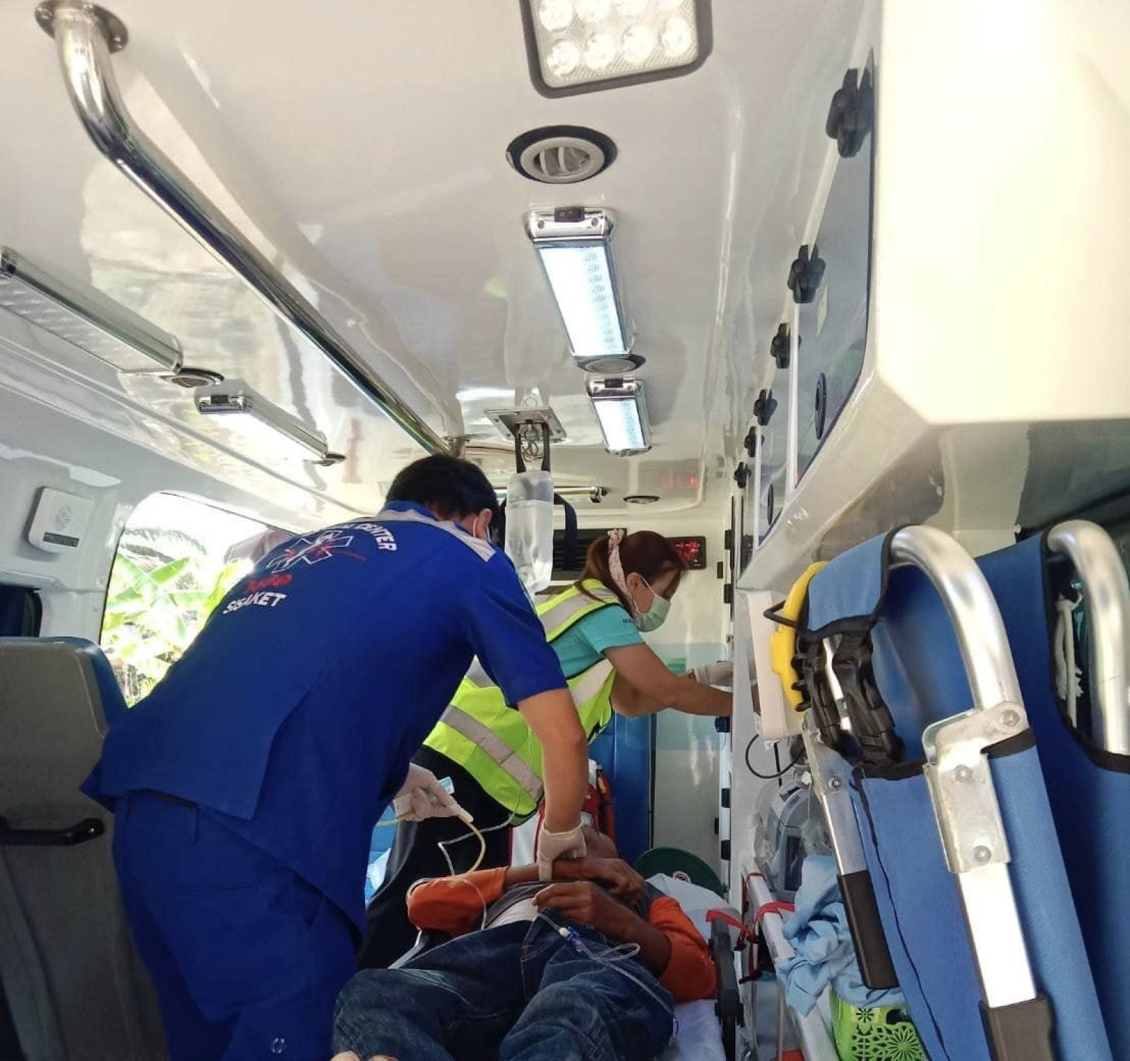 รักษาพยาบาลเบื้องต้นนำส่งโรงพยาบาลศรีสะเกษ