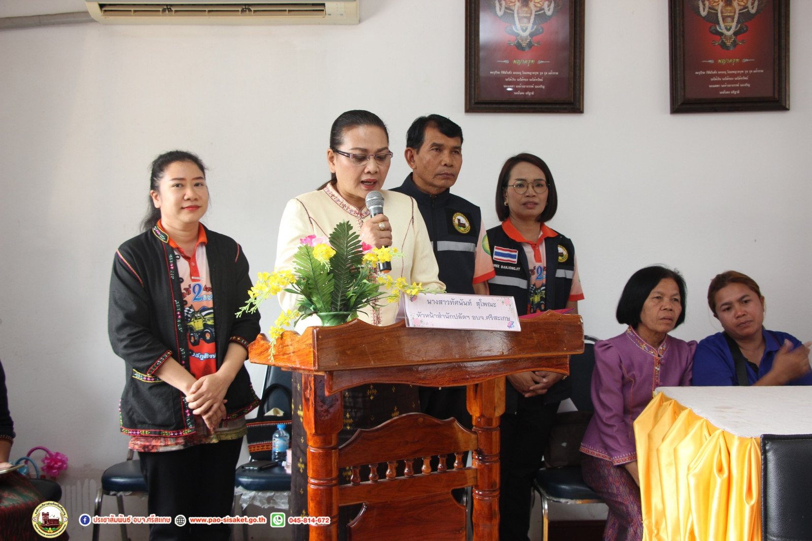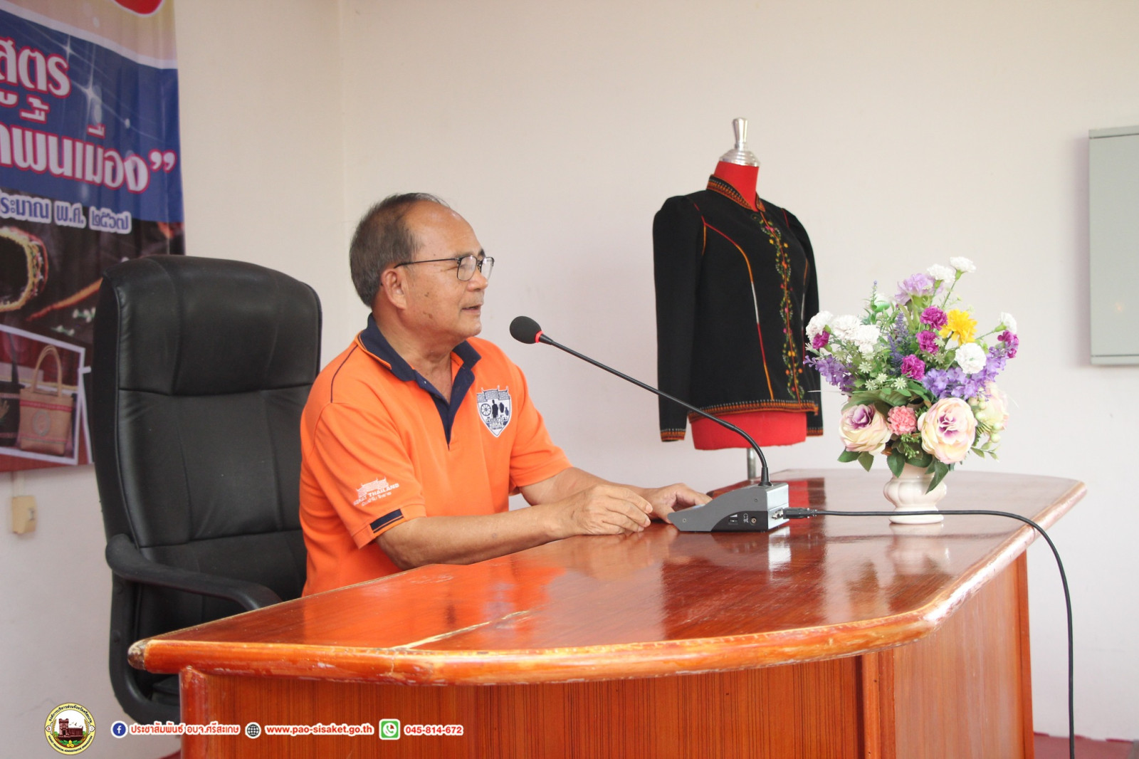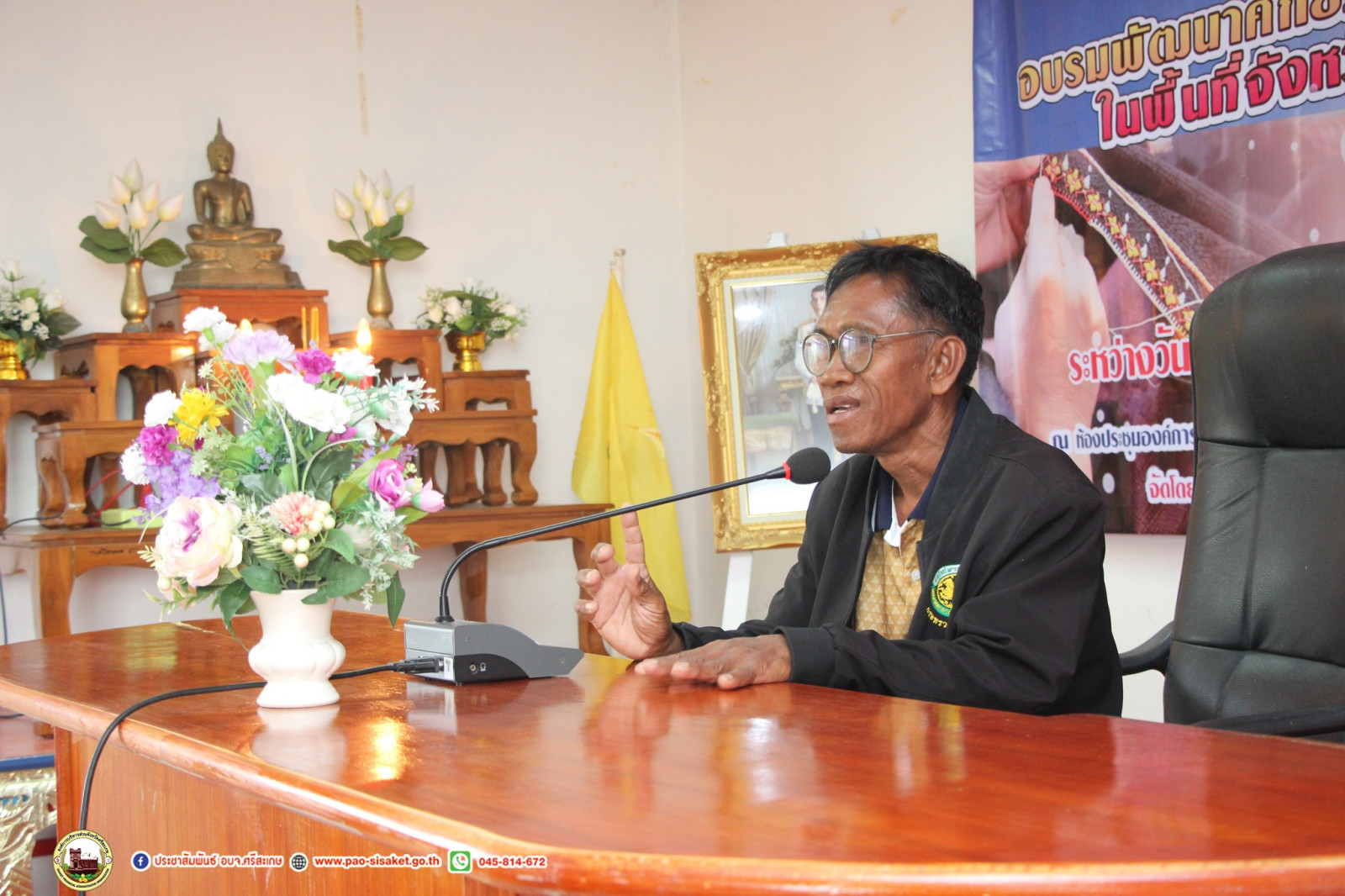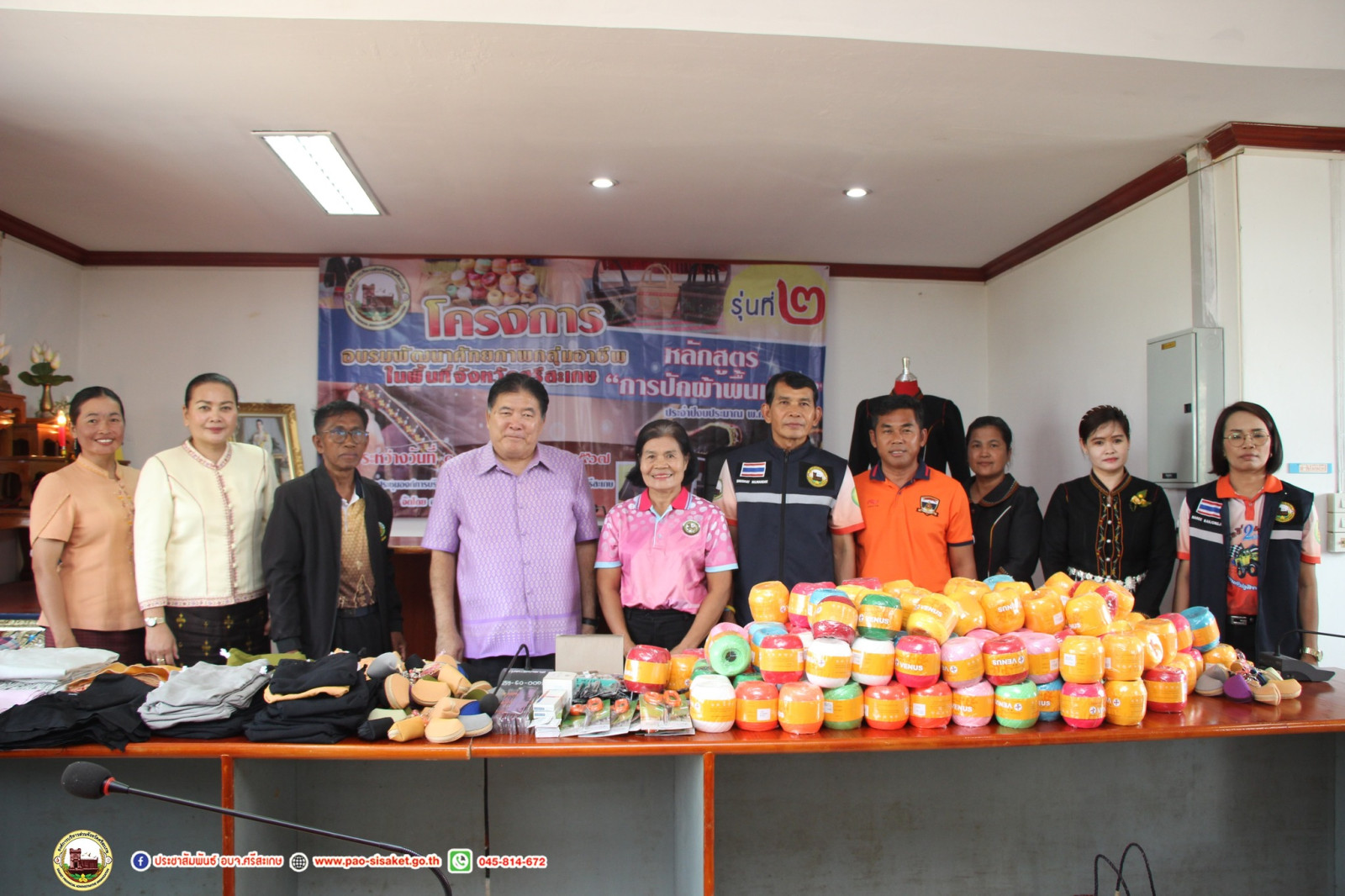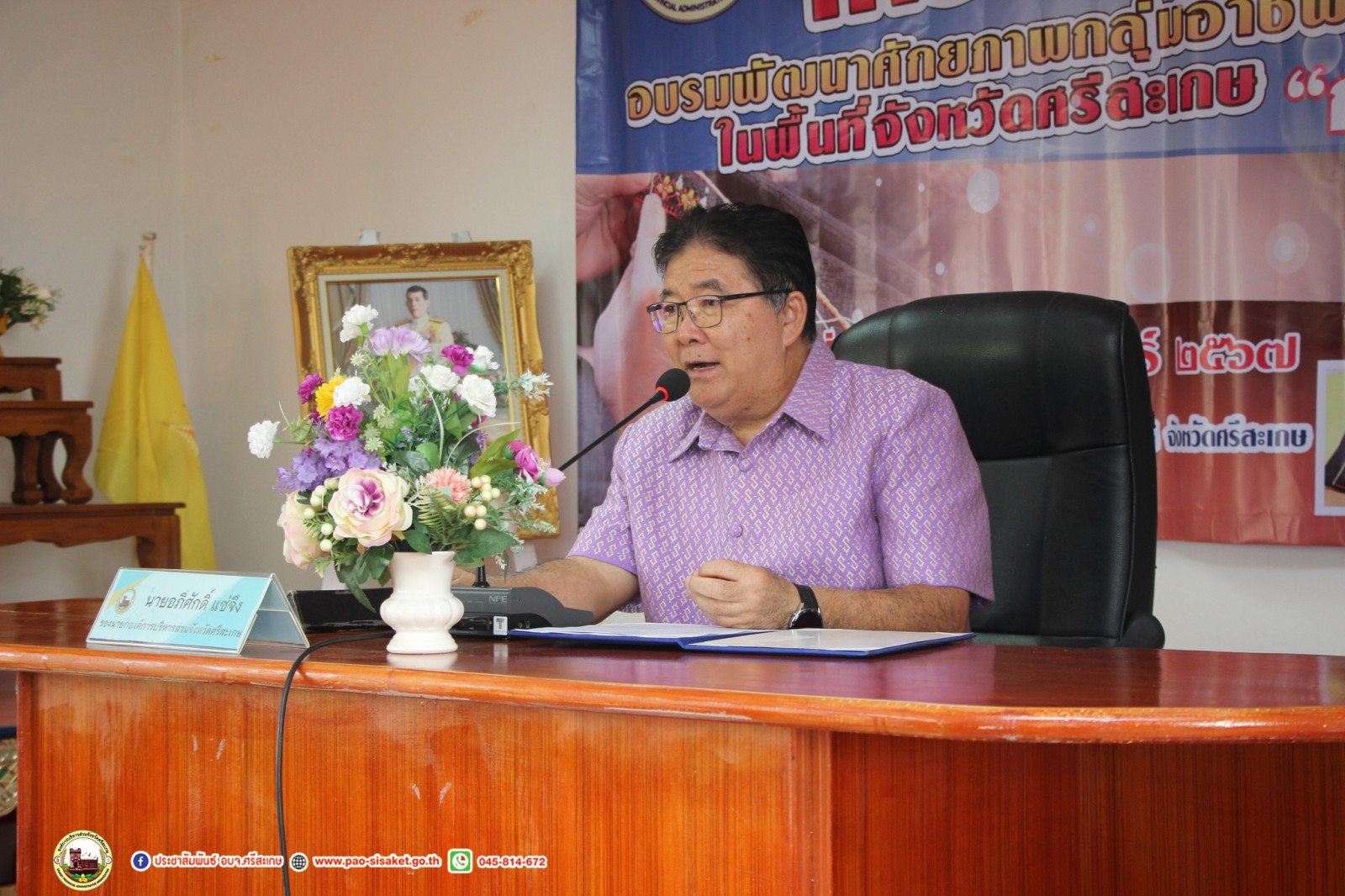 นายวิชิต_ไตรสรณกุล นายกองค์การบริหารส่วนจังหวัดศรีสะเกษ มอบหมายให้ นายอภิศักดิ์ แซ่จึง รองนายกองค์การบริหารส่วนจังหวัดศรีสะเกษ พร้อมด้วย นายอนุวัฒน์ ธรรมพร สมาชิกสภาองค์การบริหารส่วนจังหวัดศรีสะเกษ เขตอำเภอภูสิงห์ นางสาวทัศนันท์ สุโพณะ หัวหน้าสำนักปลัดองค์การบริหารส่วนจังหวัด หัวหน้าส่วนราชการ ข้าราชการ เจ้าหน้าที่ที่เกี่ยวข้อง ร่วมเปิด โครงการอบรมพัฒนาศักยภาพกลุ่มอาชีพ ในพื้นที่จังหวัดศรีสะเกษ