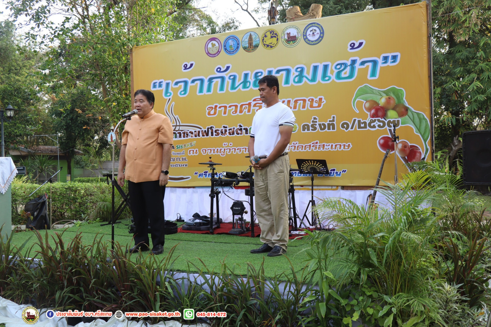 วันที่ 7 กุมภาพันธ์ 2567 เวลา 7.00 น. นายวิชิต ไตรสรณกุล นายก อบจ.ศรีสะเกษ พร้อมด้วย นายอภิศักดิ์ แซ่จึง รอง นายก อบจ. ศรีสะเกษ นางสาวรภัทภร สายเย็น รองปลัด อบจ.ศรีสะเกษ คณะผู้บริหาร ข้าราชการและเจ้าหน้าที่ในสังกัด อบจ.ศรีสะเกษ ร่วมงาน ภายใต้ชื่องาน “เว้ากันยามเช้า” ชาวศรีสะเกษ สภากาแฟโรบัสต้าศรีสะเกษ ครั้งที่ 1/2567 เพื่อหารือข้อราชการอย่างไม่เป็นทางการ ณ จวนผู้ว่าราชการจังหวัดศรีสะเกษ