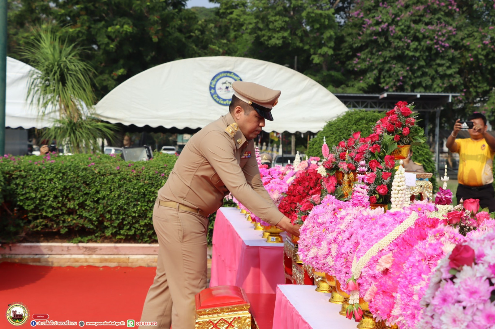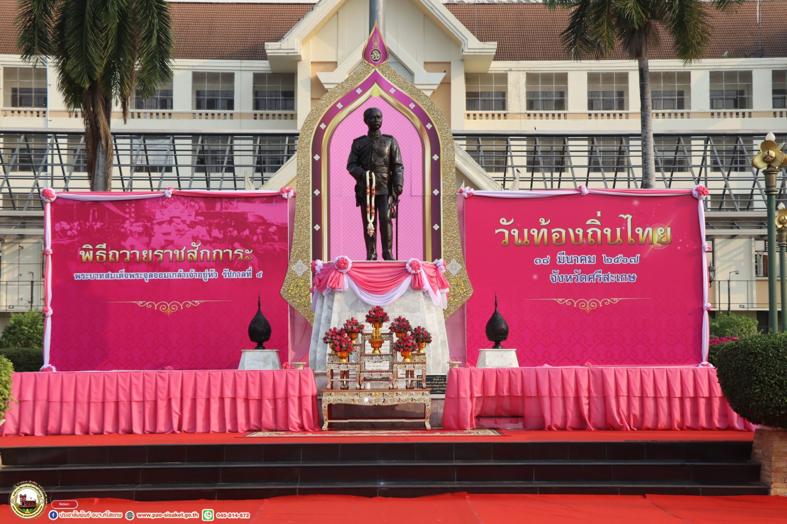 วันที่ 18 มีนาคม 2567 ณ พระบรมราชานุสาวรีย์ พระบาทสมเด็จพระจุลจอมเกล้าเจ้าอยู่หัว สนามหน้าศาลากลาง อำเภอเมือง จังหวัดศรีสะเกษ นายวิชิต ไตรสรณกุล นายกองค์การบริหารส่วนจังหวัดศรีสะเกษ มอบหมายให้