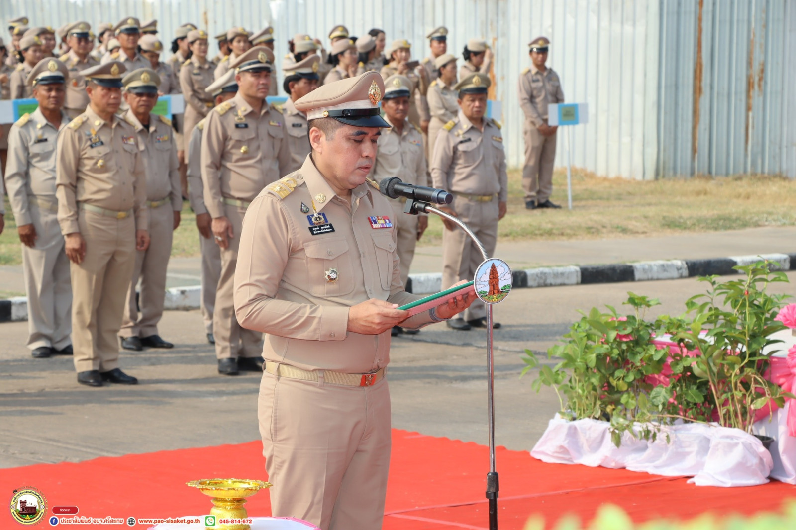 โดยมี นายอนุพงศ์ สุขสมนิตย์ ผู้ว่าราชการจังหวัดศรีสะเกษ อ่านสารรัฐมนตรีว่าการกระทรวงมหาดไทยเนื่องในโอกาสวันท้องถิ่นไทย ประจำปี 2567 และมีหัวหน้าส่วนราชการ ข้าราชการองค์กรปกครองส่วนท้องถิ่นจังหวัดศรีสะเกษ ร่วมพิธีอย่างพร้อมเพรียง