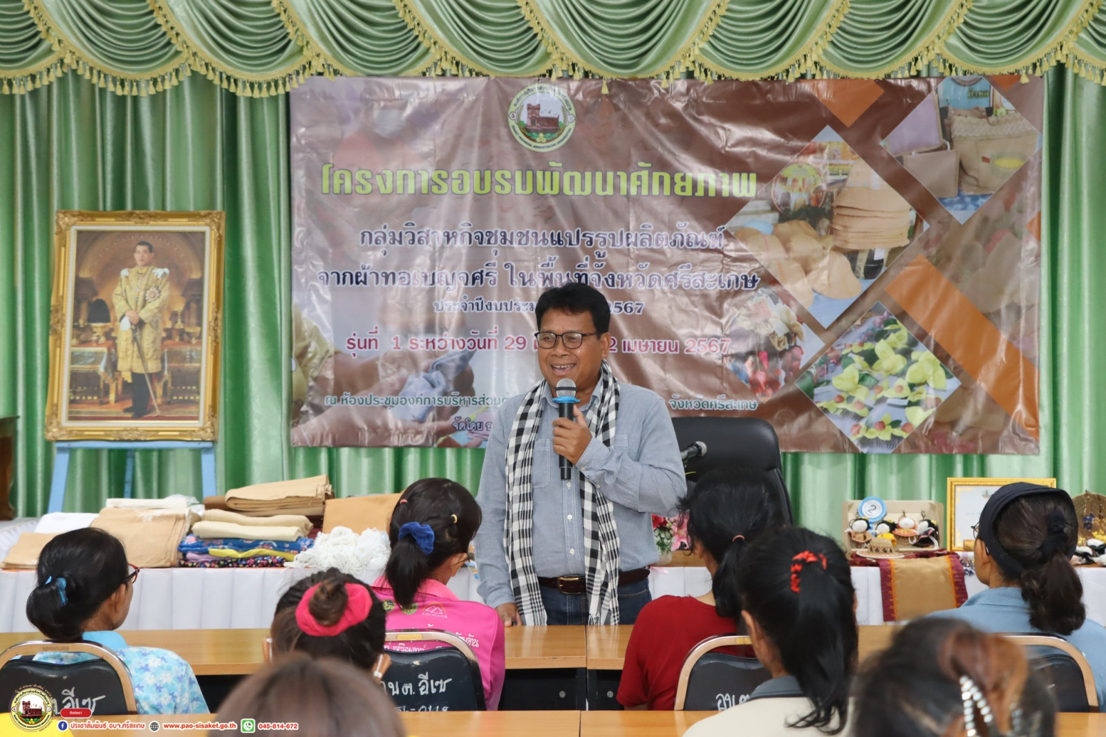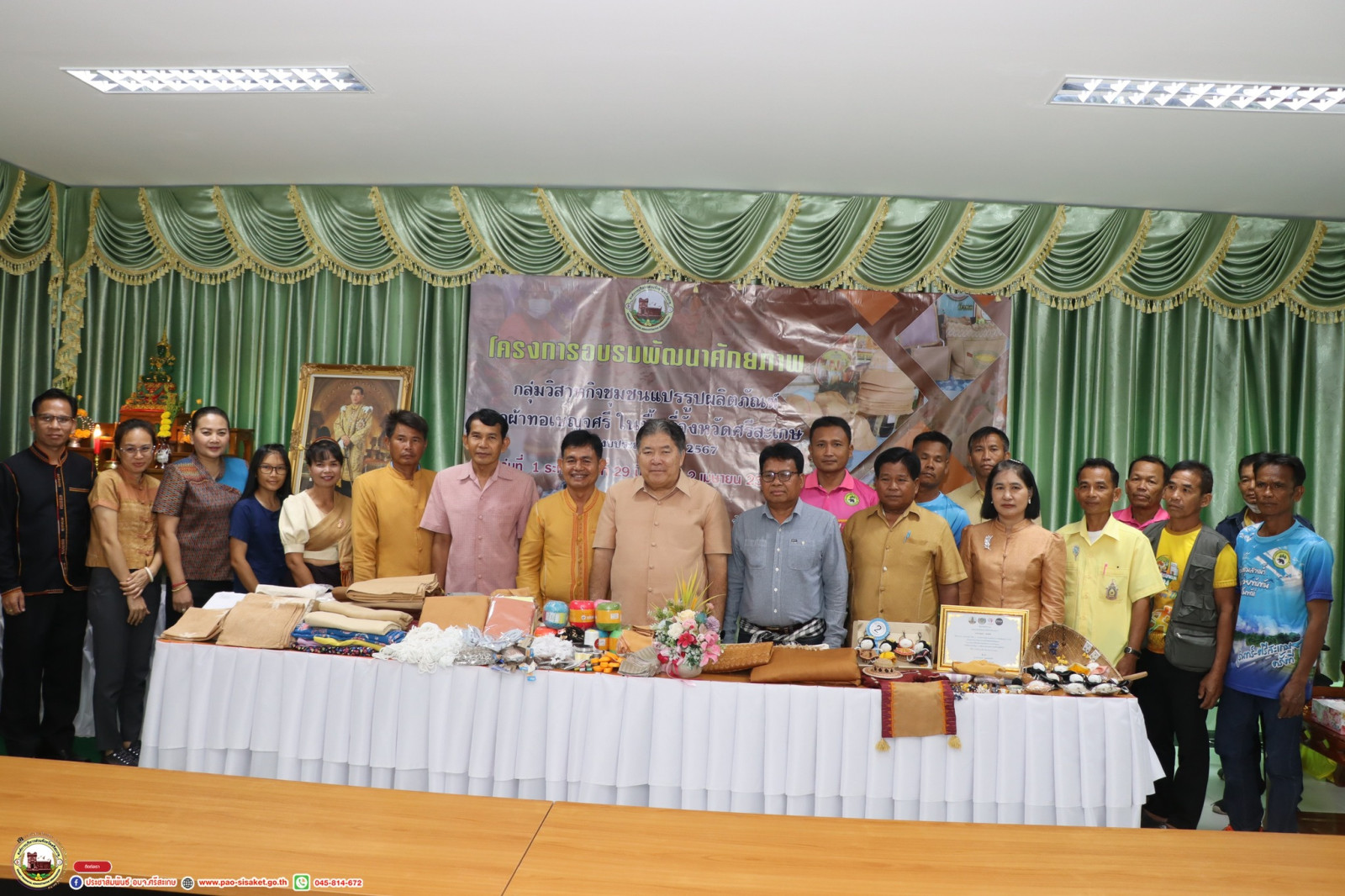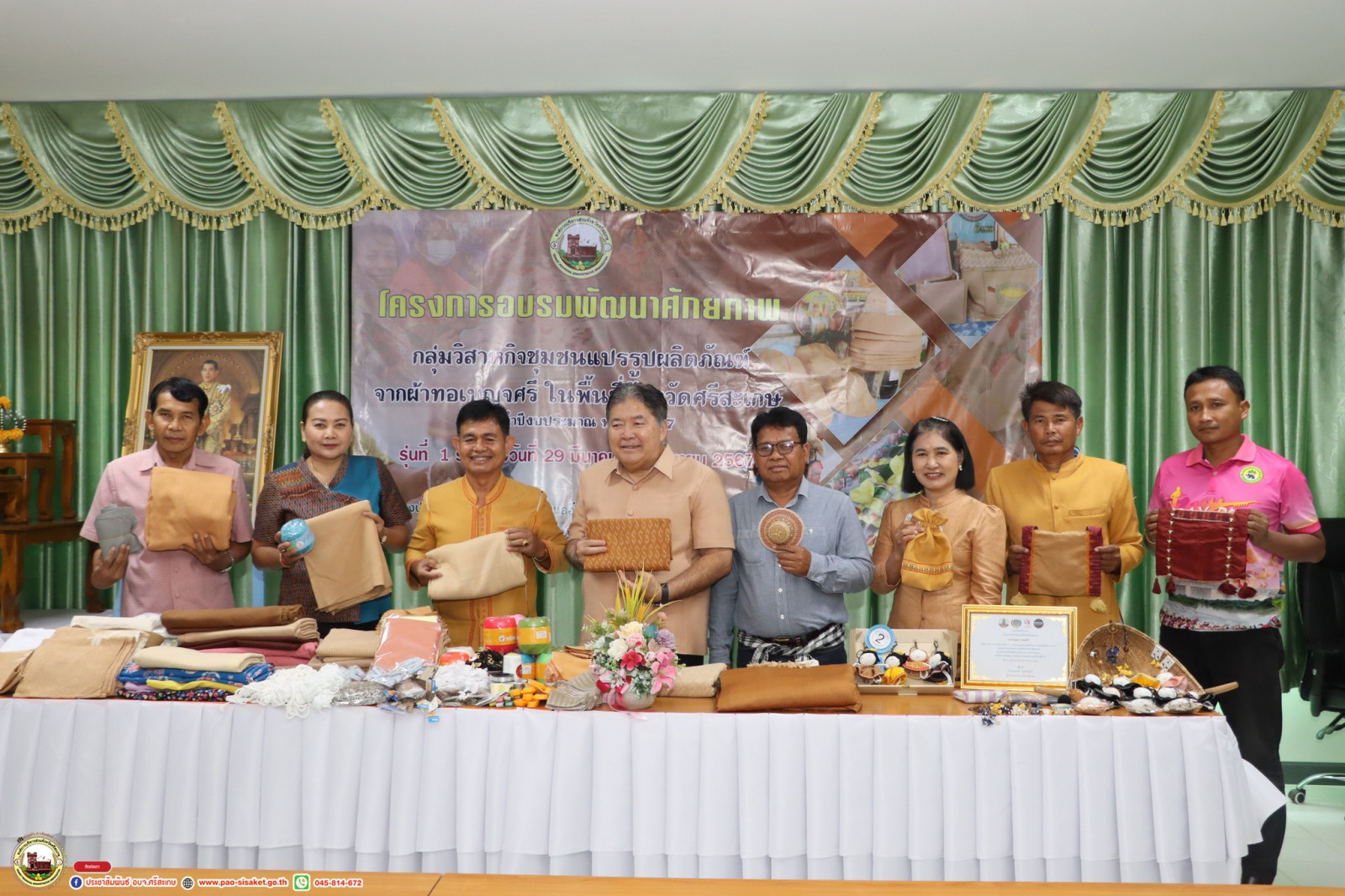 อบจ.ศรีสะเกษ เปิดโครงการอบรมพัฒนาศักยภาพกลุ่มวิสาหกิจชุมชนแปรรูปผลิตภัณฑ์จากผ้าทอเบญจศรีในพื้นที่จังหวัดศรีสะเกษ ประจำปีงบประมาณ พ.ศ. 2567 รุ่นที่ 1