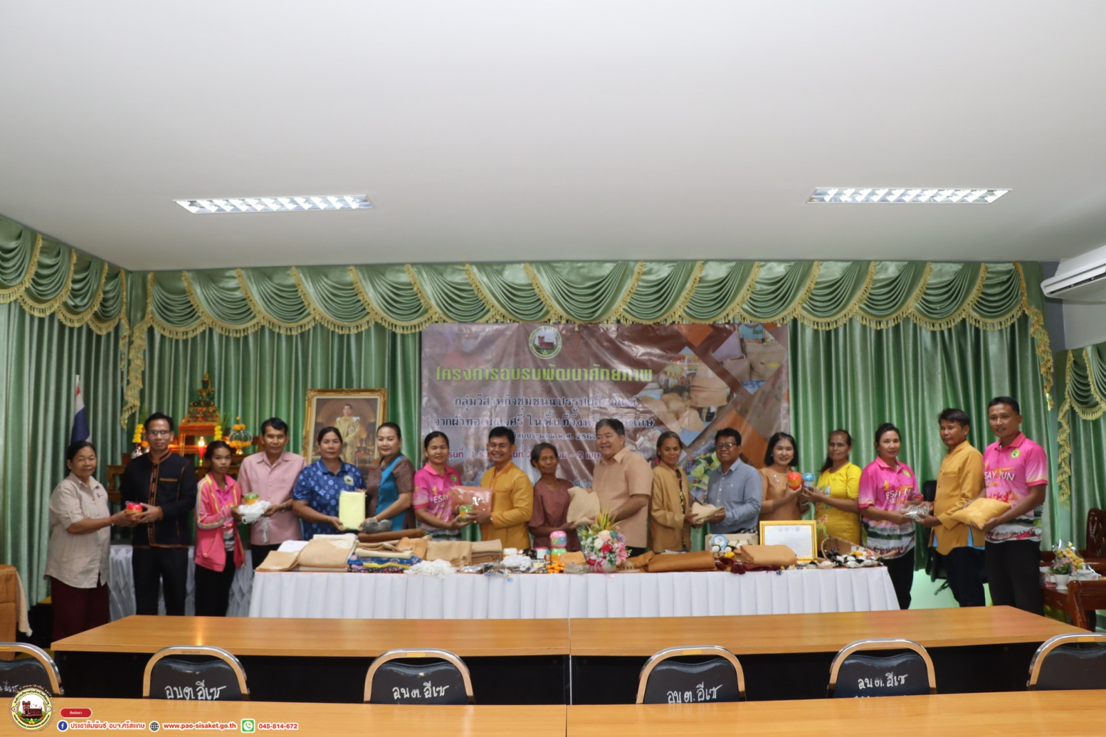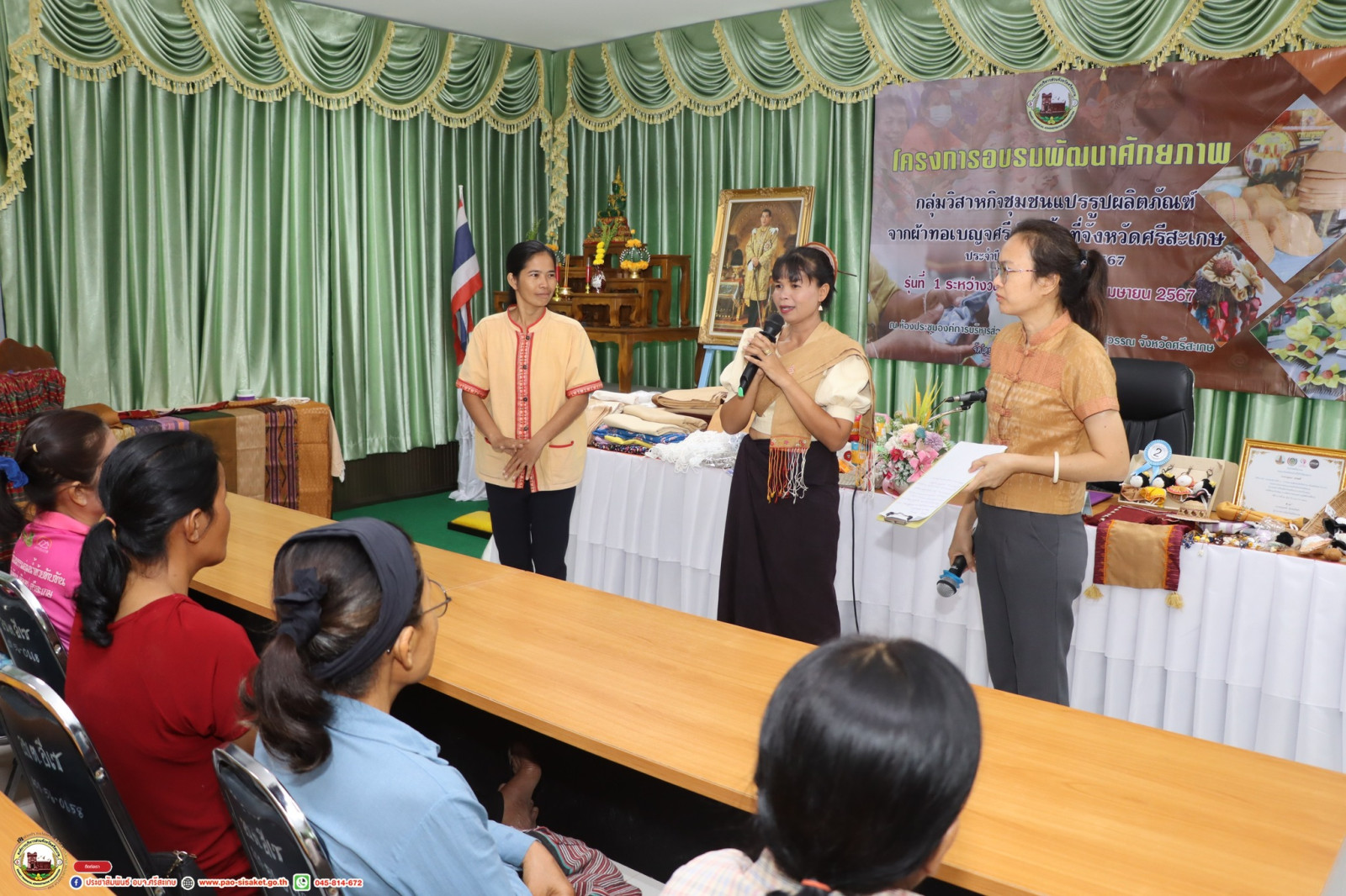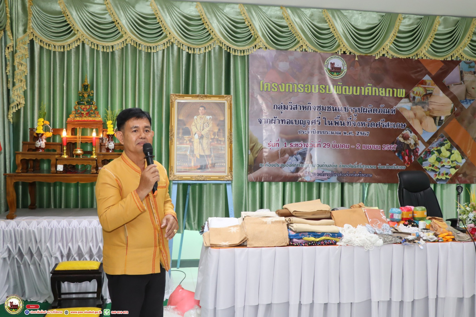 อบจ.ศรีสะเกษ เปิดโครงการอบรมพัฒนาศักยภาพกลุ่มวิสาหกิจชุมชนแปรรูปผลิตภัณฑ์จากผ้าทอเบญจศรีในพื้นที่จังหวัดศรีสะเกษ ประจำปีงบประมาณ พ.ศ. 2567 รุ่นที่ 1