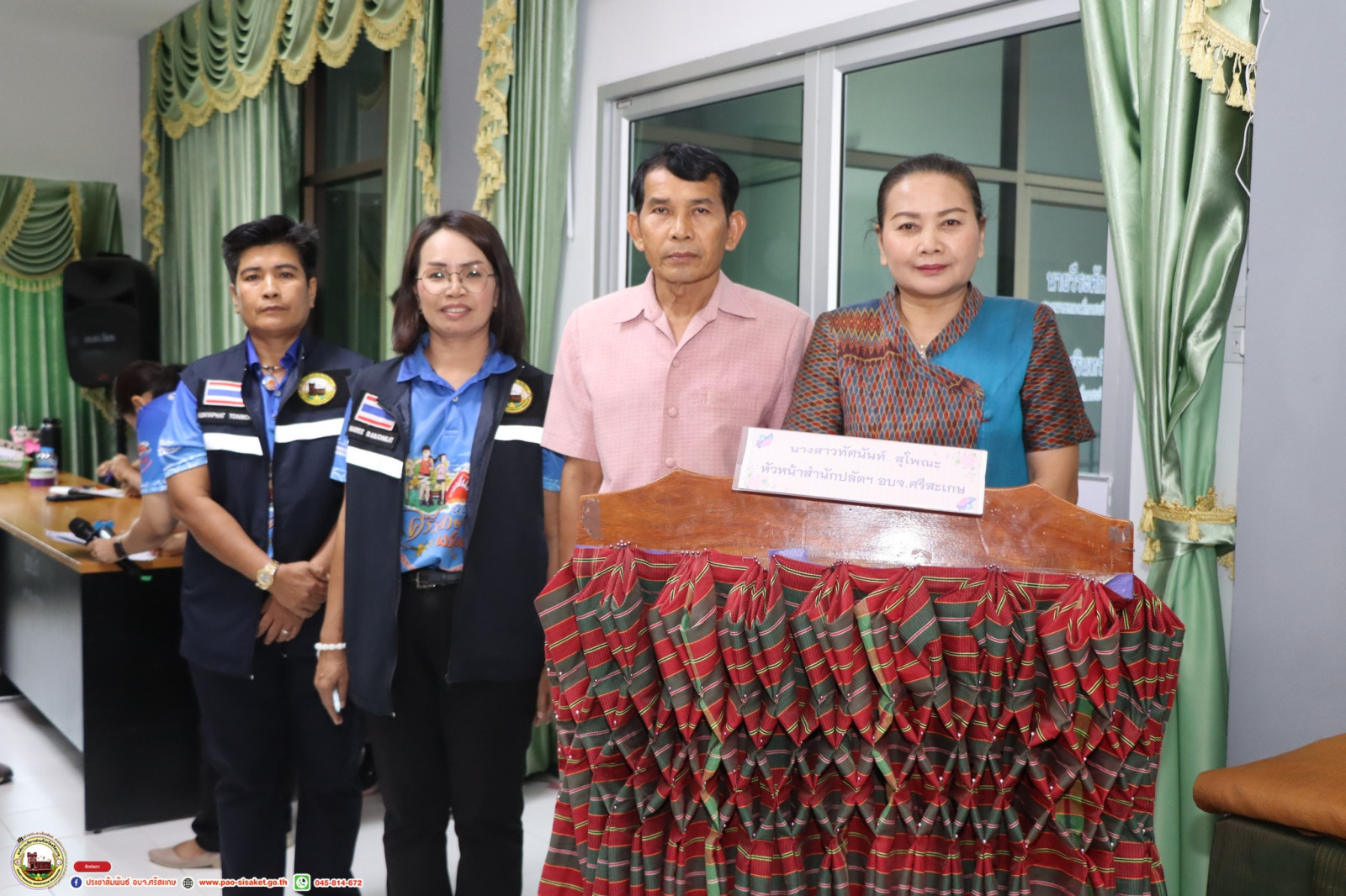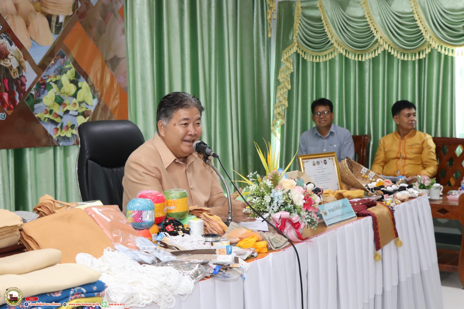 วันที่ 29 มีนาคม 2567 เวลา 10.00น. น. ณ ห้องประชุมองค์การบริหารส่วนตำบลอีเซ อำเภอโพธิ์ศรีสุวรรณ จังหวัดศรีสะเกษ นายวิชิต ไตรสรณกุล นายกองค์การบริหารส่วนจังหวัดศรีสะเกษ มอบหมายให้ นายอภิศักดิ์ แซ่จึง รองนายกองค์การบริหารส่วนจังหวัดศรีสะเกษ พร้อมด้วย นายเรวัตร จันทร สมาชิกสภาองค์การบริหารส่วนจังหวัดศรีสะเกษ อำเภอโพธิ์ศรีสุวรรณ นางสาวทัศนันท์ สุโพณะ หัวหน้าสำนักปลัดฯ องค์การบริหารส่วนจังหวัดศรีสะเกษ หัวหน้าส่วนราชการเจ้าหน้าที่ที่เกี่ยวข้อง ร่วมพิธีเปิด โครงการอบรมพัฒนาศักยภาพกลุ่มวิสาหกิจชุมชนแปรรูปผลิตภัณฑ์จากผ้าทอเบญจศรีในพื้นที่จังหวัดศรีสะเกษ ประจำปีงบประมาณ พ.ศ. 2567 รุ่นที่ 1 ระหว่างวันที่ 29 มีนาคม - 2 เมษายน 2567