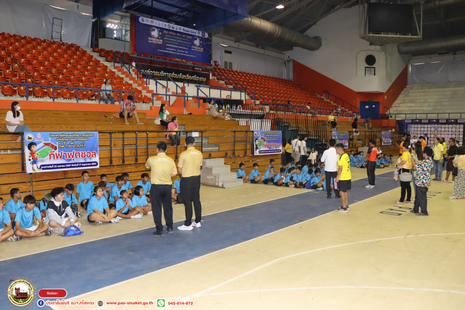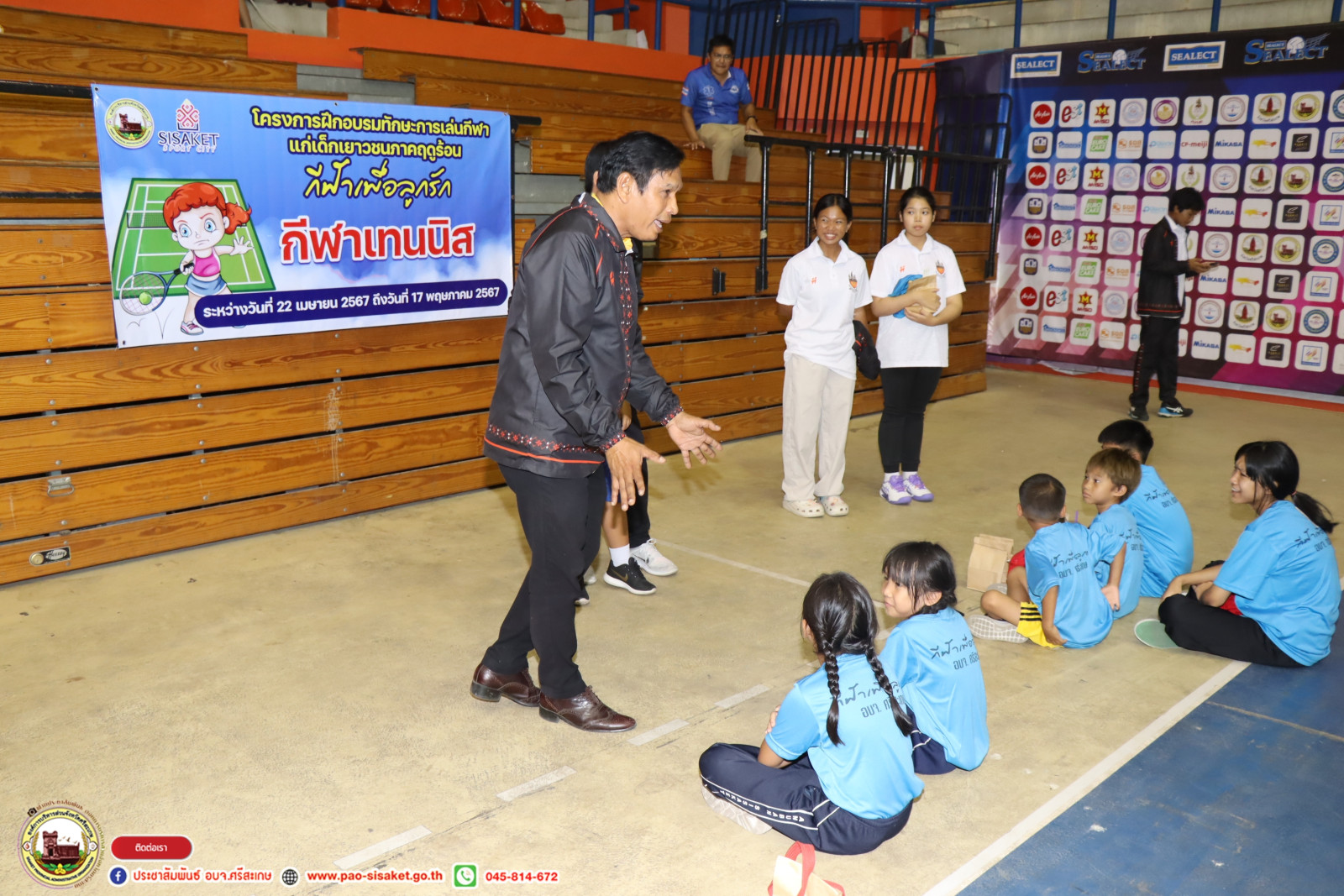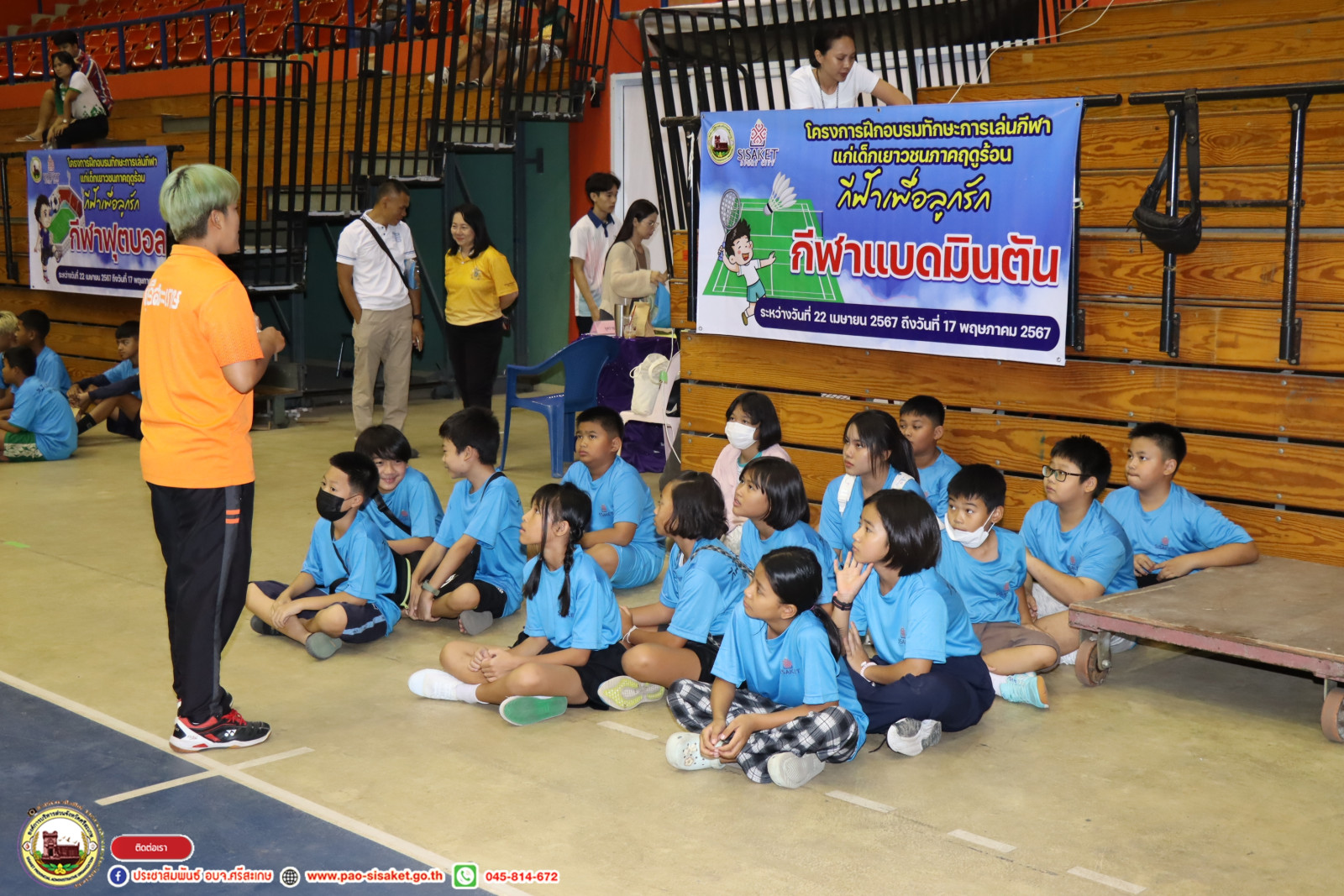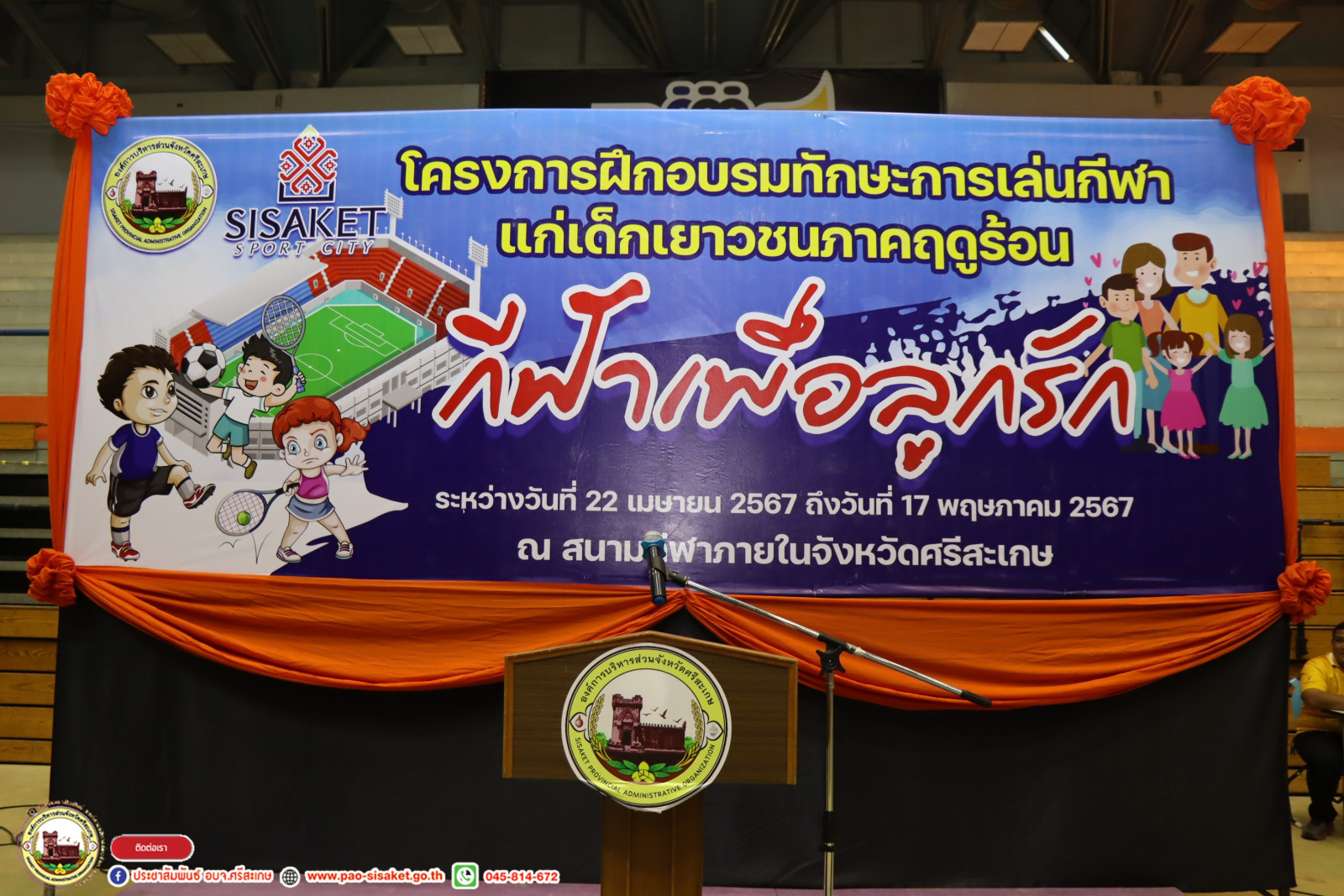 เมื่อวันที่ 22 เมษายน 2567 เวลา 09.30 น. ณ อาคารพลศึกษาวีสมหมาย องค์การบริหารส่วนจังหวัดศรีสะเกษ #นายวิชิต_ไตรสรณกุล นายกองค์การบริหารส่วนจังหวัดศรีสะเกษ มอบหมายให้ นายอภิศักดิ์ แซ่จึง รองนายกองค์การบริหารส่วนจังหวัดศรีสะเกษ เป็นประธานเปิดโครงการฝึกอบรมทักษะการเล่นกีฬาแก่เยาวชนภาคฤดูร้อน "กีฬาเพื่อลูกรัก” โดยมีหัวหน้าส่วนราชการ ข้าราชการ พนักงานสังกัดองค์การบริหารส่วนจังหวัดศรีสะเกษ ผู้ฝึกสอนกีฬา และผู้เข้ารับการอบรม ร่วมพิธีเปิดในครั้งนี้