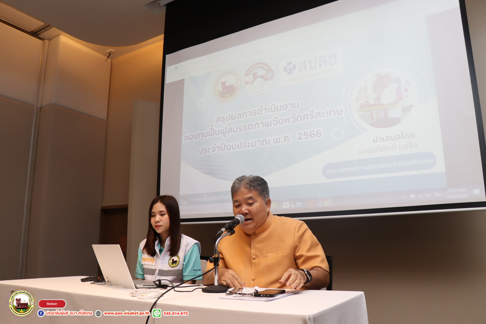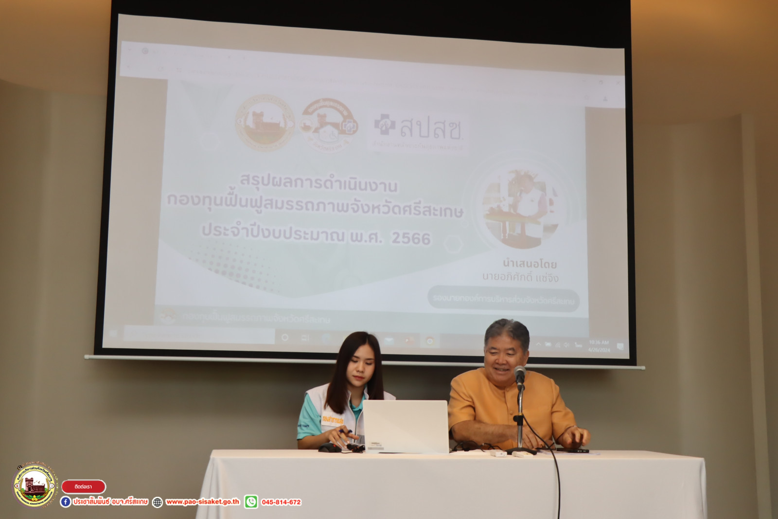 อบจ.ศรีสะเกษ ร่วมประชุมสรุปผลการดำเนินงานและประเมินผลลัพธ์ของกองทุนพื้นฟูสมรรถภาพ ระดับจังหวัด ประจำปีงบประมาณ พ.ศ.๒๕๖๖