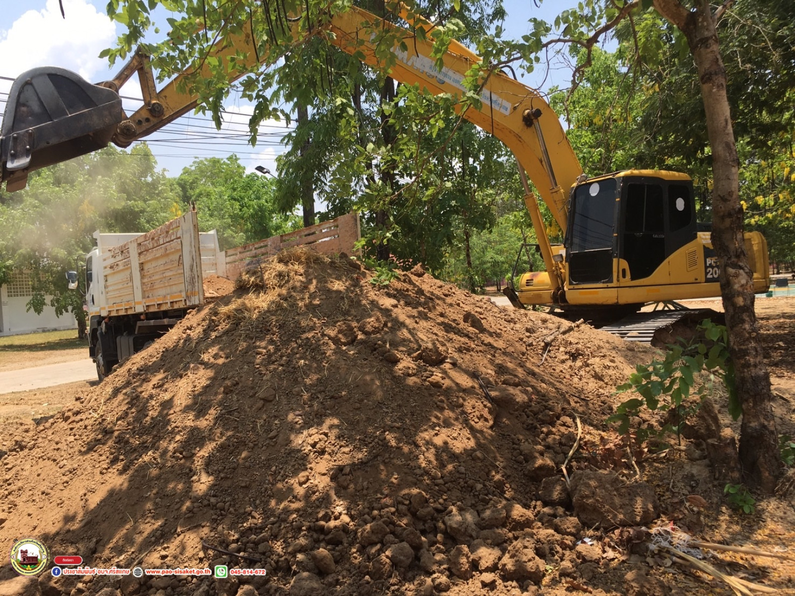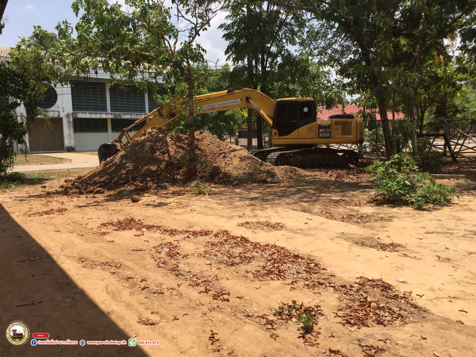 อบจ.ศรีสะเกษ นำเครื่องจักรกล ขุดลอกคูคลอง พร้อมทั้งปรับปรุงภูมิทัศน์ โรงเรียนราษีไศล