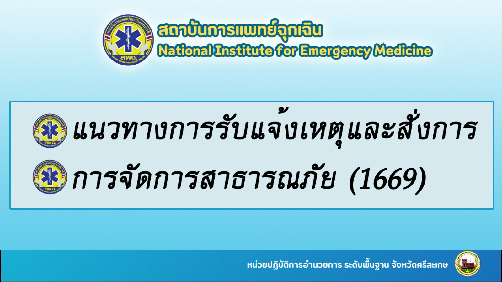 แนวทางการรับแจ้งเหตุและสั่งการ/การจัดการสาธารณภัย (1669)