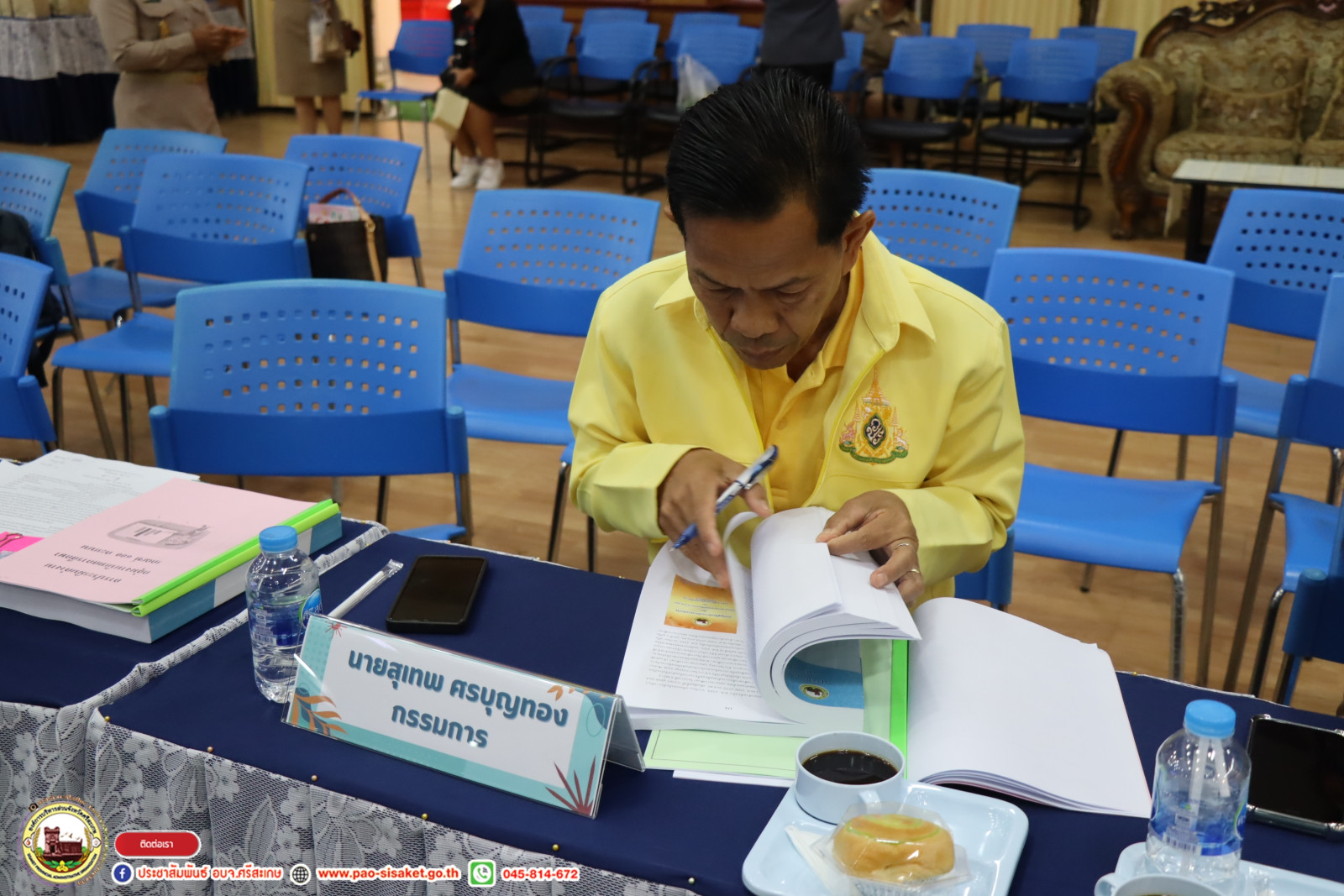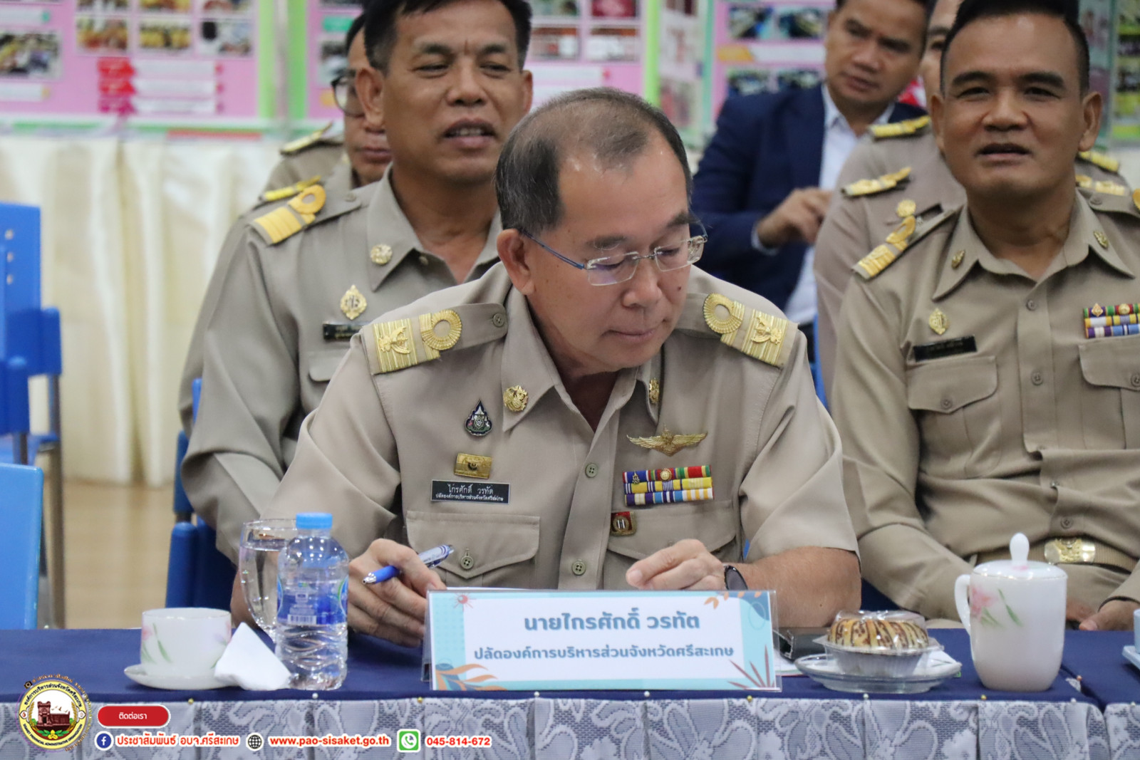 เมื่อวันที่ ๒๑ พฤษภาคม ๒๕๖๗ เวลา ๐๙.๐๐ น. ห้องประชุมศูนย์แสดงและจำหน่ายสินค้าหนึ่งตำบลหนึ่งผลิตภัณฑ์ องค์การบริหารส่วนจังหวัดศรีสะเกษ #นายวิชิต_ไตรสรณกุล นายกองค์การบริหารส่วนจังหวัดศรีสะเกษ พร้อมด้วย นายมานะพันธ์ อังคสกุลเกียรติ รองนายกองค์การบริหารส่วนจังหวัดศรีสะเกษ นายไกรศักดิ์ วรทัต ปลัดองค์การบริหารส่วนจังหวัดศรีสะเกษ นำหัวหน้าส่วนราชการ ข้าราชการ ผู้บริหารสถานศึกษาโรงเรียนสังกัดองค์การบริหารส่วนจังหวัดศรีสะเกษ ร่วมต้อนรับ นายวนิชย์ ฤทธิ์เดช ประธานกรรมการและคณะกรรมการประเมินเพื่อจัดตั้งกลุ่มงานนิเทศการศึกษาโรงเรียนในสังกัดองค์การบริหารส่วนจังหวัดศรีสะเกษ