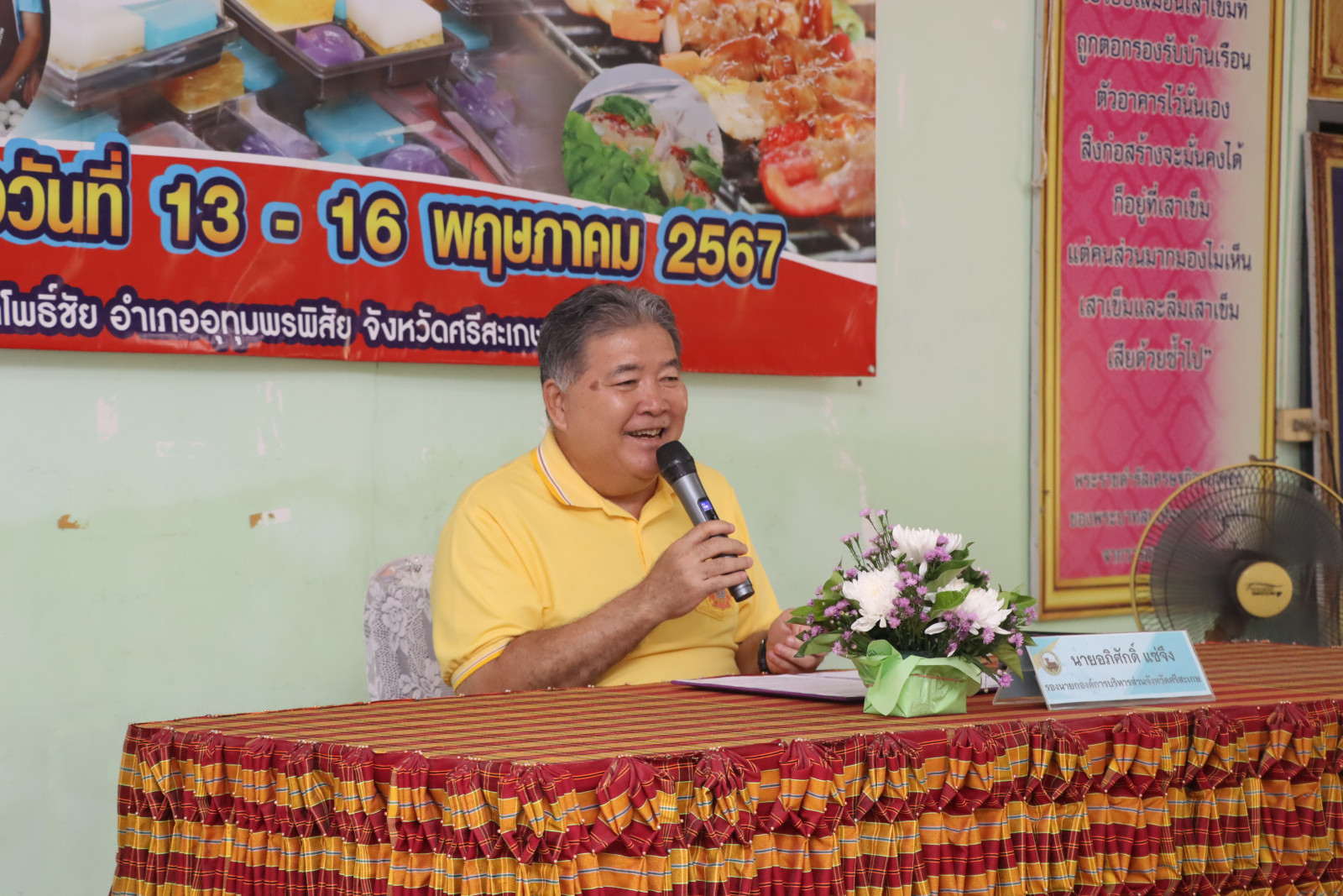 นายวิชิต ไตรสรณกุล นายกองค์การบริหารส่วนจังหวัดศรีสะเกษ มอบหมายให้ นายอภิศักดิ์ แซ่จึง รองนายกองค์การบริหารส่วนจังหวัดศรีสะเกษ เป็นประธานเปิด โครงการอบรมส่งเสริมอาชีพการทำขนมและอาหารว่าง ให้กับคนพิการ ผู้ดูแลคนพิการ และผู้ด้อยโอกาส ภายในจังหวัดศรีสะเกษ ประจำปีงบประมาณ พ.ศ.2567 โดยมีกลุ่มเป้าหมายเข้ารับการฝึกอบรมจำนวน 30 คน
