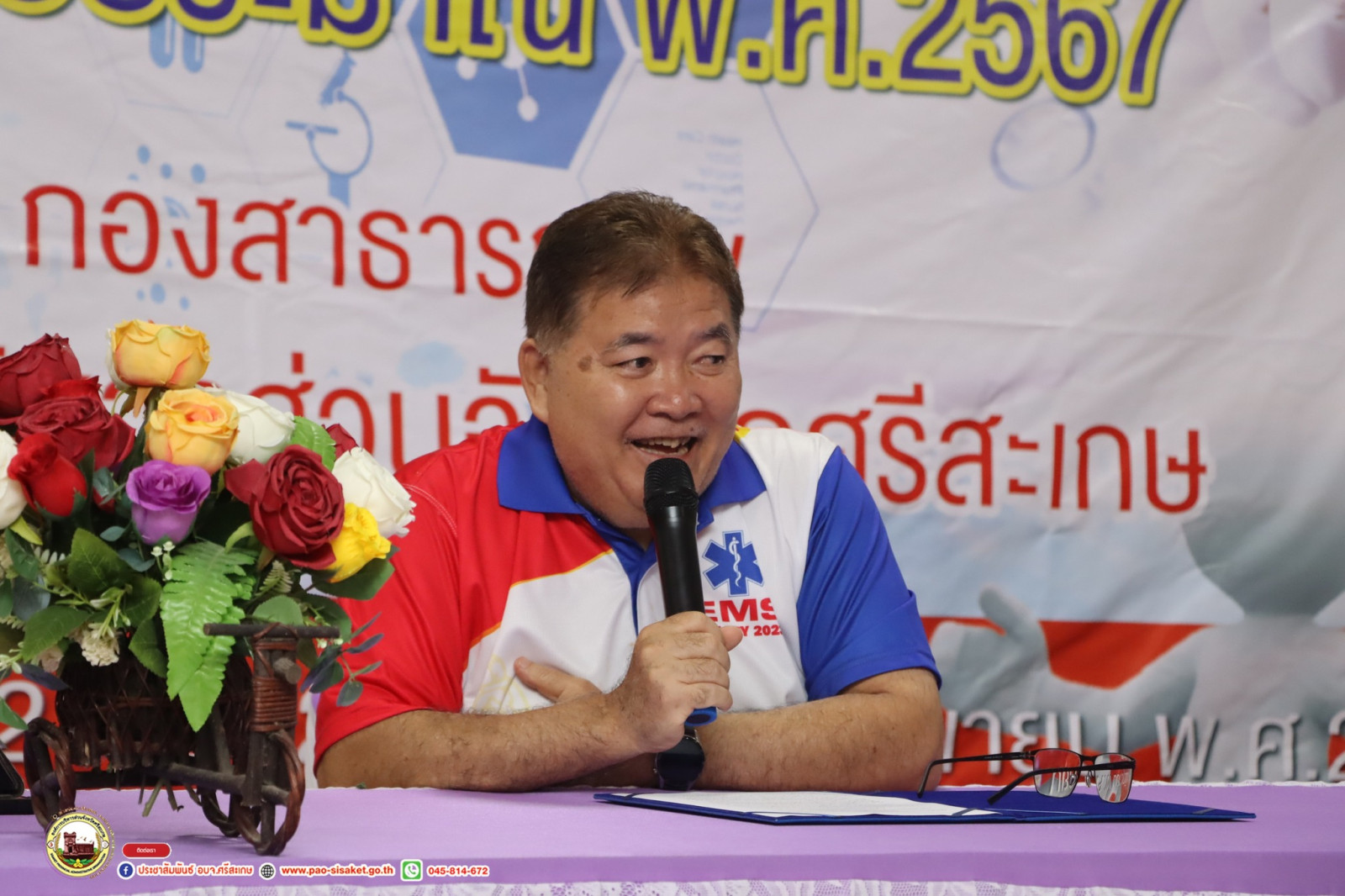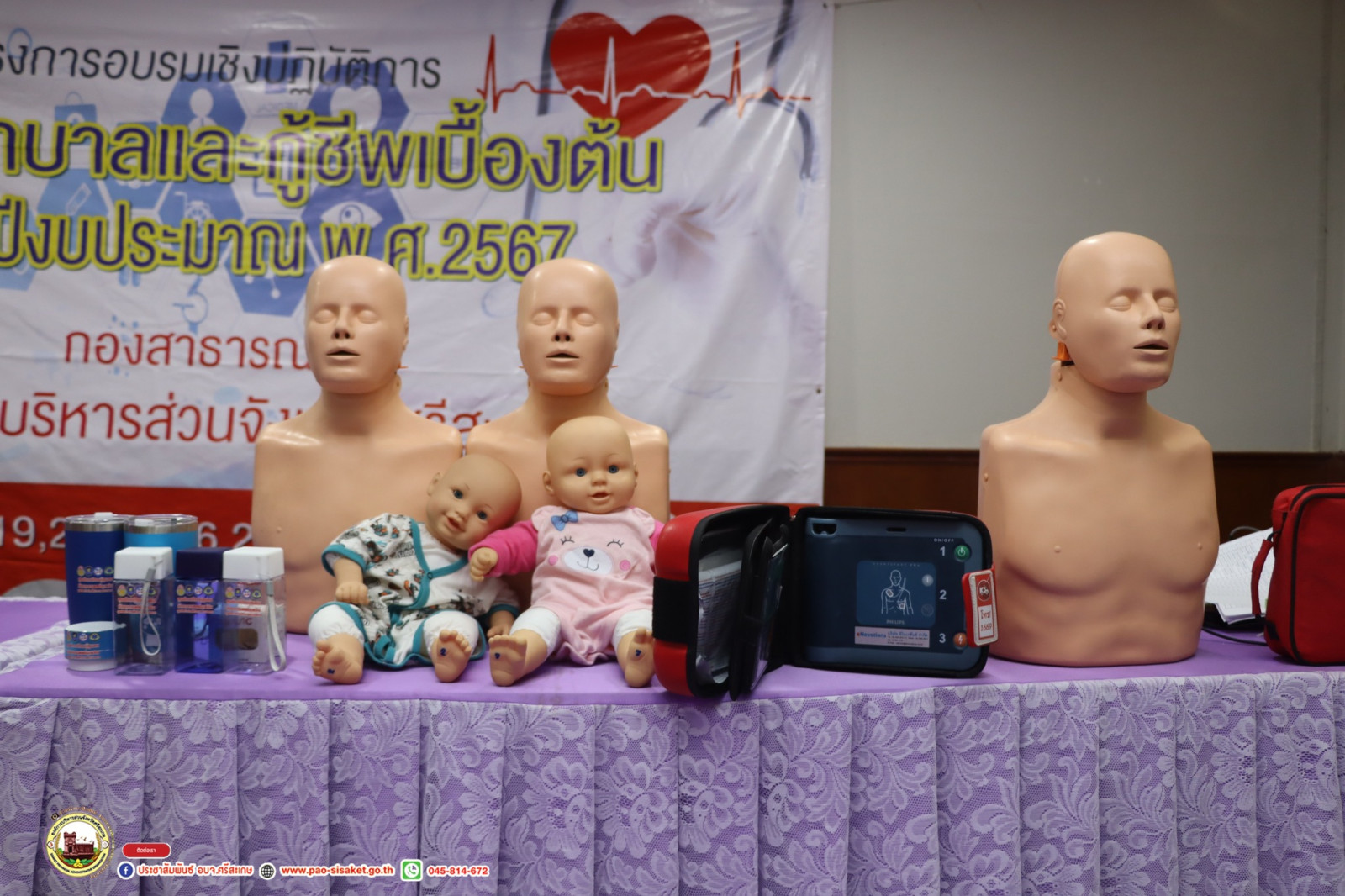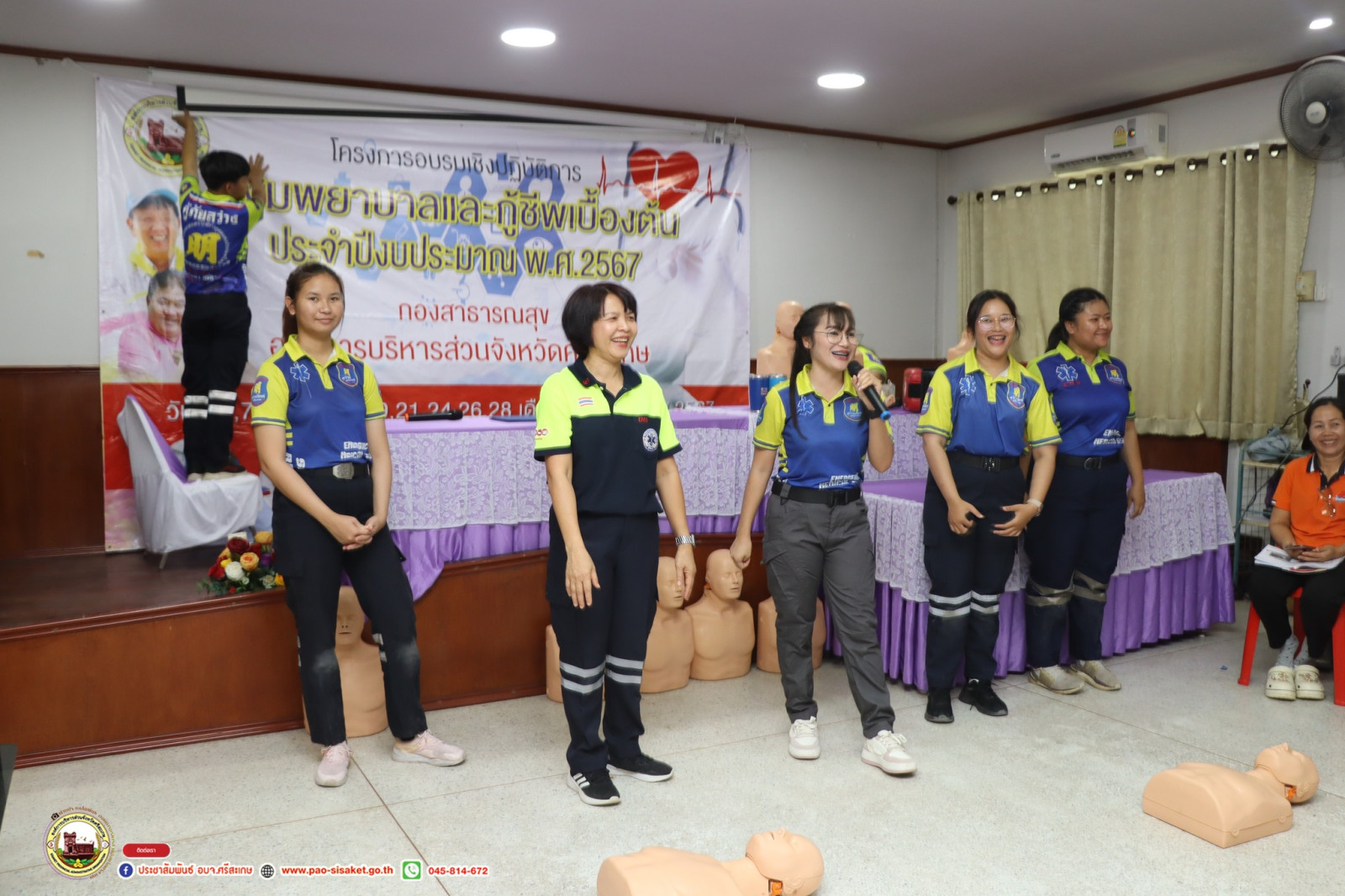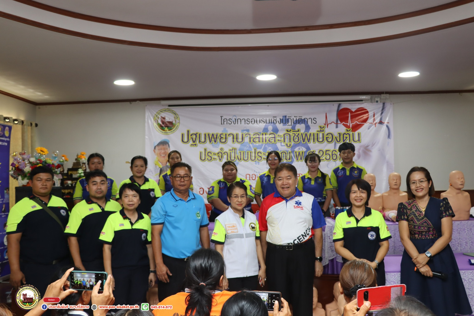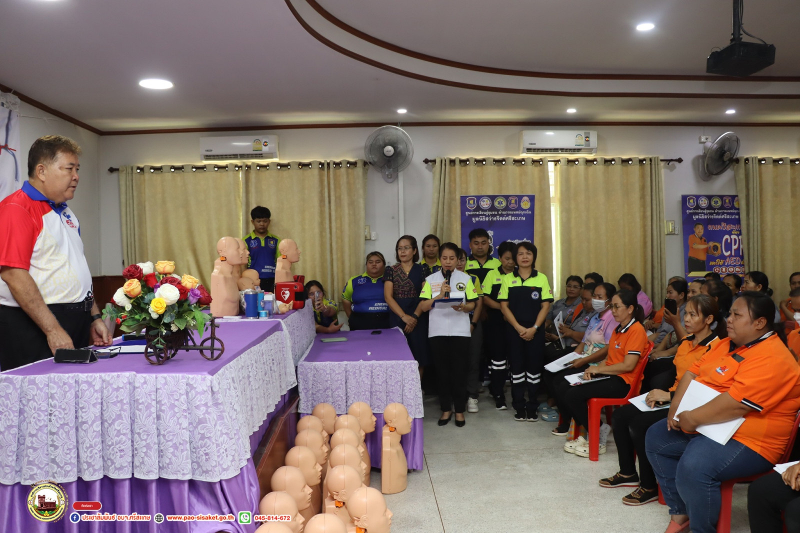วันที่ 7 มิถุนายน 2567 นายวิชิต ไตรสรณกุล นายกองค์การบริหารส่วนจังหวัดศรีสะเกษ นายกองค์การบริหารส่วนจังหวัดศรีสะเกษ มอบหมายให้ มอบหมายให้ นายอภิศักดิ์ แซ่จึง รองนายกองค์การบริหารส่วนจังหวัดศรีสะเกษ เป็นประธานเปิด โครงการอบรมเชิงปฏิบัติการปฐมพยาบาลและกู้ชีพเบื้องต้น ประจำปีงบประมาณ 2567 รุ่นที่2 โดยมีนางสาวรภัทภร สายเย็น รองปลัดองค์การบริหารส่วนจังหวัดศรีสะเกษ เป็นผู้กล่าวรายงาน หัวหน้าส่วนราชการ ข้าราชการ เจ้าหน้าที่ที่เกี่ยวข้องเข้าร่วมโครงการ