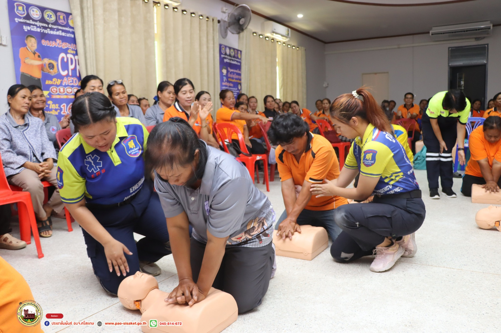 องค์การบริหารส่วนจังหวัดศรีสะเกษเล็งเห็นความสำคัญของการ ช่วยเหลือประชาชนที่เจ็บป่วยหรือผู้ประสบอุบัติเหตุ ให้ได้รับการปฐมพยาบาลการช่วยเหลือเบื้องต้นที่ได้มาตรฐาน ถูกต้อง รวดเร็ว มีประสิทธิภาพ ทั้งนี้เพื่อให้ กลุ่ม อสม. เพื่อพัฒนาความรู้ และทักษะสามารถทำการปฐมพยาบาลเบื้องต้น และช่วยชีวิตขั้นพื้นฐาน ณ จุดเกิดเหตุก่อนที่ชุดปฏิบัติการแพทย์ไปถึงจะทำให้ลดอัตราการเสียชีวิตของประชาชนที่มีภาวการณ์เจ็บป่วยฉุกเฉินต่อไป เพื่อให้ผู้เข้าอบรมมีความรู้ ทราบถึงความหมายของการปฐมพยาบาลและเพื่อให้ผู้เข้าอบรมมีทักษะการปฏิบัติการปฐมพยาบาลเบื้องต้นการช่วยชีวิตขั้นพื้นฐาน (Basic Life Support) และการใช้เครื่องกระตุกหัวใจไฟฟ้าชนิดอัตโนมัติ (AED : Automated External Defibrillator)