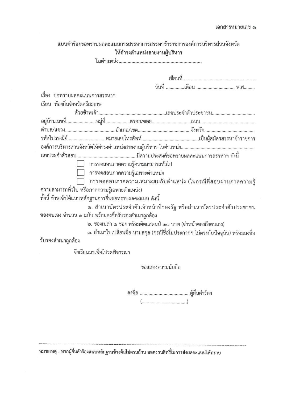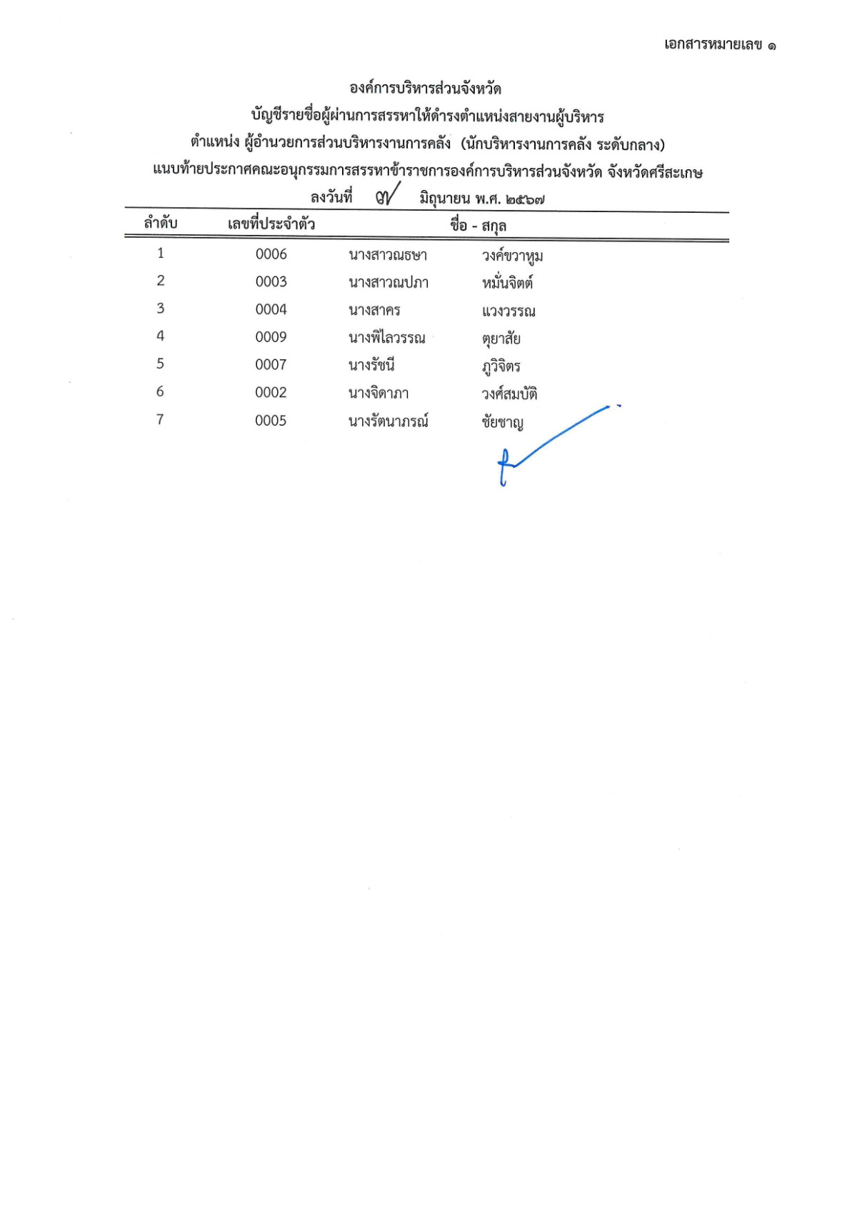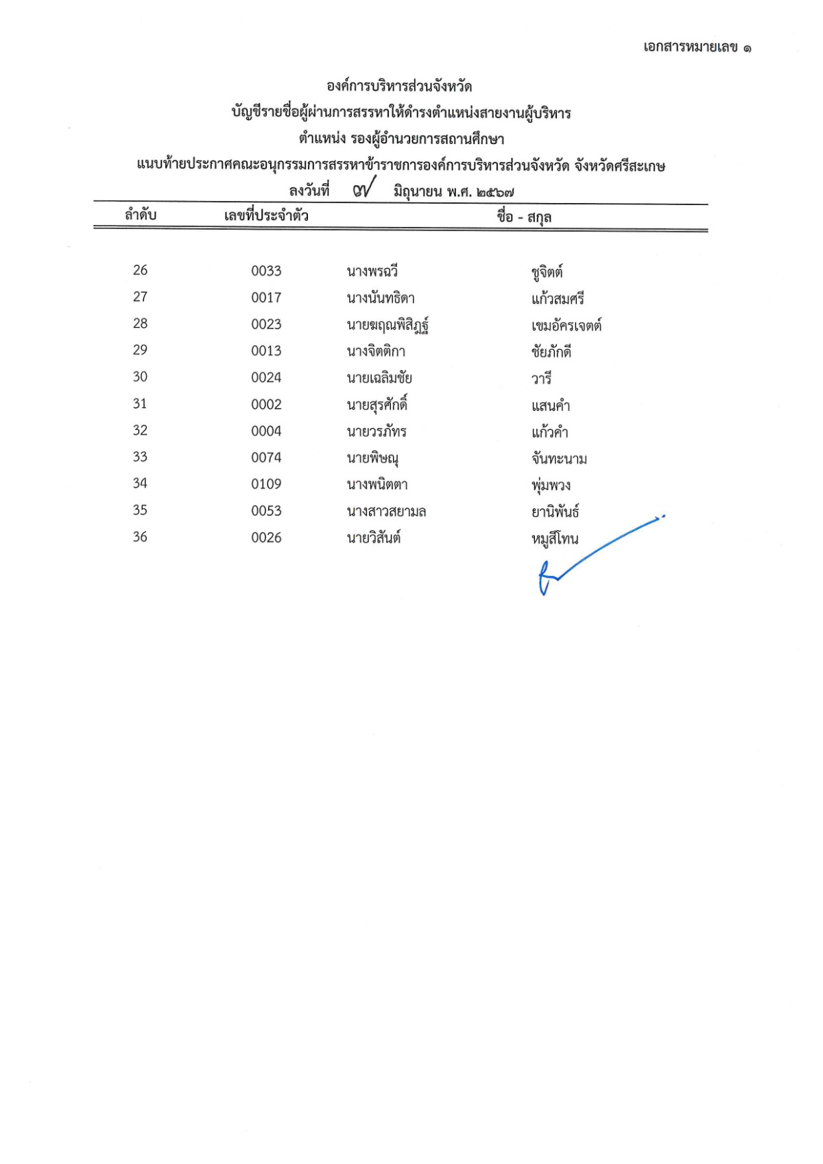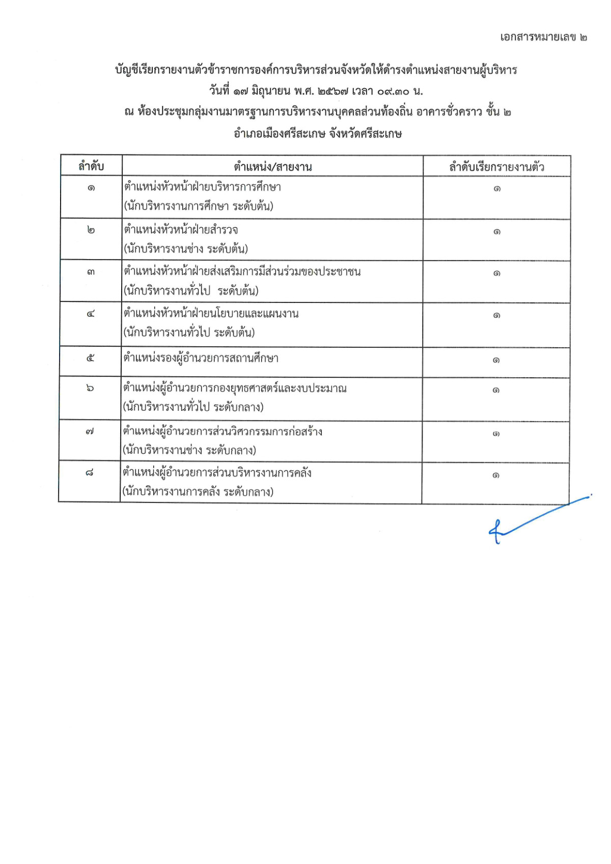 ประกาศคณะอนุกรรมการสรรหาข้าราชการองค์การบริหารส่วนจังหวัด จังหวัดศรีสะเกษ ผู้ผ่านการสรรหาให้ดำรงตำแหน่งสายงานผู้บริหาร