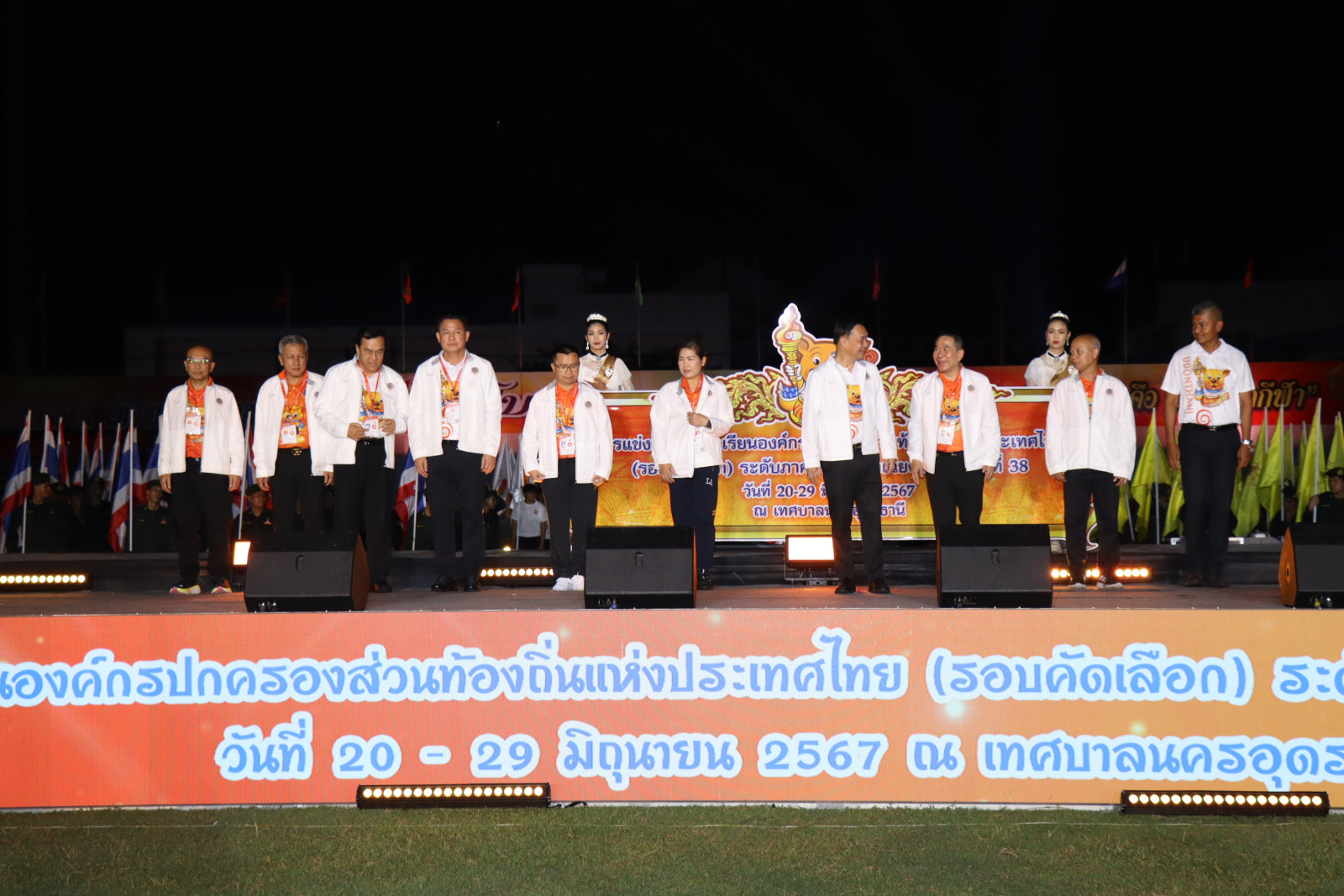 เมื่อวันที่ 22 มิถุนายน 2567 เวลา 17.00 น. ณ สนามกีฬากลางมหาวิทยาลัยการกีฬาแห่งประเทศไทย จังหวัดอุดรธานี #นายวิชิต_ไตรสรณกุล นายกองค์การบริหารส่วนจังหวัดศรีสะเกษ มอบหมายให้ นายมานะพันธ์ อังคสกุลเกียรติ รองนายกองค์การบริหารส่วนจังหวัดศรีสะเกษ นายไกรศักดิ์ วรทัต ปลัดองค์กาสรบริหารส่วนจังหวัดศรีสะเกษ นำหัวหน้าส่วนราชการ ข้าราชการ ผู้บริหารสถานศึกษา บุคลากรทางการศึกษา ผู้ฝึกสอนกีฬาและนักกีฬาตัวแทนโรงเรียนสังกัดองค์การบริหารส่วนจังหวัดศรีสะเกษ ร่วมพิธีเปิดการแข่งขันกีฬานักเรียนองค์กรปกครองส่วนท้องถิ่น (อปท.) แห่งประเทศไทย รอบคัดเลือกระดับภาคตะวันออกเฉียงเหนือ ครั้งที่ 38 "คุณทองโบราณเกมส์" โดยมี นายทรงศักดิ์ ทองศรี รัฐมนตรีช่วยว่าการกระทรวงมหาดไทย เป็นประธานในพิธี และมีแขกผู้มีเกียรติ คณะผู้ฝึกสอน เจ้าหน้าที่ และนักกีฬาตัวแทนจาก อปท.ภาคตะวันออกเฉียงเหนือ ร่วมพิธีเปิดในครั้งนี้