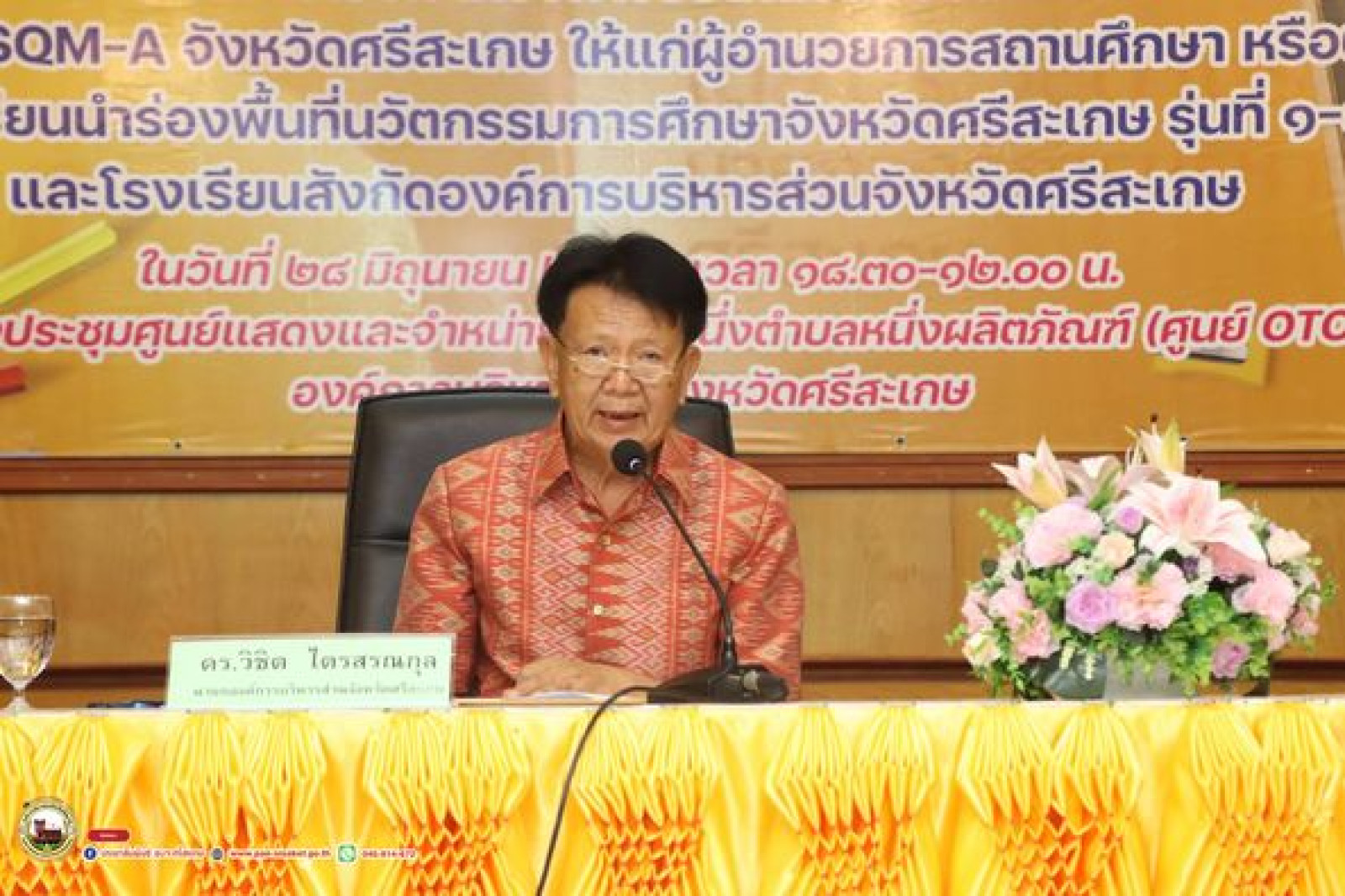วันที่ 28 มิถุนายน 2567 เวลา 9.00 น. นายวิชิต ไตรสรณกุล นายกองค์การบริหารส่วนจังหวัดศรีสะเกษ เป็นประธานเปิดการประชุมสื่อสารและทำความเข้าใจโครงการขับเคลื่อนขบวนการโรงเรียนพัฒนาตนเองเชิง พื้นที่ TSOM-A จังหวัดศรีสะเกษ เพื่อสร้างโอกาสให้ เด็ก เยาวชน และประชาชนที่ขาดแคลน ทุนทรัพย์หรือด้อยโอกาสทุกคนในพื้นที่จังหวัดศรีสะเกษ สามารถเข้าถึงการศึกษาที่มีคุณภาพ โดยการขับเคลื่อนกิจกรรมตามโครงการขับเคลื่อนขบวนการโรงเรียนพัฒนาตนเองเชิงพื้นที่จังหวัดศรีสะเกษต่อไป ณ ห้องประชุมศูนย์แสดงและจำหน่ายสินค้าหนึ่งตำบลหนึ่งผลิตภัณฑ์ (ศูนย์ OTOP) องค์การบริหารส่วนจังหวัดศรีสะเกษ อำเภอเมืองศรีสะเกษ จังหวัดศรีสะเกษ