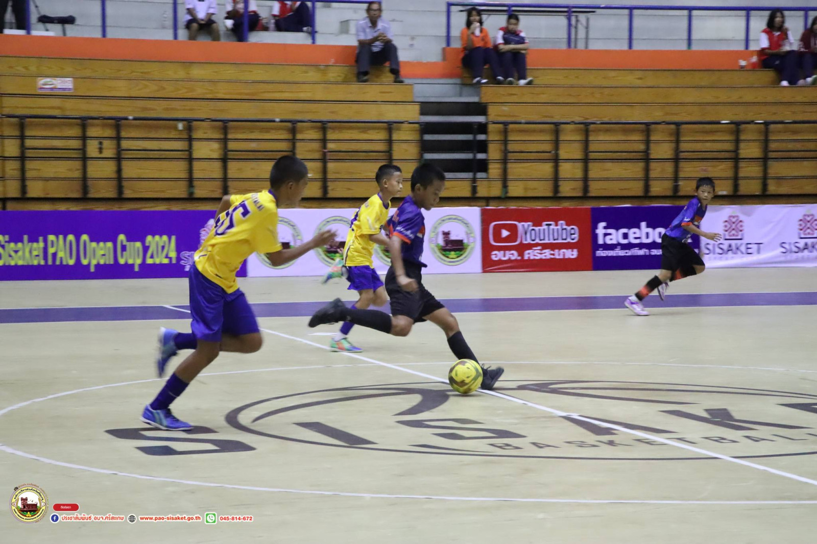 วันที่ 2 กรกฎาคม 2567 เวลา 9.30 น. บรรยากาศการแข่งขันฟุตซอล อบจ.ศรีสะเกษ โอเพ่นคัพ ต้านยาเสพติด ประจำปี 2567