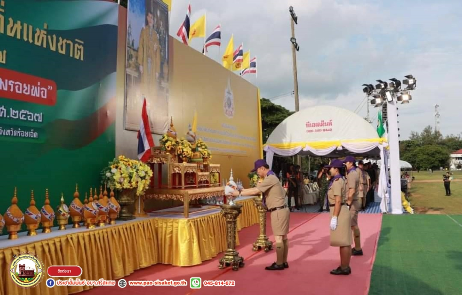 อบจ.ศรีสะเกษ ร่วมพิธีเทิดพระเกียรติฯ พิธีเปิด และพิธีสวนสนามงานชุมนุมลูกเสือท้องถิ่นแห่งชาติ ครั้งที่ ๖