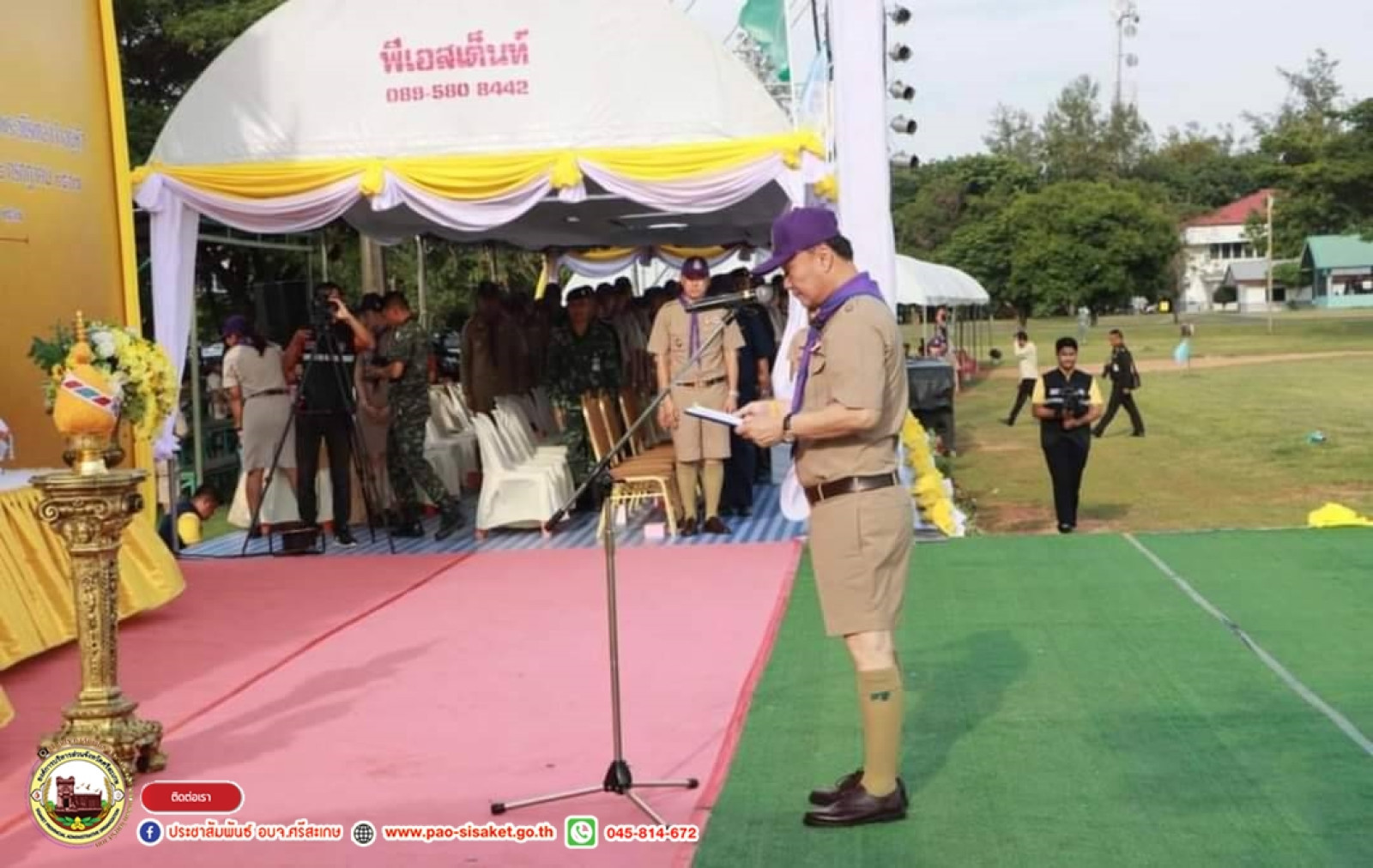 เมื่อวันพฤหัสบดีที่ ๔ กรกฎาคม ๒๕๖๗ เวลา ๑๖.๓๐ น. ณ ค่ายลูกเสือมณฑลทหารบกที่ ๒๗ อำเภอเมืองร้อยเอ็ด จังหวัดร้อยเอ็ด #นายวิชิต_ไตรสรณกุล นายกองค์การบริหารส่วนจังหวัดศรีสะเกษ มอบหมายให้ ข้าราชการ ผู้บริหารสถานศึกษา พร้อมด้วย ลูกเสือ เนตรนารี โรงเรียนในสังกัด องค์การบริหารส่วนจังหวัดศรีสะเกษ ร่วมพิธีเทิดพระเกียรติฯ พิธีเปิด และพิธีสวนสนามงานชุมนุมลูกเสือท้องถิ่นแห่งชาติ ครั้งที่ ๖ โดยมี นายทรงศักดิ์ ทองศรี รัฐมนตรีช่วยว่าการกระทรวงมหาดไทย เป็นประธานในพิธี พร้อมด้วย นายขจร ศรีชวโนทัย อธิบดีกรมส่งเสริมการปกครองท้องถิ่น นายบรรจง โฆษิตจิรนันท์ นายกเทศมนตรีเมืองร้อยเอ็ด พร้อมด้วย คณะผู้บริหารเทศบาลเมืองร้อยเอ็ด ผู้บริหารสถานศึกษา ผู้บังคับบัญชาลูกเสือแห่งชาติ หัวหน้าฝ่าย หัวหน้างาน ลูกเสือ-เนตรนารี แขกผู้มีเกียรติ และเจ้าหน้าที่ที่เกี่ยวข้อง ร่วมพิธีในครั้งนี้