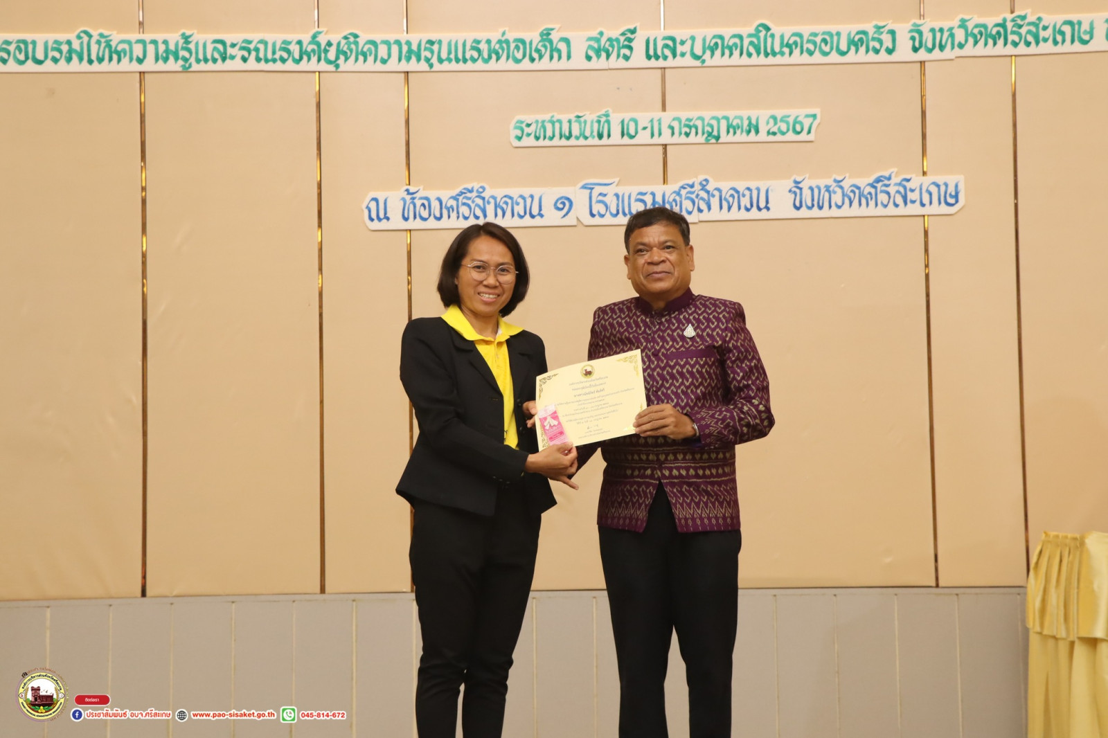 อบจ.ศรีสะเกษ จัดอบรมให้ความรู้และรณรงค์ยุติความรุนแรงต่อเด็ก สตรี และบุคคลในครอบครัว จังหวัดศรีสะเกษ