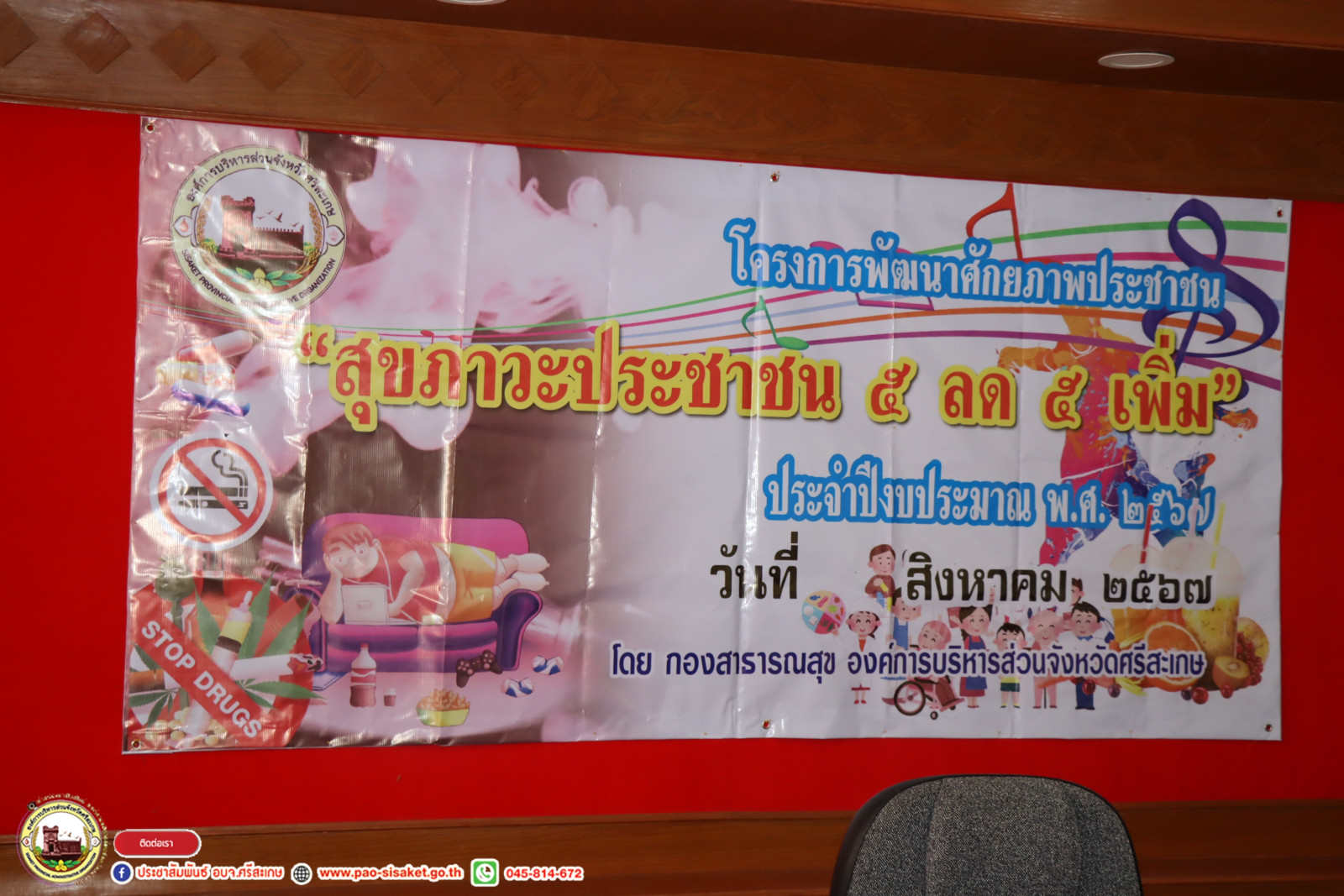 อบจ.ศรีสะเกษ เปิดโครงการพัฒนาศักยภาพประชาชน "สุขภาวะประชาชน ๕ ลด ๕ เทิ่ม" จังหวัดศรีสะเกษ ประจำปีงบประมาณ พ.ศ ๒๕๖๗ รุ่นที่ ๑