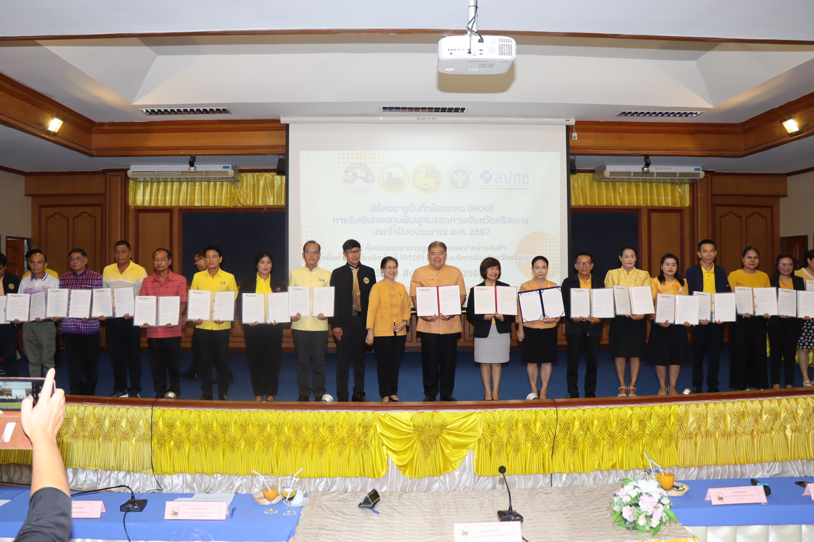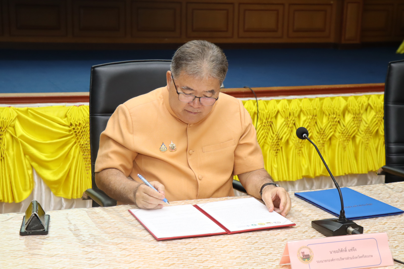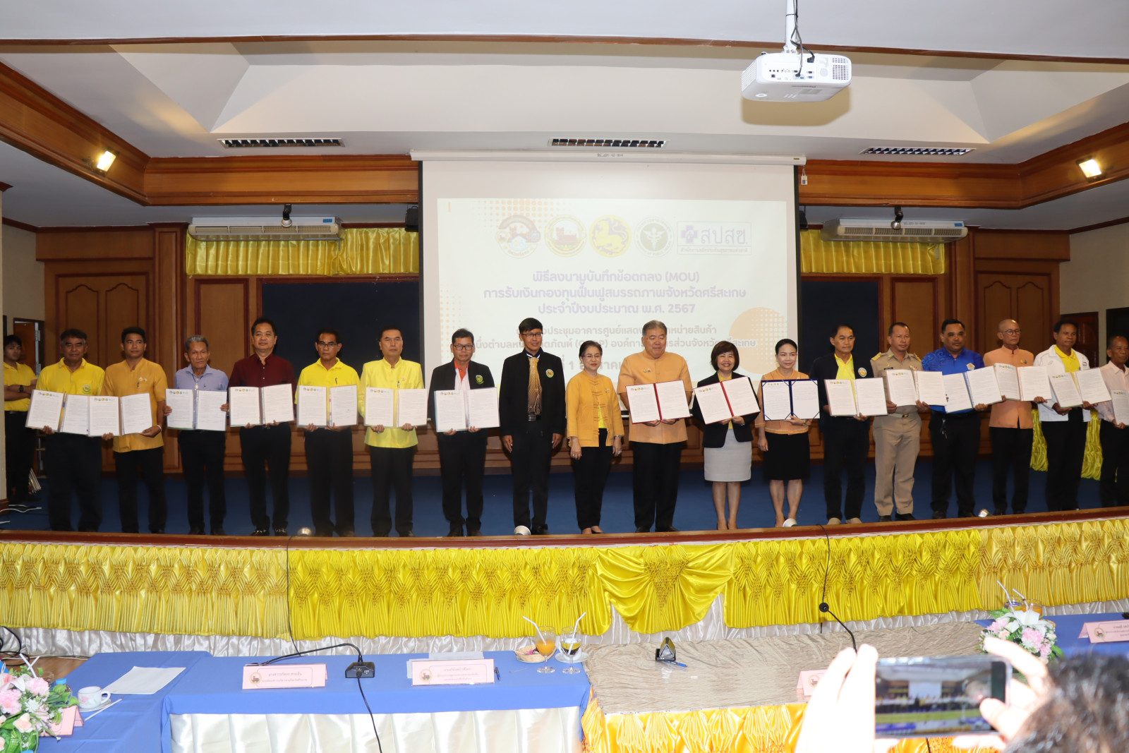 อบจ.ศรีสะเกษ จัดพิธีลงนามบันทึกข้อตกลง(MOU)การรับเงินกองทุนฟื้นฟูสมรรถภาพจังหวัดศรีสะเกษ ระหว่างกองทุนฟื้นฟูสมรรถภาพจังหวัดศรีสะเกษ โรงพยาบาล จำนวน 13 แห่ง และองค์กรณ์ปกครองส่วนท้องถิ่น จำนวน 34 แห่ง