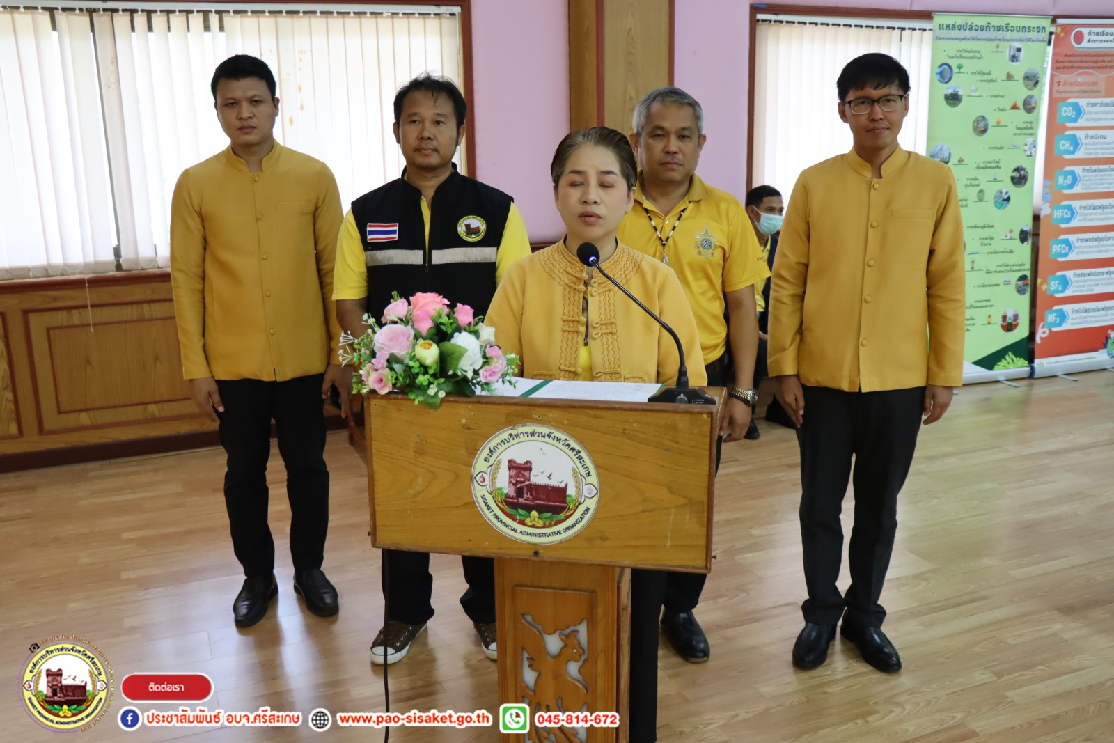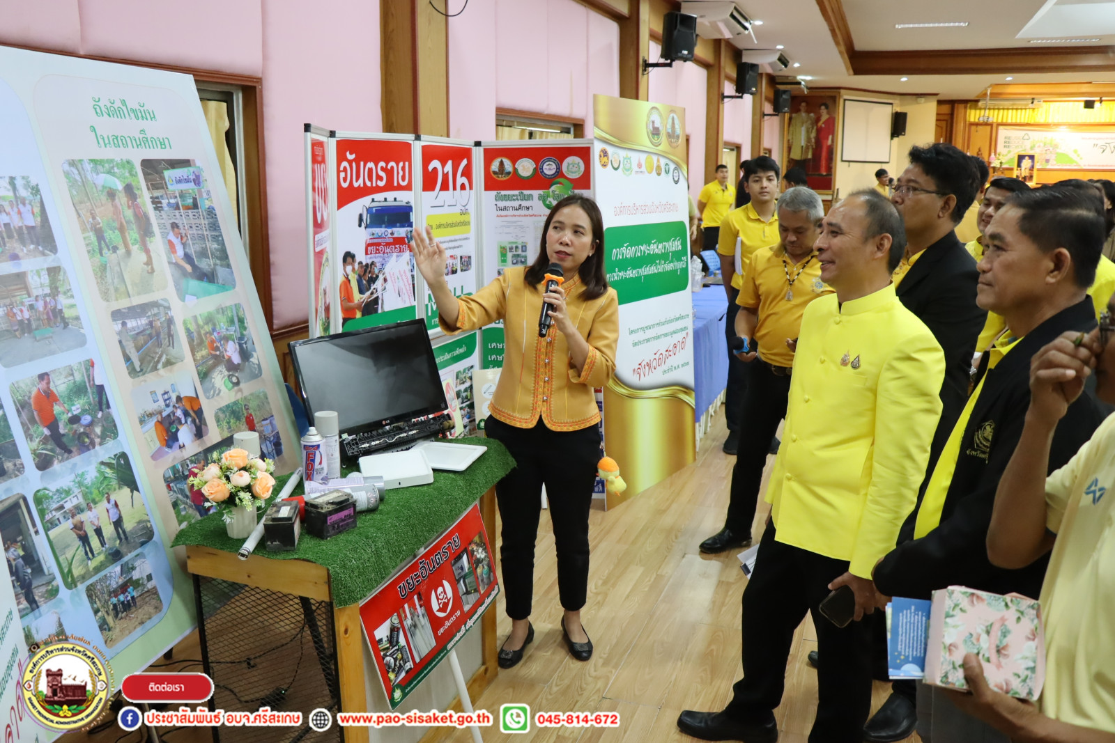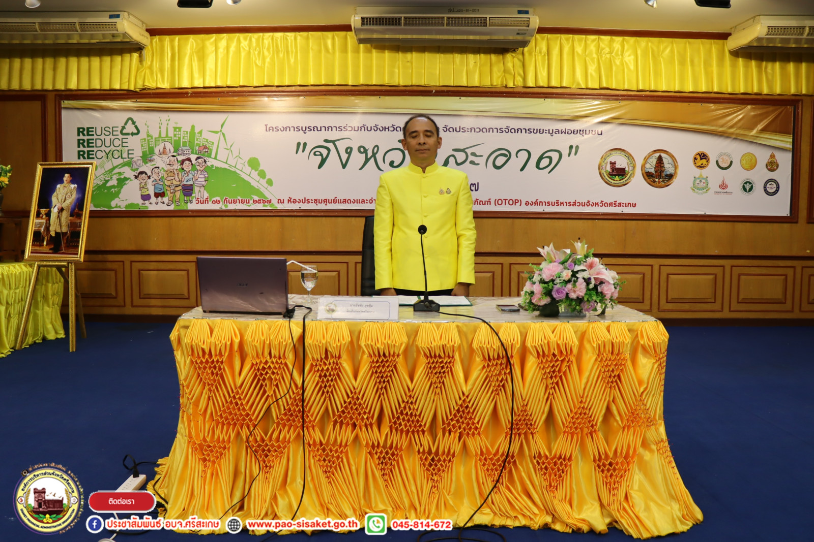 เมื่อวันพฤหัสบดีที่ ๑๒ กันยายน ๒๕๖๗ ณ ท้องประชุมศูนย์แสดงผลิตภัณฑ์และจำหน่ายสินค้า OTOP องค์การบริหารส่วนจังหวัดศรีสะเกษ อำเภอเมืองศรีสะเกษ จังหวัดศรีสะเกษ #นายวิชิต_ไตรสรณกุล นายกองค์การบริหารส่วนจังหวัดศรีสะเกษ มอบหมายให้ นายอภิศักดิ์ แซ่จึง รองนายกองค์การบริหารส่วนจังหวัดศรีสะเกษ นางสาวรภัทภร สายเย็น รองปลัดองค์การบริหารส่วนจังหวัดศรีสะเกษ นำข้าราชการ พนักงานสังกัดองค์การบริหารส่วนจังหวัดศรีสะเกษ ร่วมเปิดโครงการเพิ่มประสิทธิภาพตามแผนปฏิบัติการจัดการขยะมูลฝอยชุมชน "จังหวัดสะอาด" และขับเคลื่อนวาระจังหวัด ศรีสะเกษจังหวัดสะอาด เปลี่ยนเพื่ออะไร ๆ ก็ดีที่ศรีสะเกษ และการขับเคลื่อนโดยเน้นการมีส่วนร่วมของประชาชนเพื่อมุ่งสู่เมืองคาร์บอนต่ำอย่างยั่งยืน ประจำปี พ.ศ. ๒๕๖๗ โดยมี นายธัชชัย สุขหุ้ม ท้องถิ่นจังหวัดศรีสะเกษ เป็นประธานในพิธี และมีผู้นำองค์กรปกครองส่วนท้องถิ่นจังหวัดศรีสะเกษ แขกผู้มีเกียรติร่วมพิธีเปิดในครั้งนี้