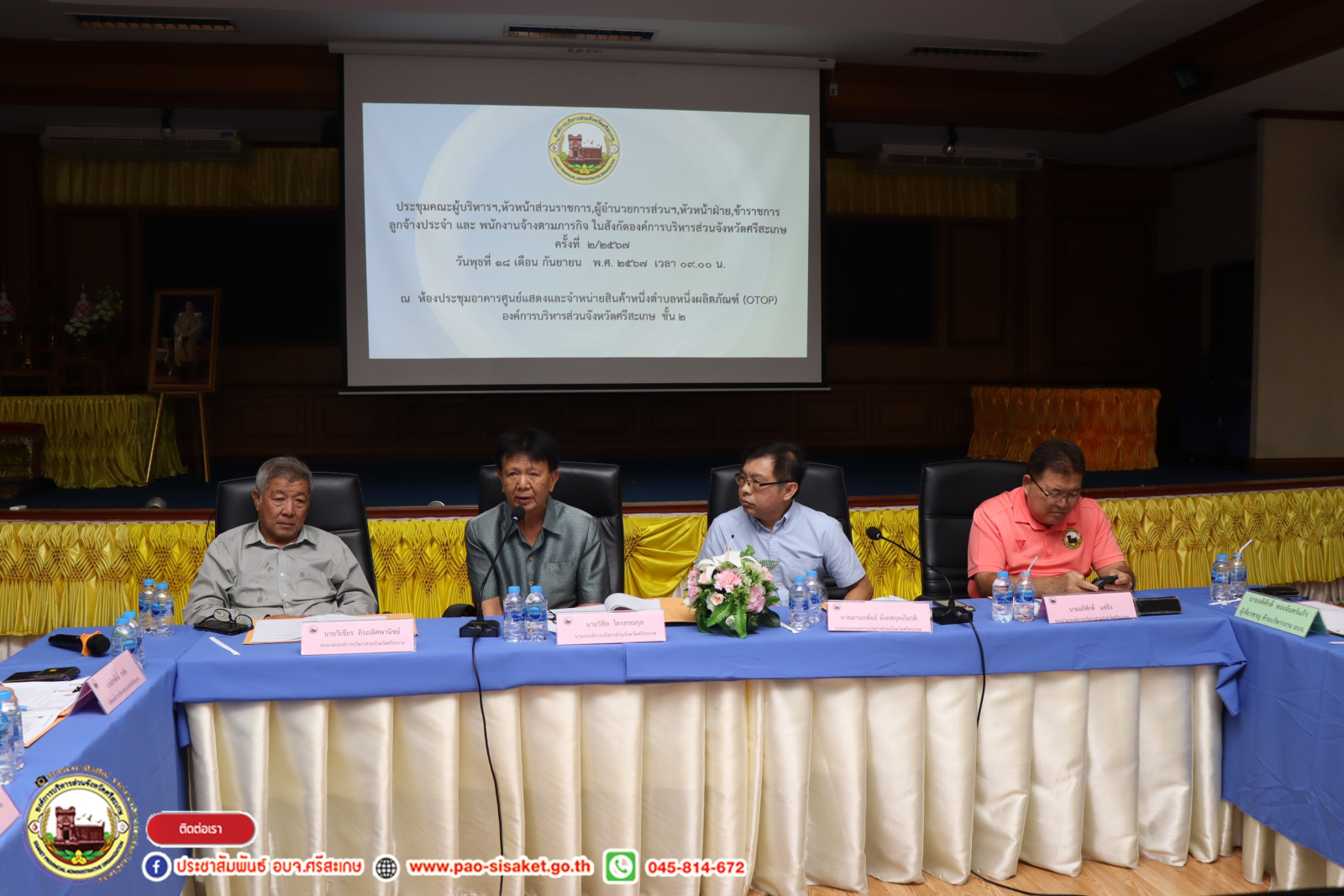 อบจ.ศรีสะเกษ จัดการประชุมคณะผู้บริหารฯ หัวหน้าส่วนราชการ ผู้อำนวยการส่วนฯ หัวหน้าฝ้าย ข้าราชการ ลูกจ้างประจำ และ พนักงานจ้างตามภารกิจ ในสังกัดองค์การบริหารส่วนจังหวัดศรีสะเกษ ครั้งที่ ๒/๒๕๖๗
