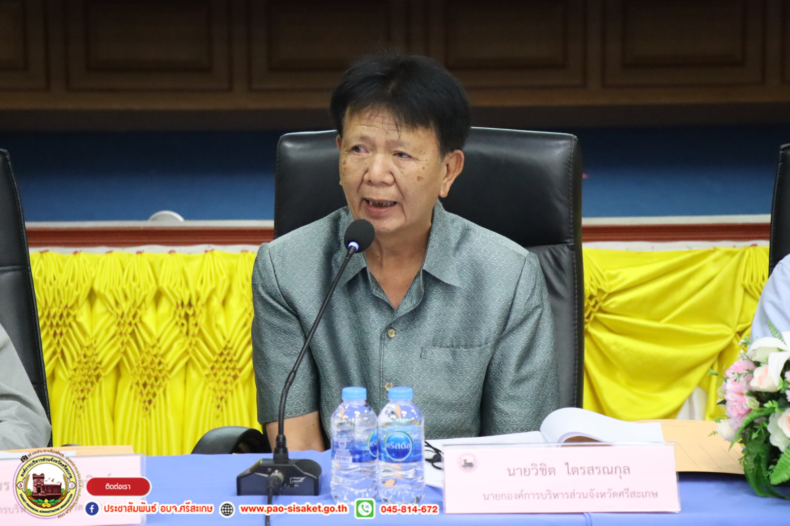 #นายวิชิต_ไตรสรณกุล นายกองค์การบริหารส่วนจังหวัดศรีสะเกษ กล่าวว่า ด้วยองค์การบริหารส่วนจังหวัดศรีสะเกษ มีข้อราชการเพื่อให้การบริหารราชการเป็นไปด้วยความเรียบร้อย เกิดประสิทธิ และประสิทธิภาพ และการบริหารงานขององค์การบริหารส่วนจังหวัดศรีสะเกษ มีการบริหารจัดการที่ดี สามารถตอบสนองความต้องการของประชาชน โดยใช้ทรัพยากรบุคคล และการบริหารภายใต้การบริหารจัดการที่ดีให้เป็นไปอย่างมีประสิทธิภาพและเกิดประสิทธิผล จึงกำหนดประชุมคณะผู้บริหารหัวหน้าส่วนราชการ ผู้อำนวยการส่วนฯ ข้าราชการ,ลูกจ้างประจำ และ พนักงานจ้างตามภารกิจ ในสังกัดองค์การบริหารส่วนจังหวัดศรีสะเกษขึ้นในวันนี้
