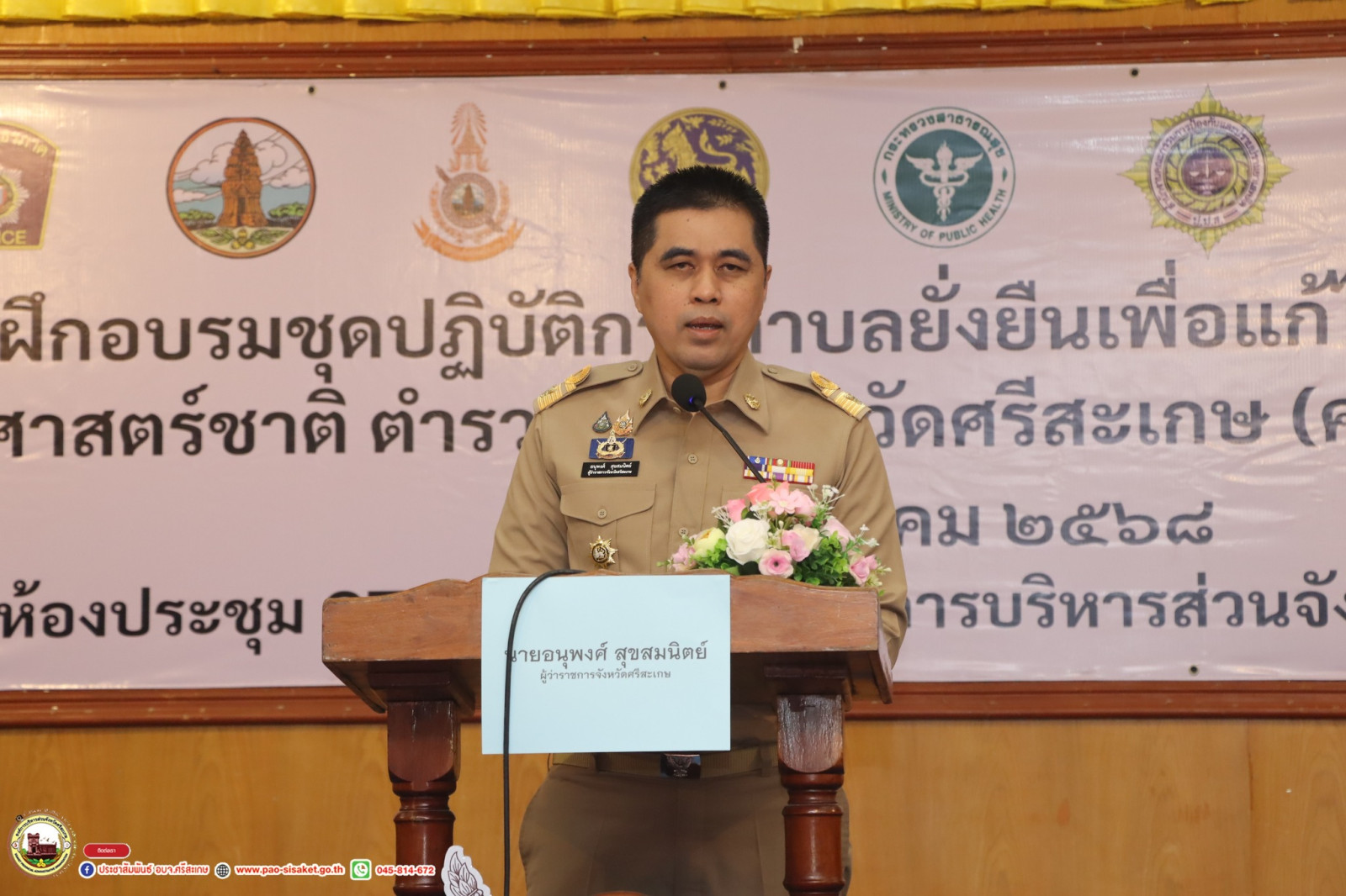 เมื่อวันที่ 6 มีนาคม 2568 เวลา 09.00 น. ณ ศูนย์แสดงและจำหน่ายสินค้า 1 ตําบล 1 ผลิตภัณฑ์ (OTOP) องค์การบริหารส่วนจังหวัดศรีสะเกษ นางสาวชัชฎา ปัสบาล ผู้อำนวยการสำนักช่าง รักษาราชการแทนปลัดองค์การบริหารส่วนจังหวัด ร่วมพิธีเปิดโครงการฝึกอบรมชุดปฏิบัติการตำบลยั่งยืนเพื่อแก้ปัญหายาเสพติดแบบครบวงจรตามยุทธศาสตร์ ตำรวจภูธร จ.ศรีสะเกษ(ครู ข) ปี 2568