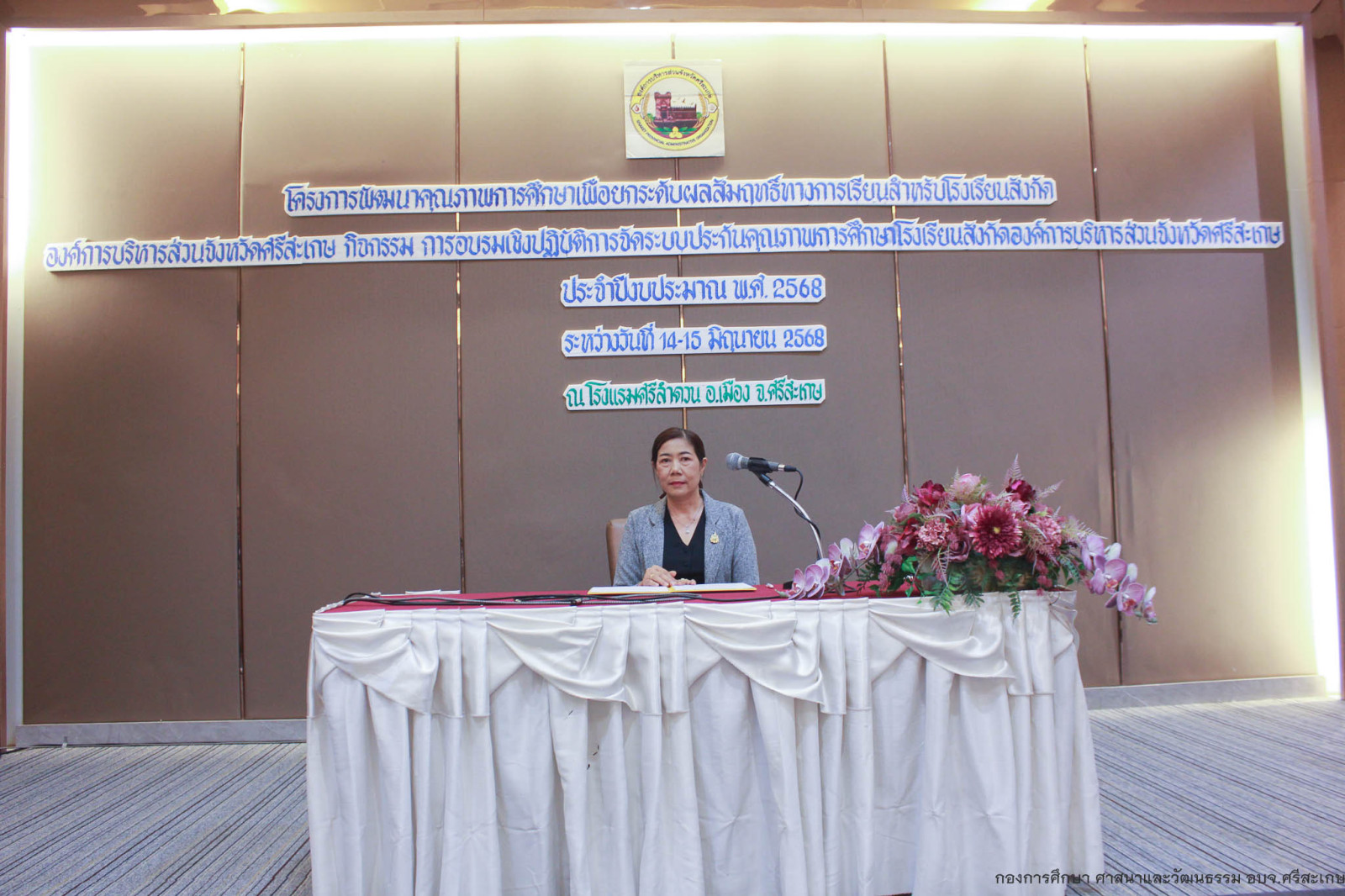 เมื่อวันที่ 15 มิถุนายน 2568 #นายวิชิต_ไตรสรณกุล นายก อบจ.ศรีสะเกษ มอบหมายให้ นางฑิมาภรณ์ แก้วกันเนตร์ รองปลัดองค์การบริหารส่วนจังหวัดศรีสะเกษ เป็นประธาน #โครงการพัฒนาคุณภาพการศึกษาเพื่อยกระดับผลสัมฤทธิ์ทางการเรียนสำหรับโรงเรียนสังกัดองค์การบริหารส่วนจังหวัดศรีสะเกษ กิจกรรม การอบรมเชิงปฏิบัติการจัดระบบประกันคุณภาพการศึกษาโรงเรียนสังกัดองค์การบริหารส่วนจังหวัดศรีสะเกษ ประจำปีงบประมาณ พ.ศ. 2568